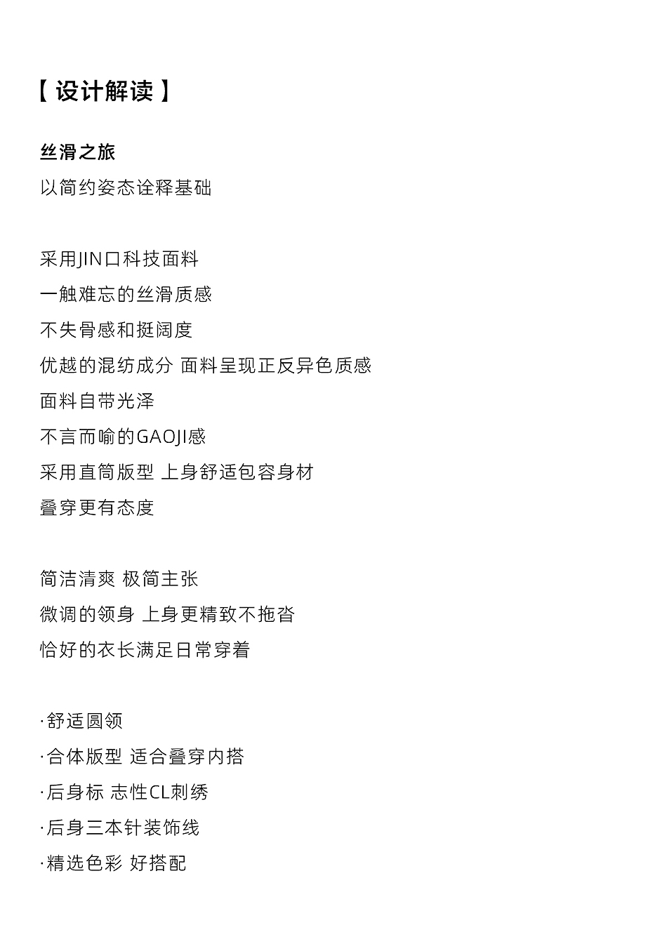 COTTON LAB【丝滑之旅】质感丝滑简约设计圆领长袖基础T