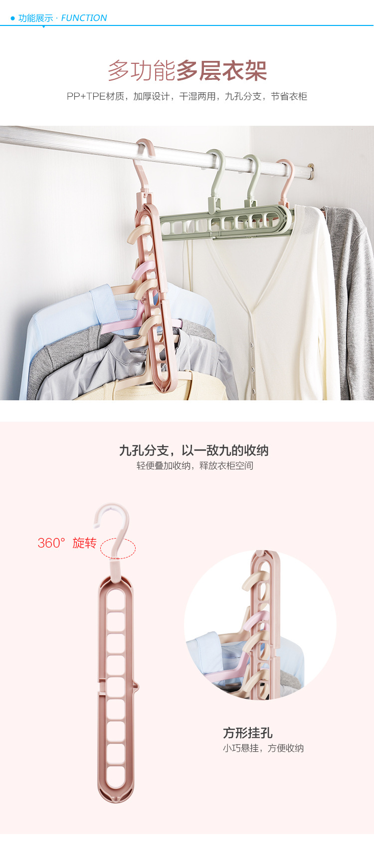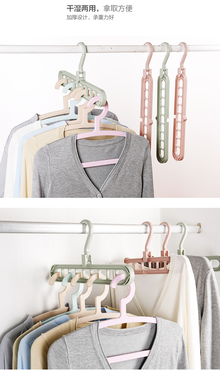 多功能衣架九孔出差必备晾衣神器便携旅游酒店晾晒挂架折叠晾衣架/个(颜色随机)