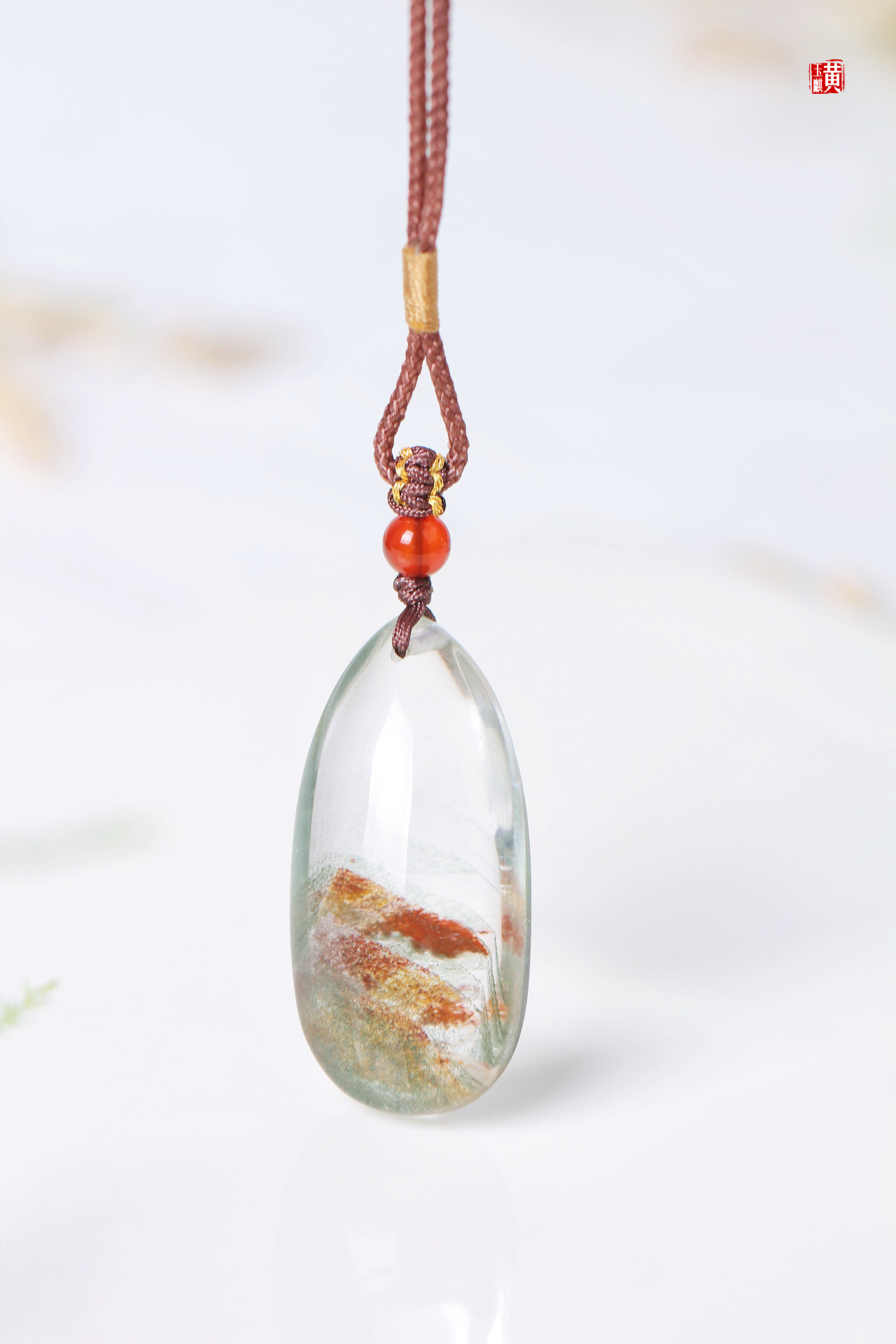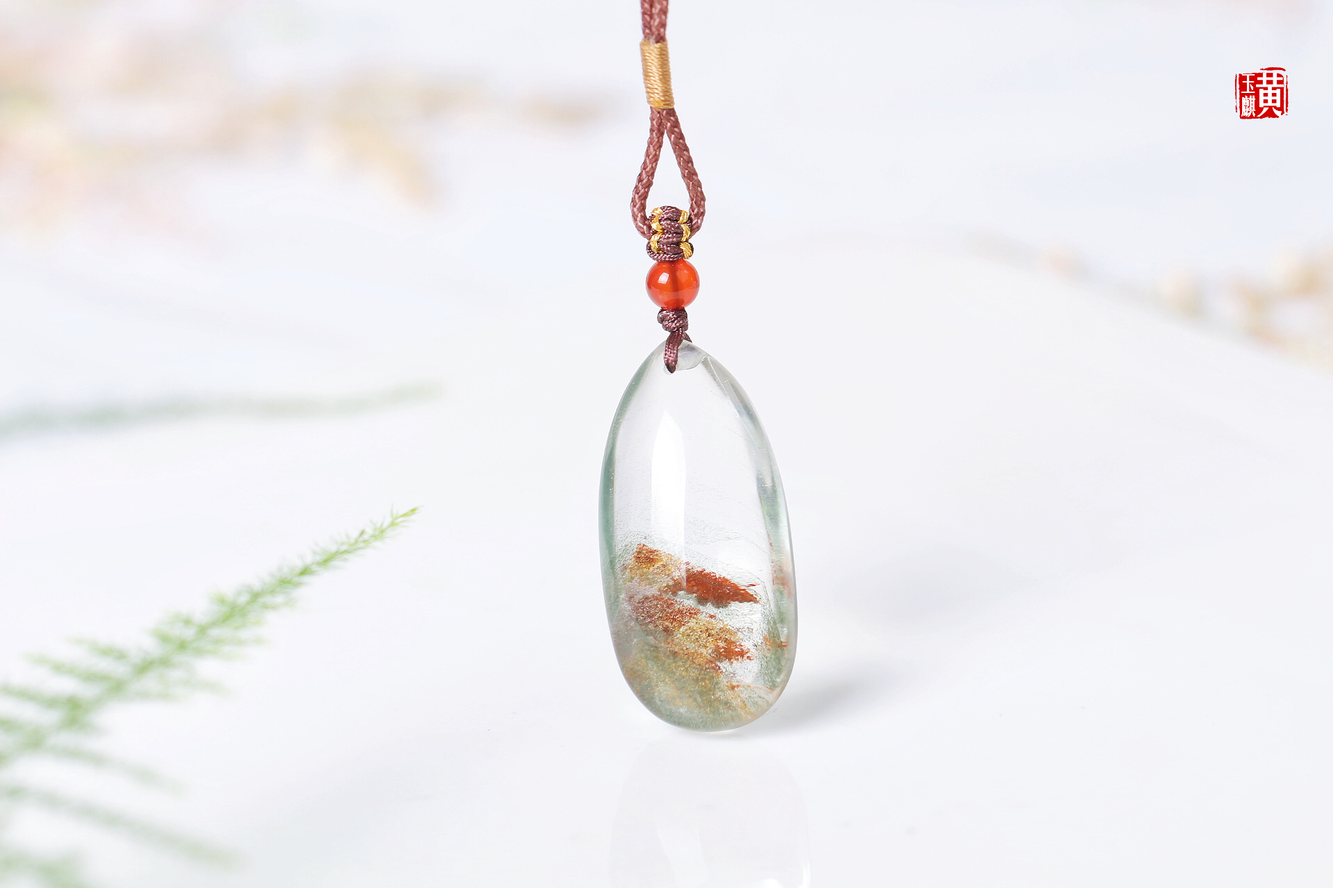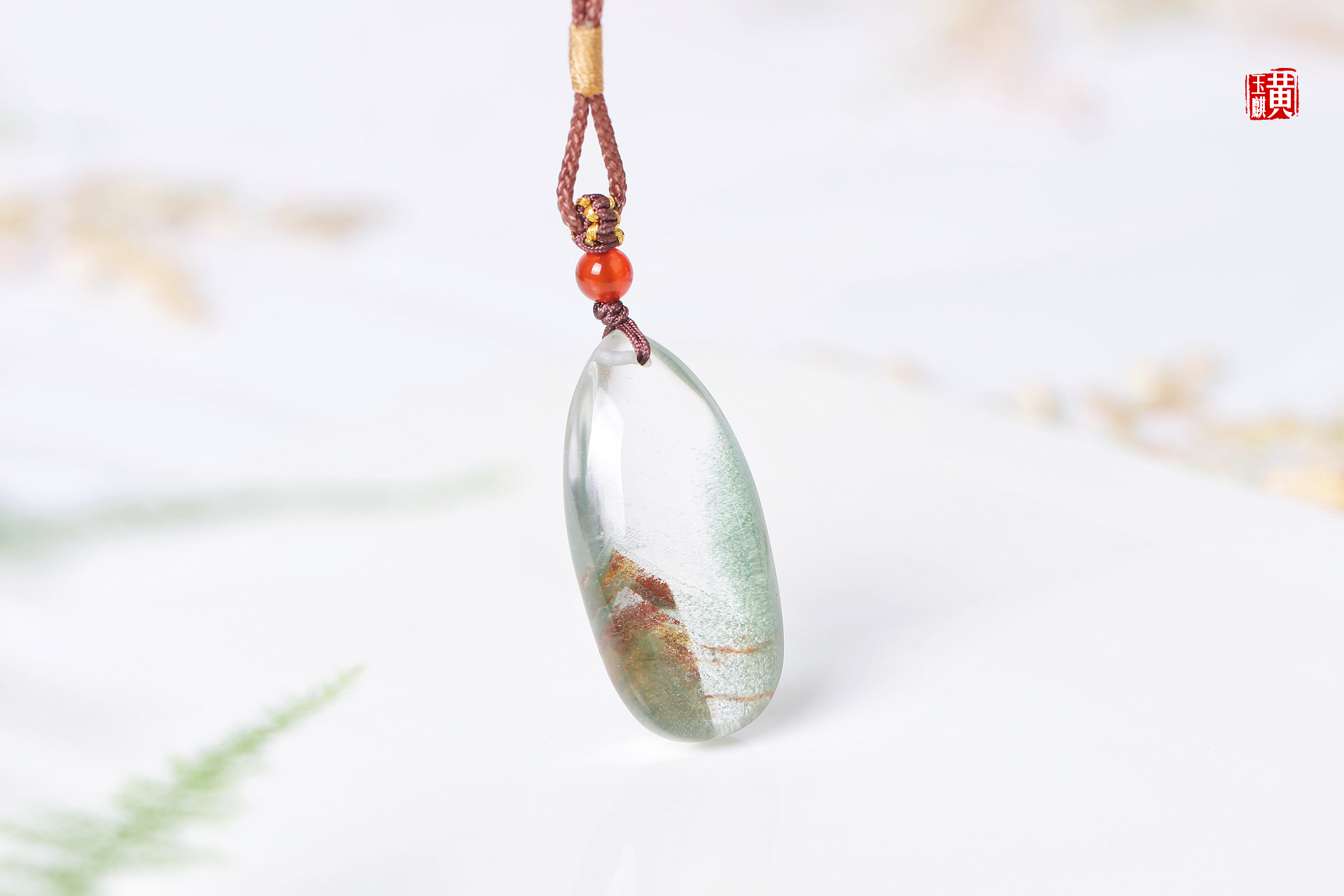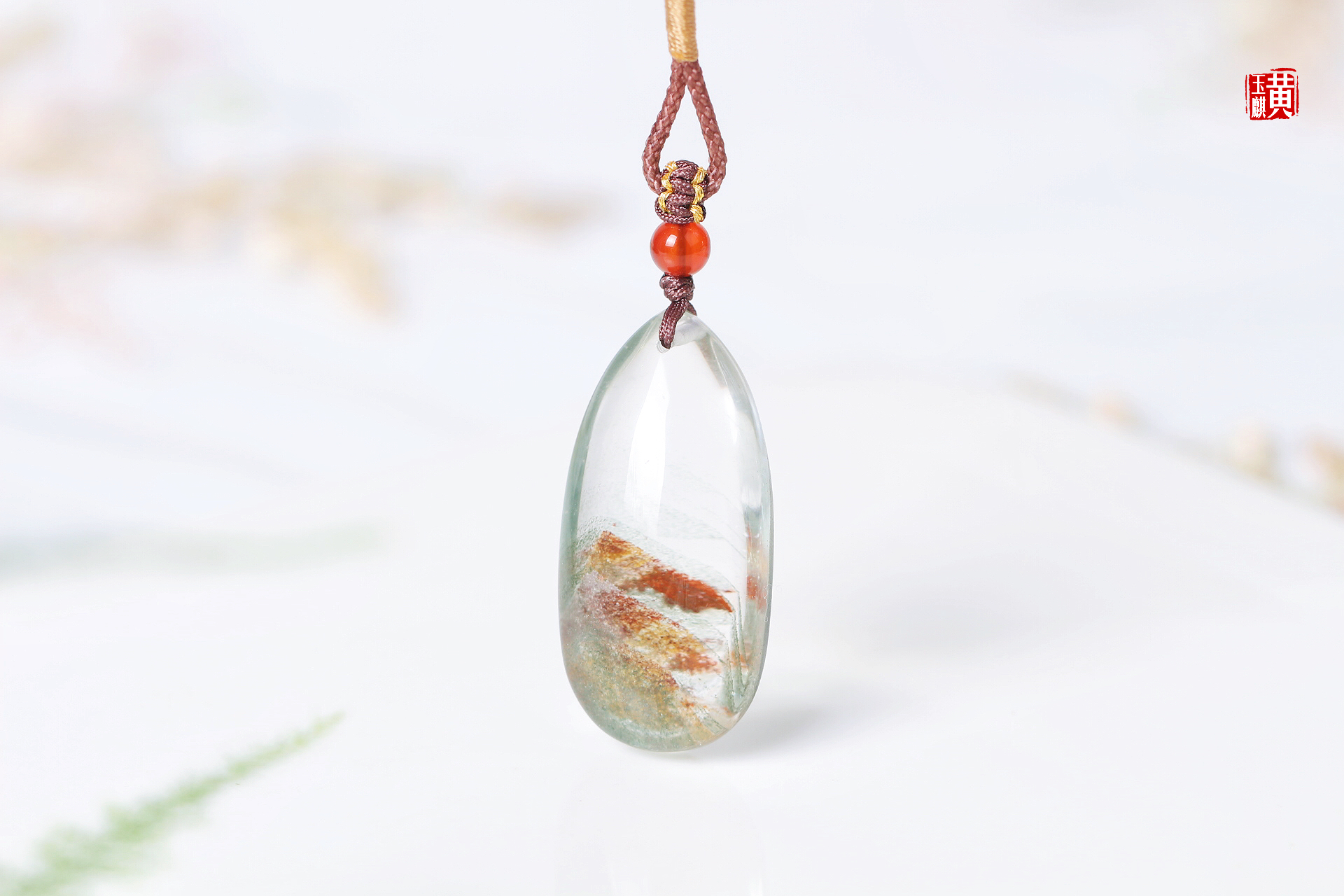 绿幽灵财富山吊坠,通透的晶体内部含有红幽灵、绿幽灵、黄幽灵,形成了财富如山的内部意境,寓意事业红火、财富如山。