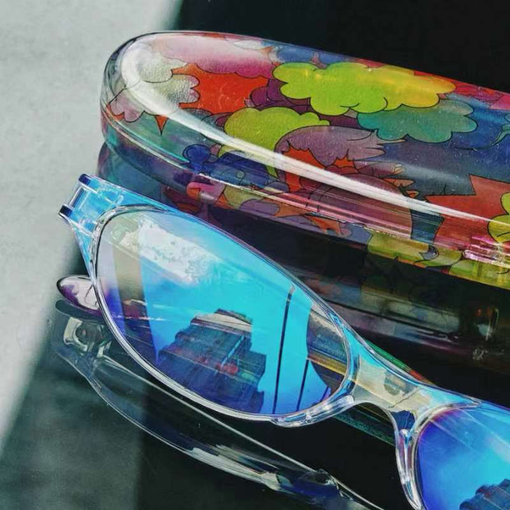 整体外观是涂鸦式,彩彩的,共有三色可选:时尚彩、气质灰、经典红,每一种颜色都很鲜亮,不会很老气。因为老花不像近视,不一定都会去测度数,如果没测,可以参考品牌推荐的度数来买。