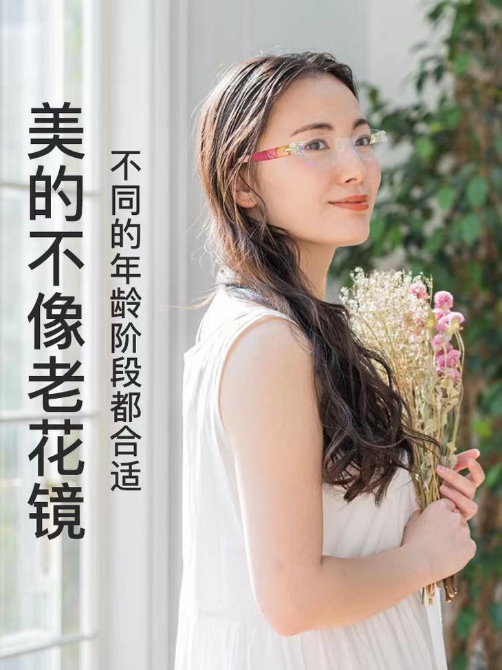 老花镜的镜片采用高品质树脂原料,镜面两侧还增加了镀膜层,透光性好、清晰度高、耐磨、防水、防灰尘,同时还采用防蓝光镀膜层,部分蓝光吸收、部分反射,从而实现双重双效防护,还能过滤一些太阳直射光,在辐射强烈的时候,也能保护老人的眼睛不被强光刺激。镜架则采用PP材质,轻弹柔韧,可以达到300度弯折而不变形,强大的韧性和弹力适合各种脸型,佩戴起来轻松自如,完全不用担心带不下,也不易脱落和断裂变形。眼镜看起来很塑料,但其实是为了更轻巧,镜片+镜架总重量才不过13.1g,久戴也不会有压迫感,而且一体式设计,接骨处更是日本精密模具连接,无需任何的金属螺丝,大大的增加了眼镜的使用寿命。
