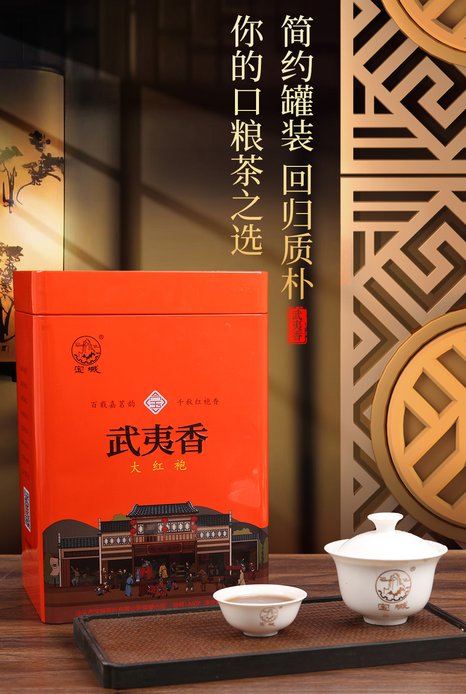 【新品上市,欢迎尝鲜】宝城棉城大红袍茶叶500克罐装礼盒装浓香型乌龙茶岩茶A706