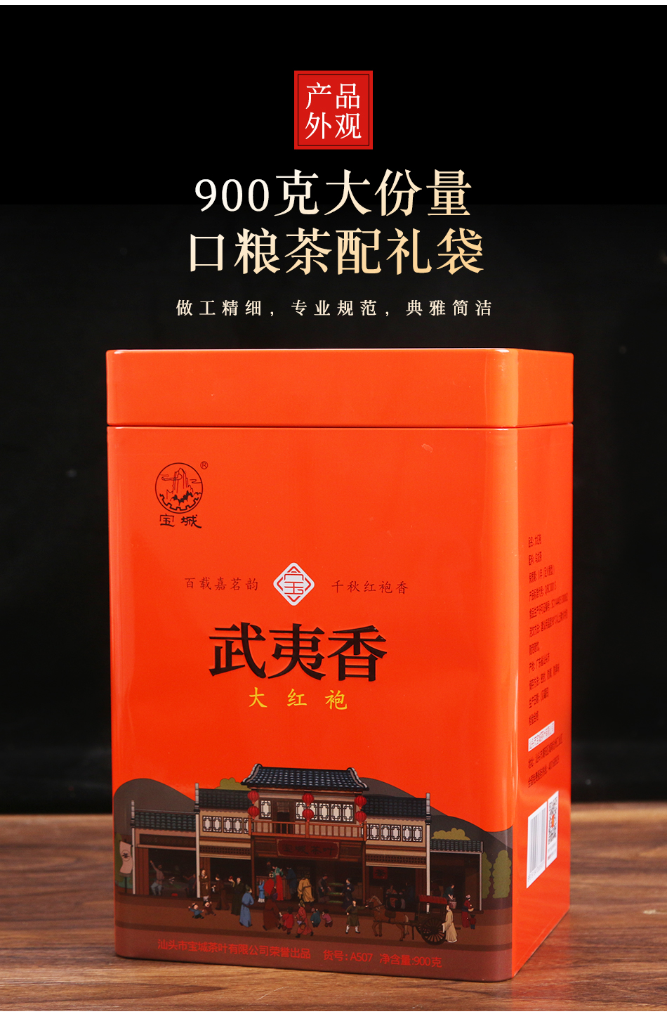 【热销】宝城 A507大红袍罐装900克散茶 浓香型乌龙茶