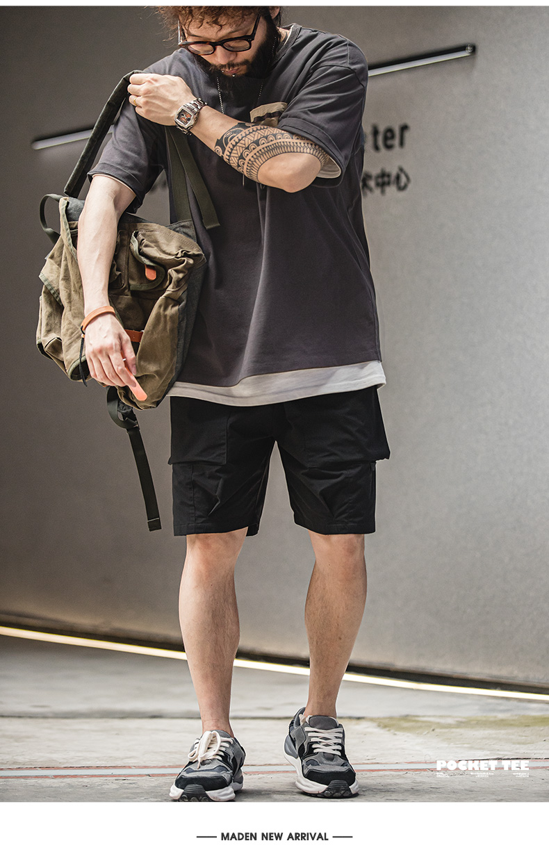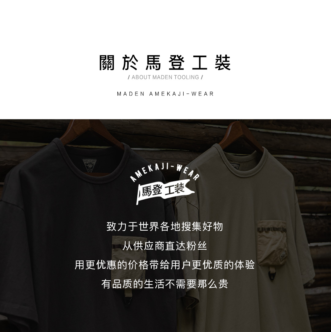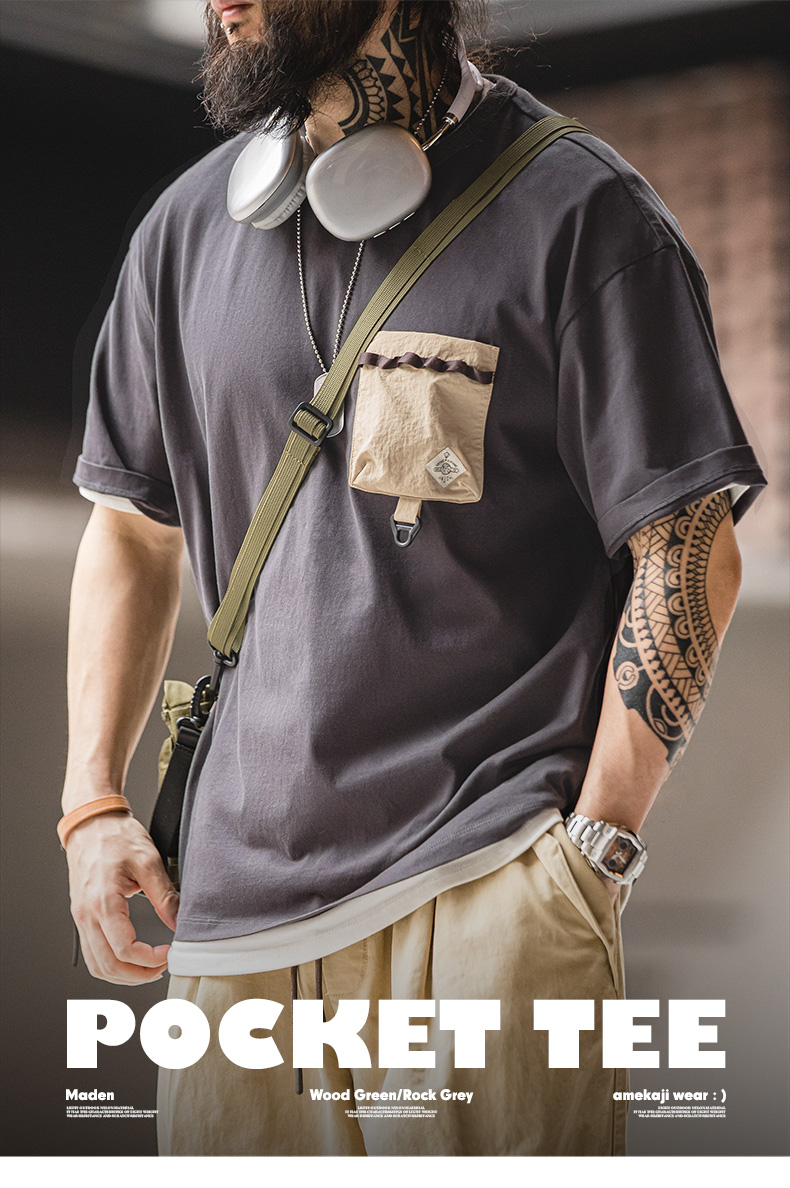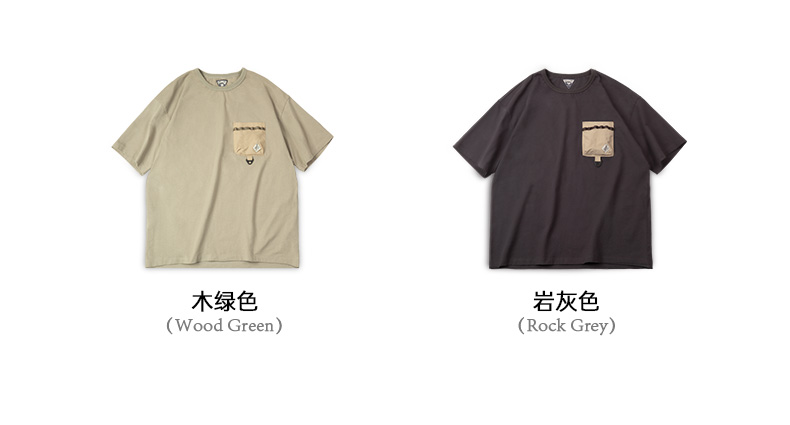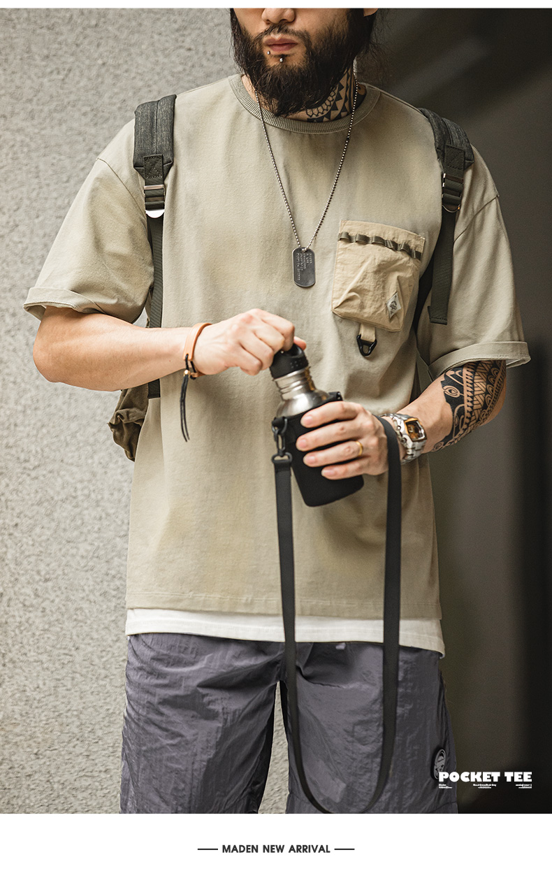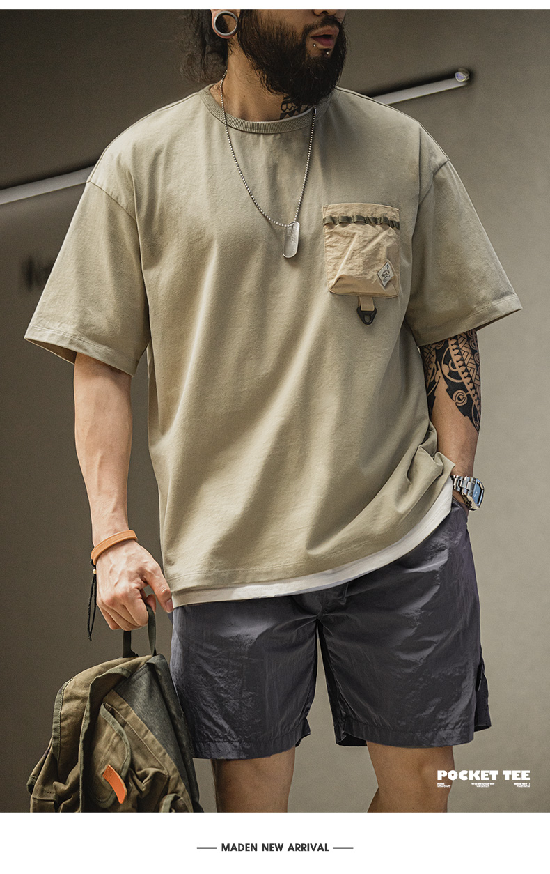工装优选 美式休闲户外机能风短袖T恤纯棉口袋撞色体恤拼接Tee男