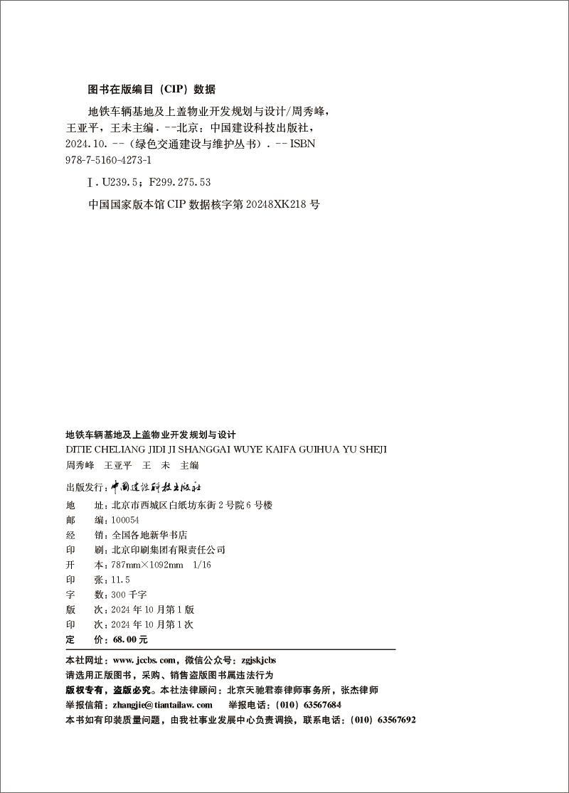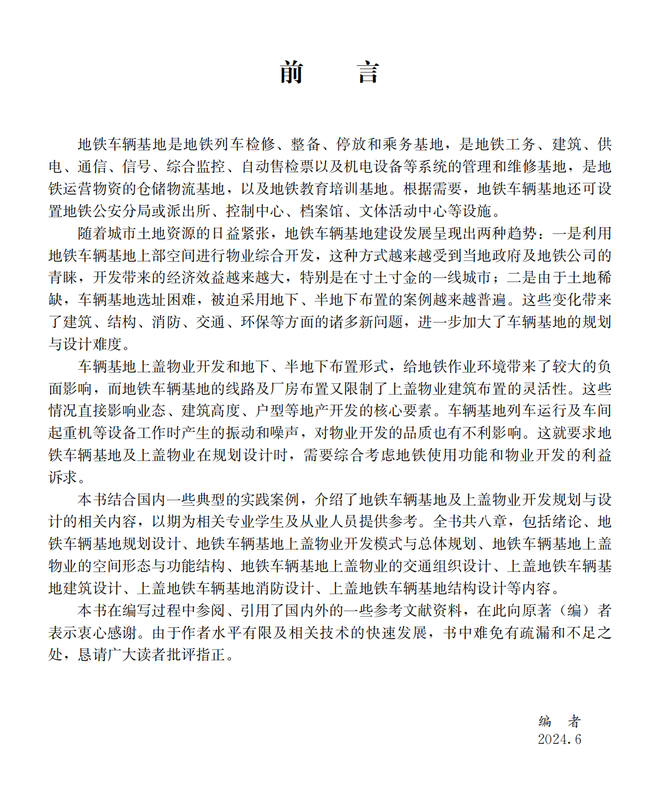 地铁车辆基地及上盖物业开发规划与设计/周秀峰, 王亚平,王未主编北本:中国建设科技出版社, 2024(绿色交通建设与维护丛书)ISBN 9787516042731