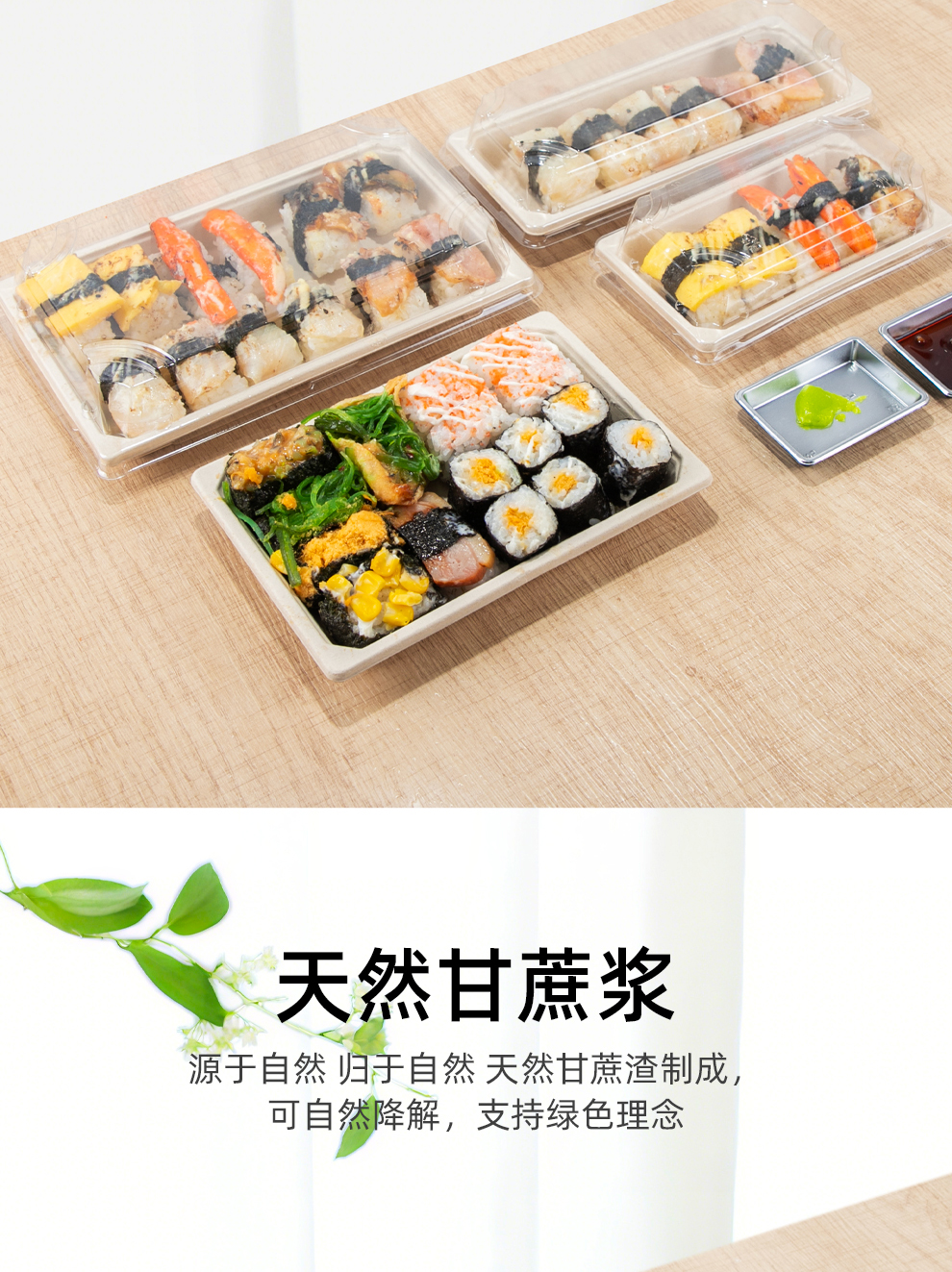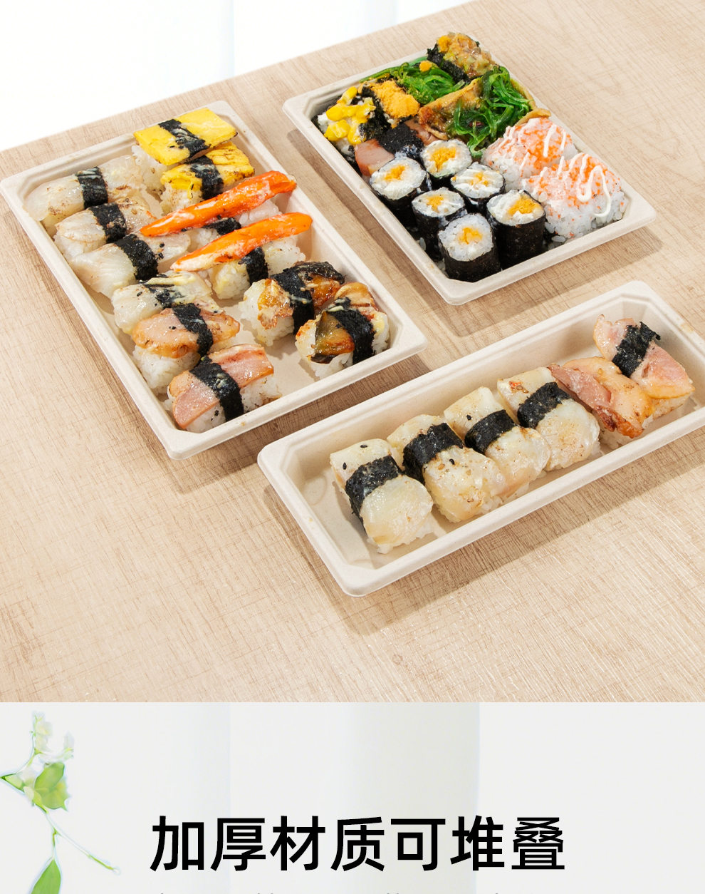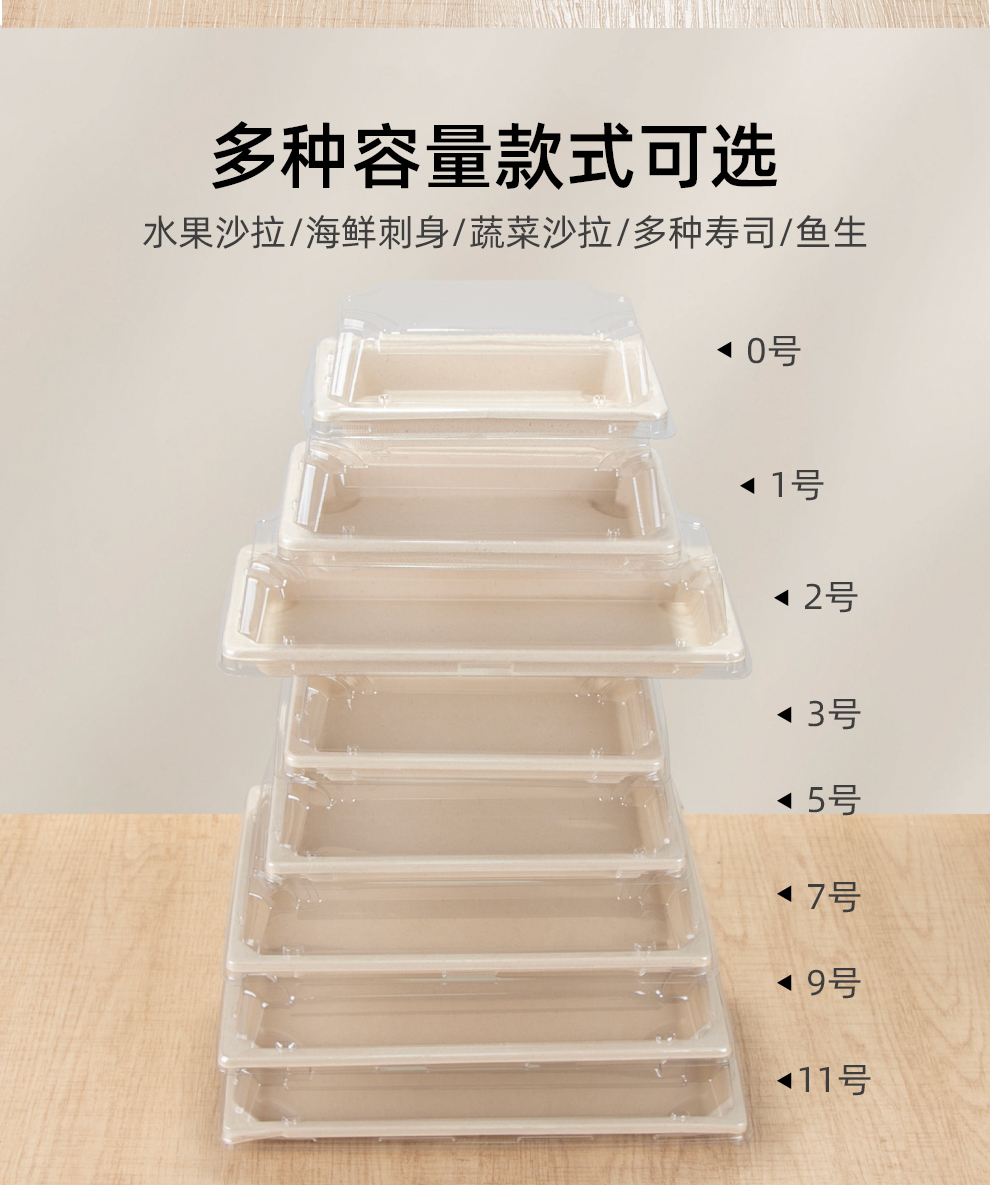 喇叭花本色一次性纸浆寿司打包盒料理盒外卖包装盒烧烤盘蛋糕盒