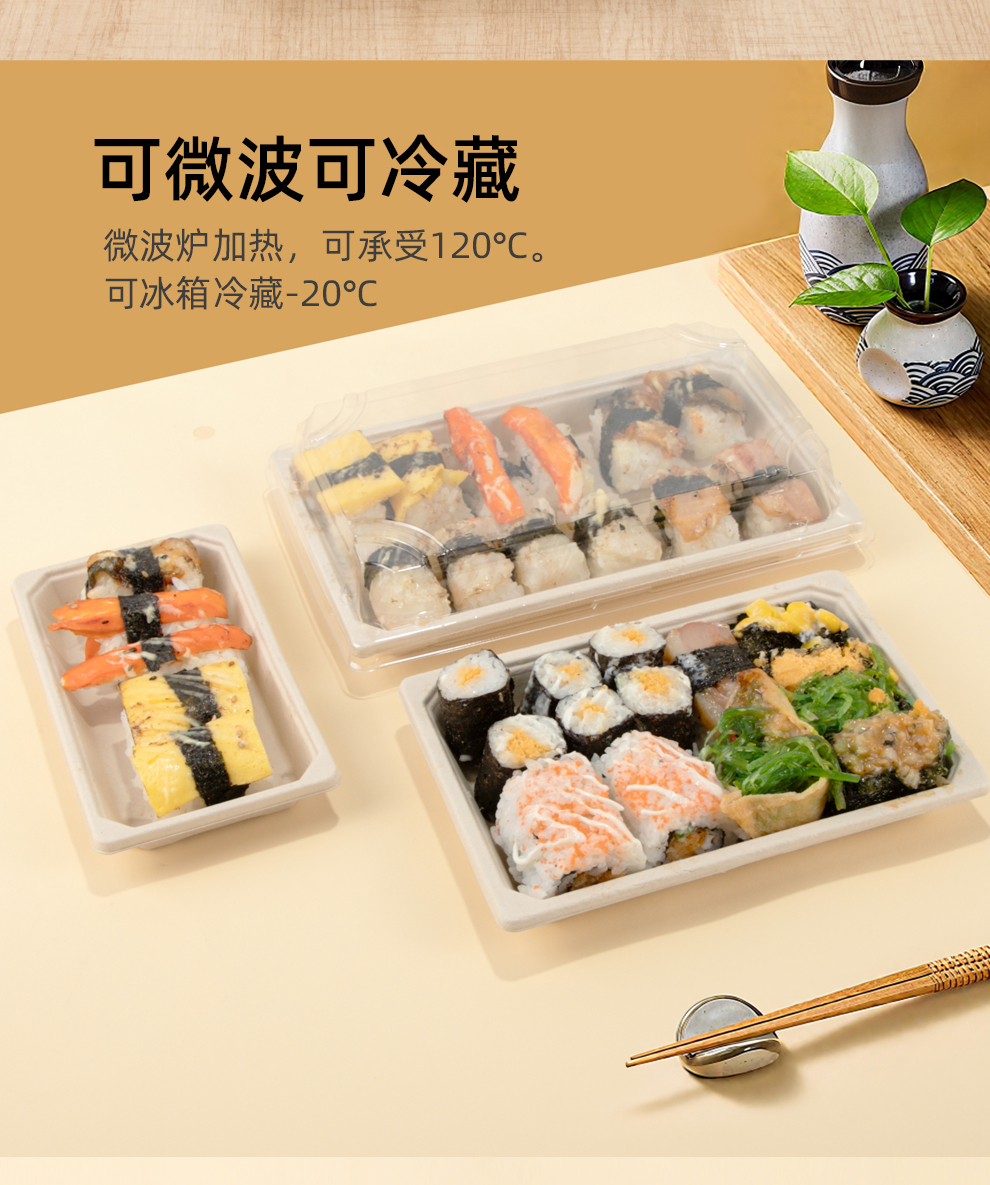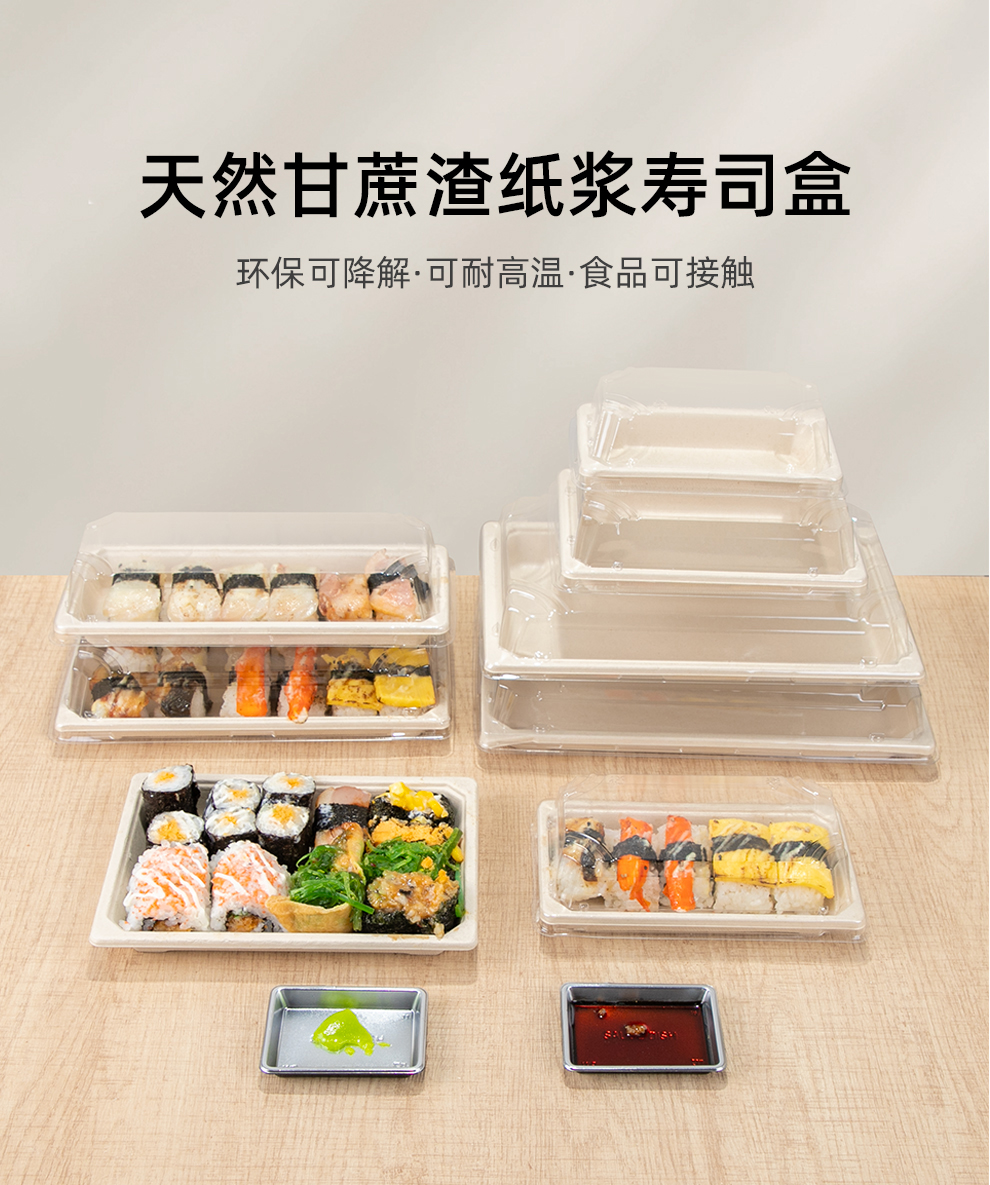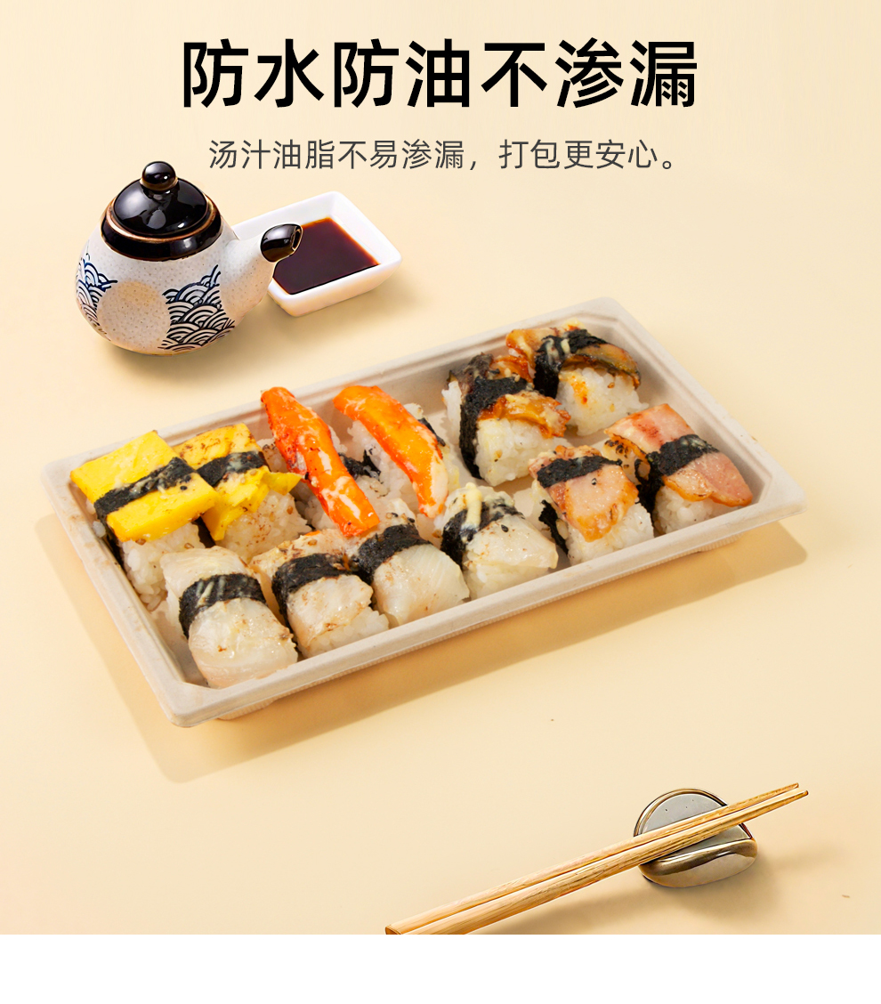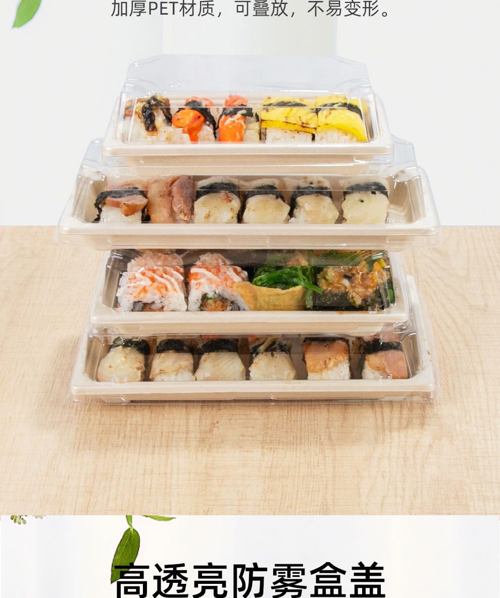 喇叭花本色一次性纸浆寿司打包盒料理盒外卖包装盒烧烤盘蛋糕盒