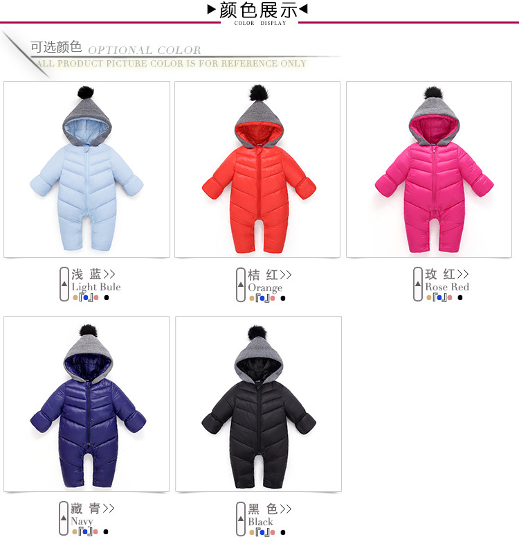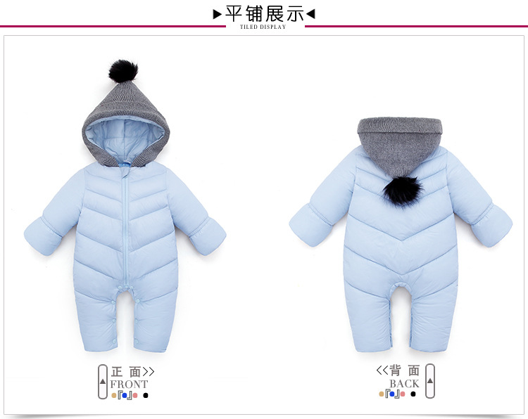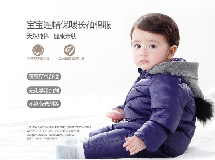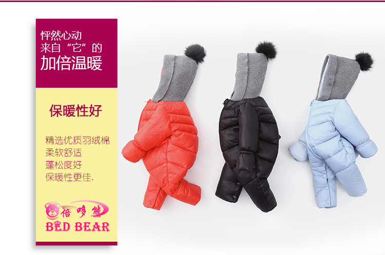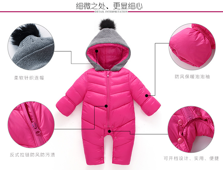 秋冬时尚新款纯色加厚保暖婴儿连体衣 棉衣爬服 宝宝哈衣