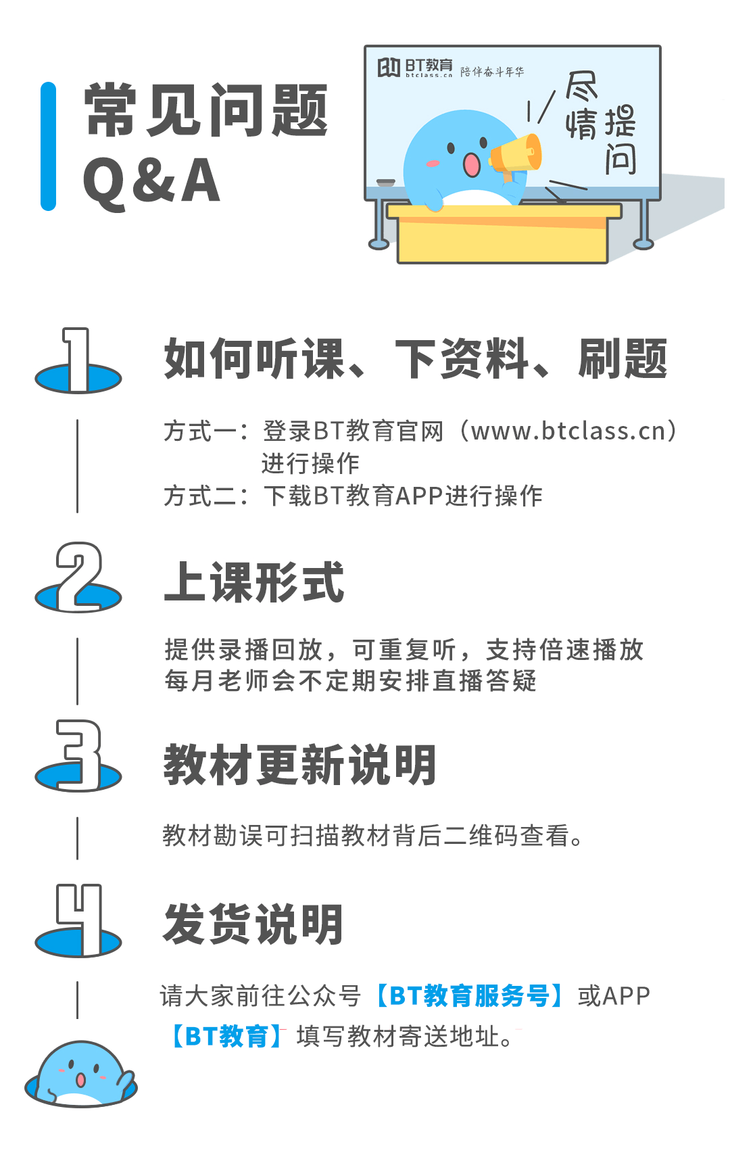 23年课程将会赠送22年纸质版讲义及资料区的配套更新补充讲义,如果无需22年纸质版讲义寄送,请购课后到【BT教育服务号】联系客服进行登记不发教材。