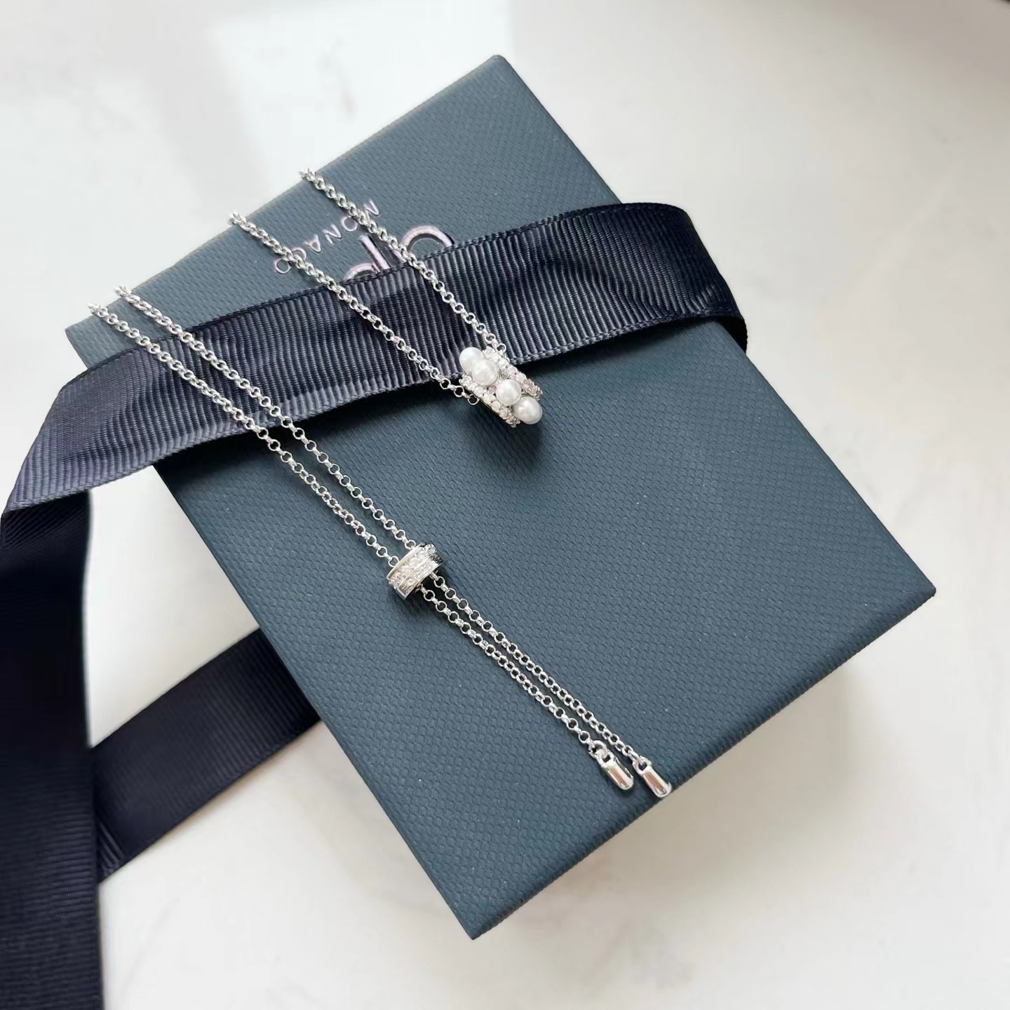 Monaco小蛮腰珍珠项链 小蛮腰结合珍珠的设计 简约 时尚的设计风格 高颜值的一款项链 谁带都好看哈 伸缩设计 长度可调节