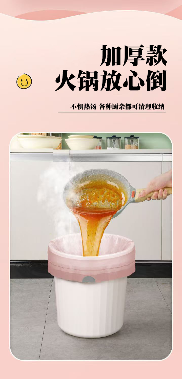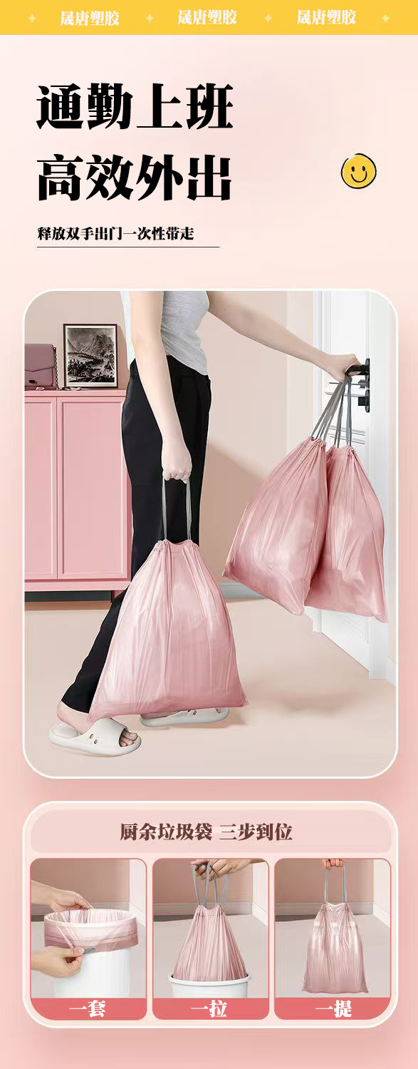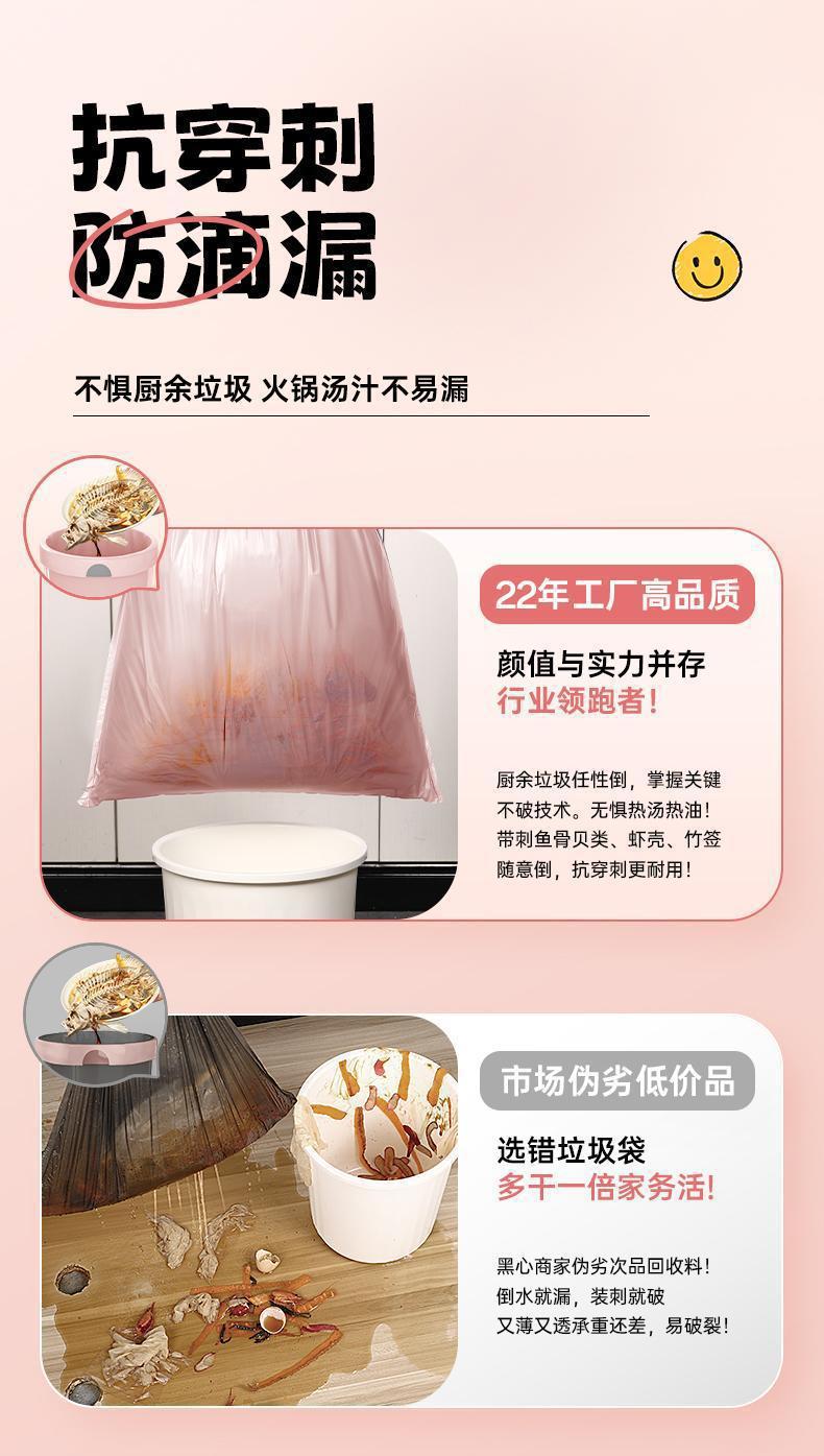 冰莓粉加厚垃圾袋抽绳式家用特厚厨房塑料袋学生宿舍垃圾袋抽拉提