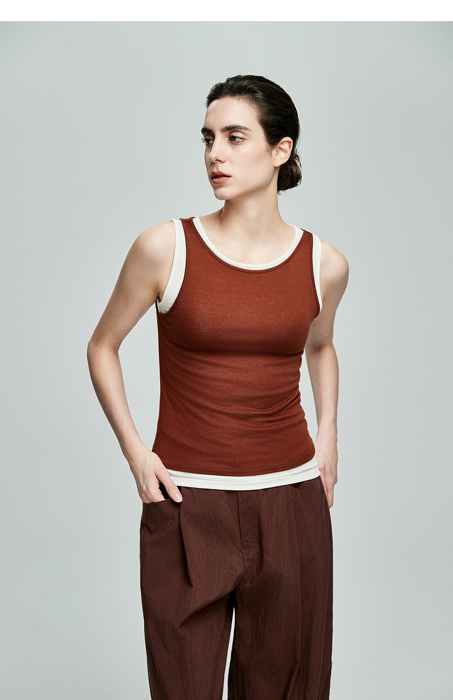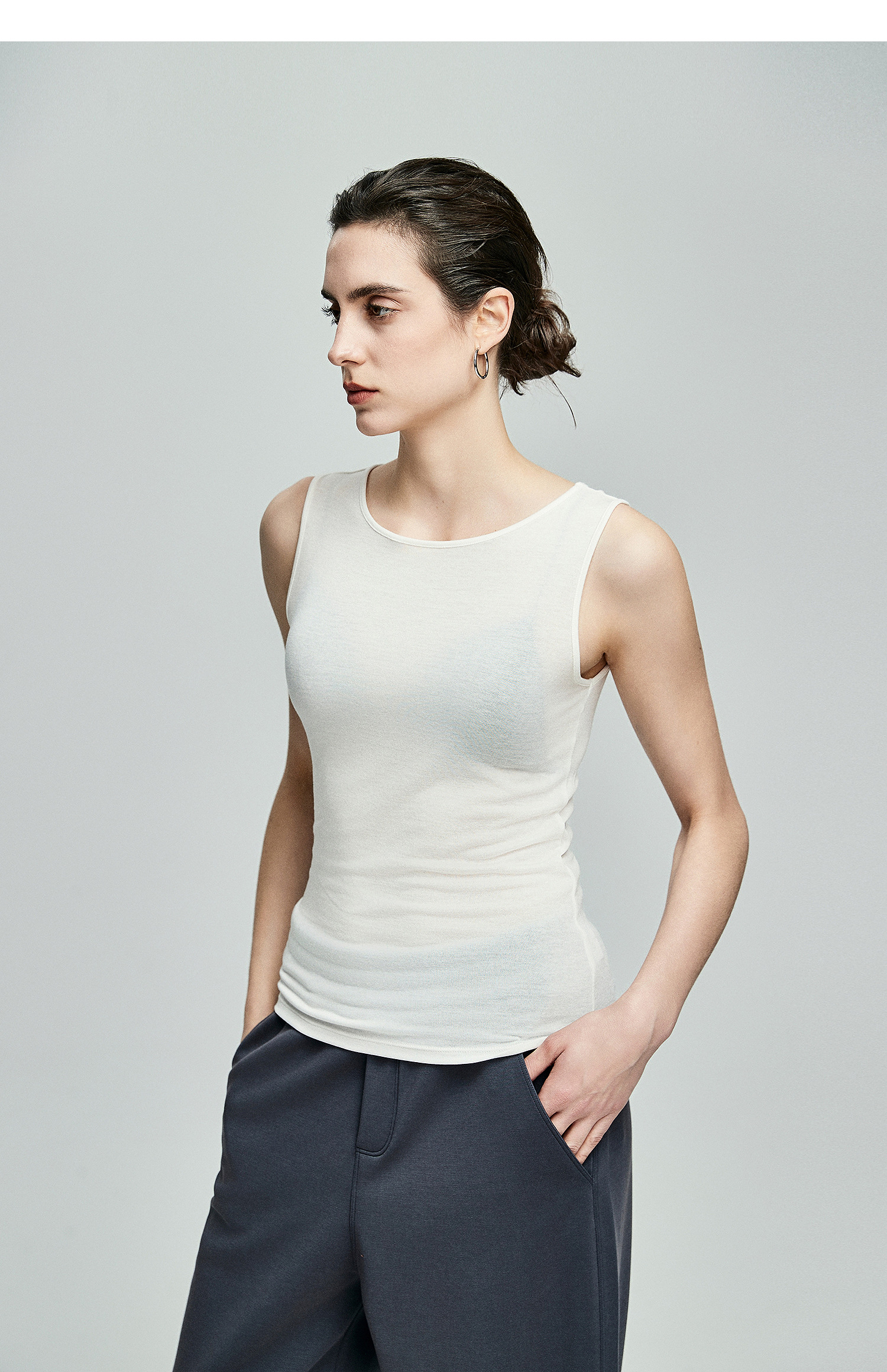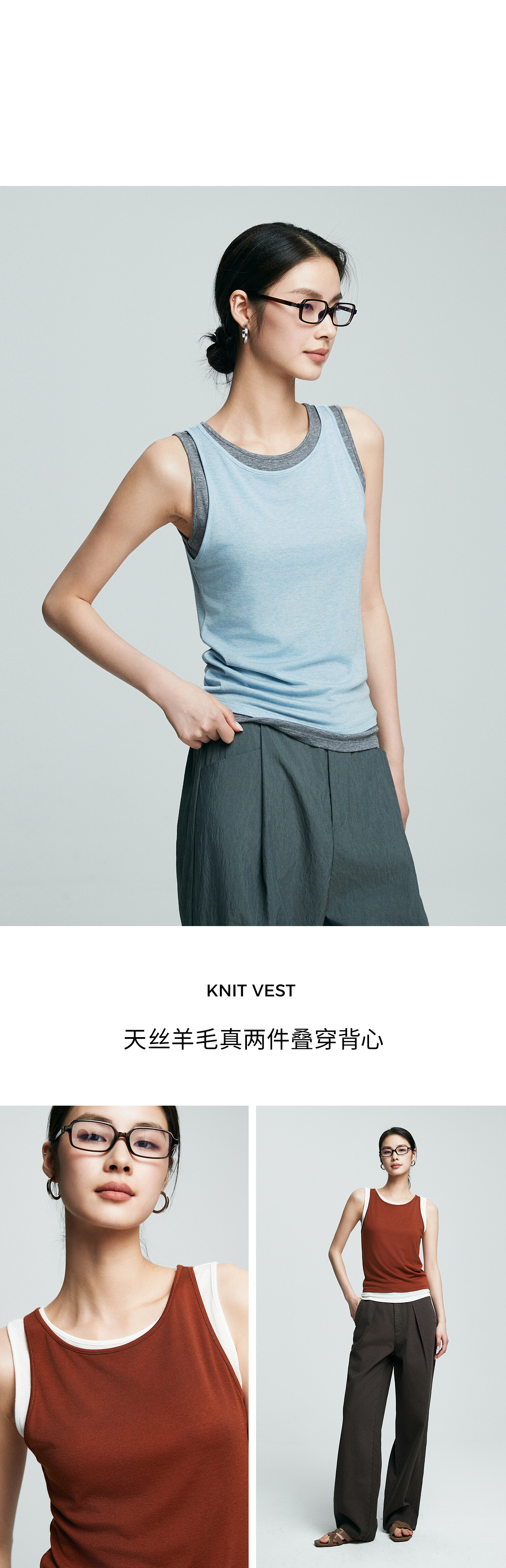棉仓362603001-初棉天丝羊毛MIU系叠穿背心修身显瘦奢感微透舒适软糯