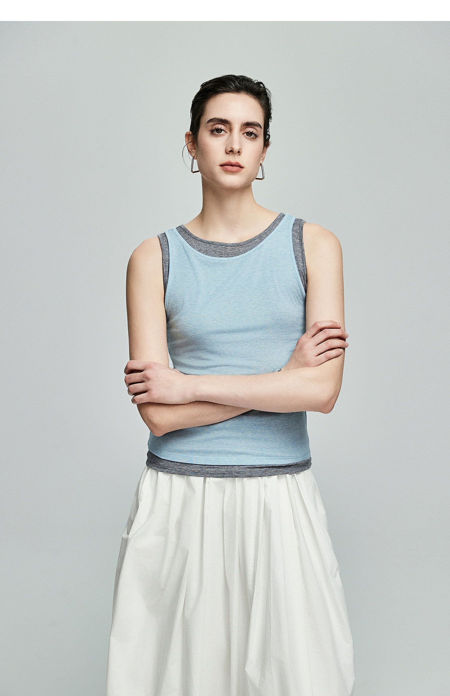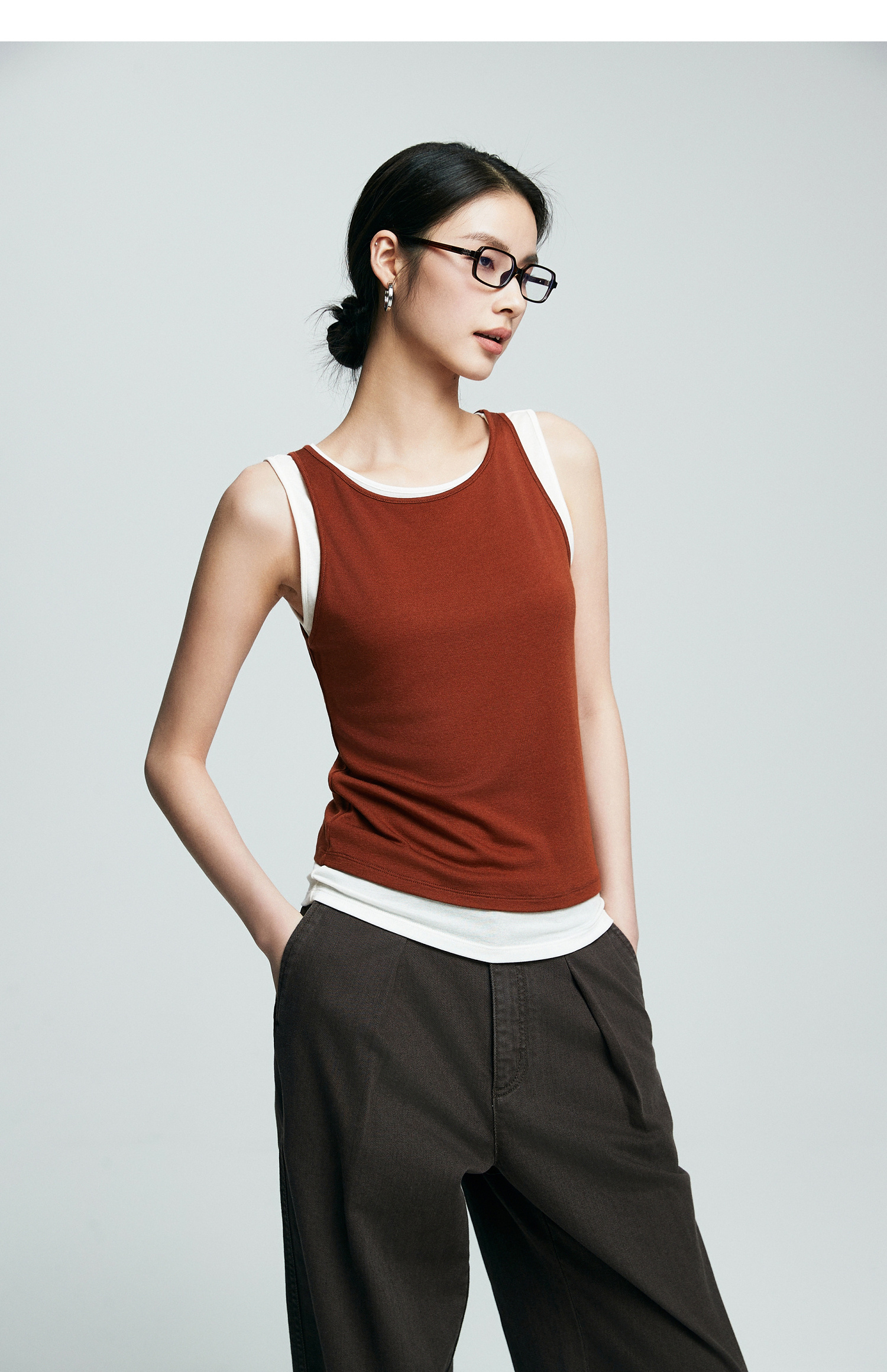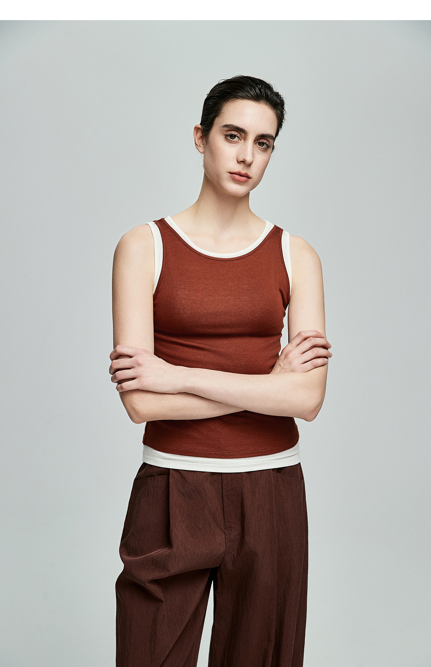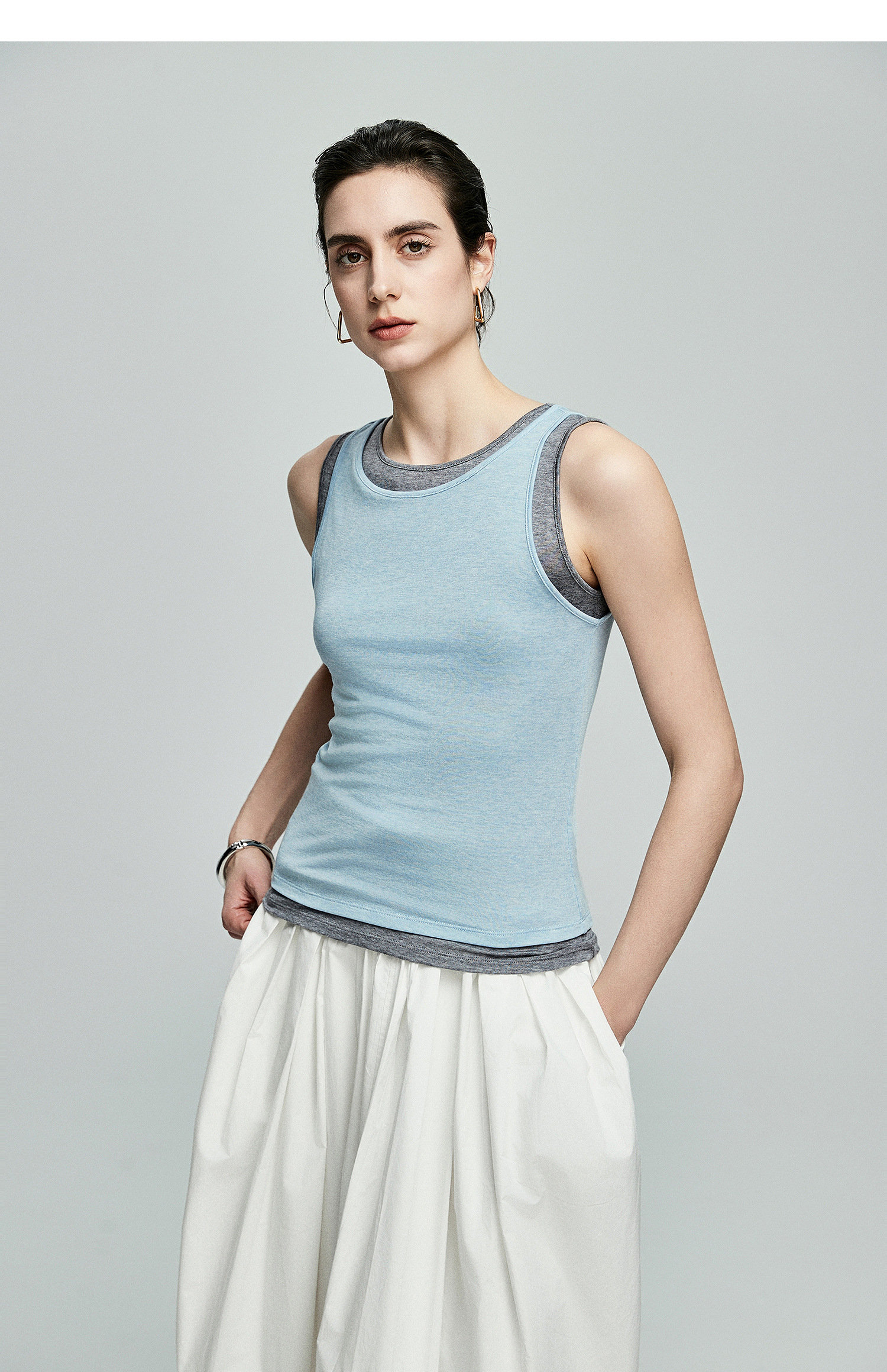 棉仓362603001-初棉天丝羊毛MIU系叠穿背心修身显瘦奢感微透舒适软糯