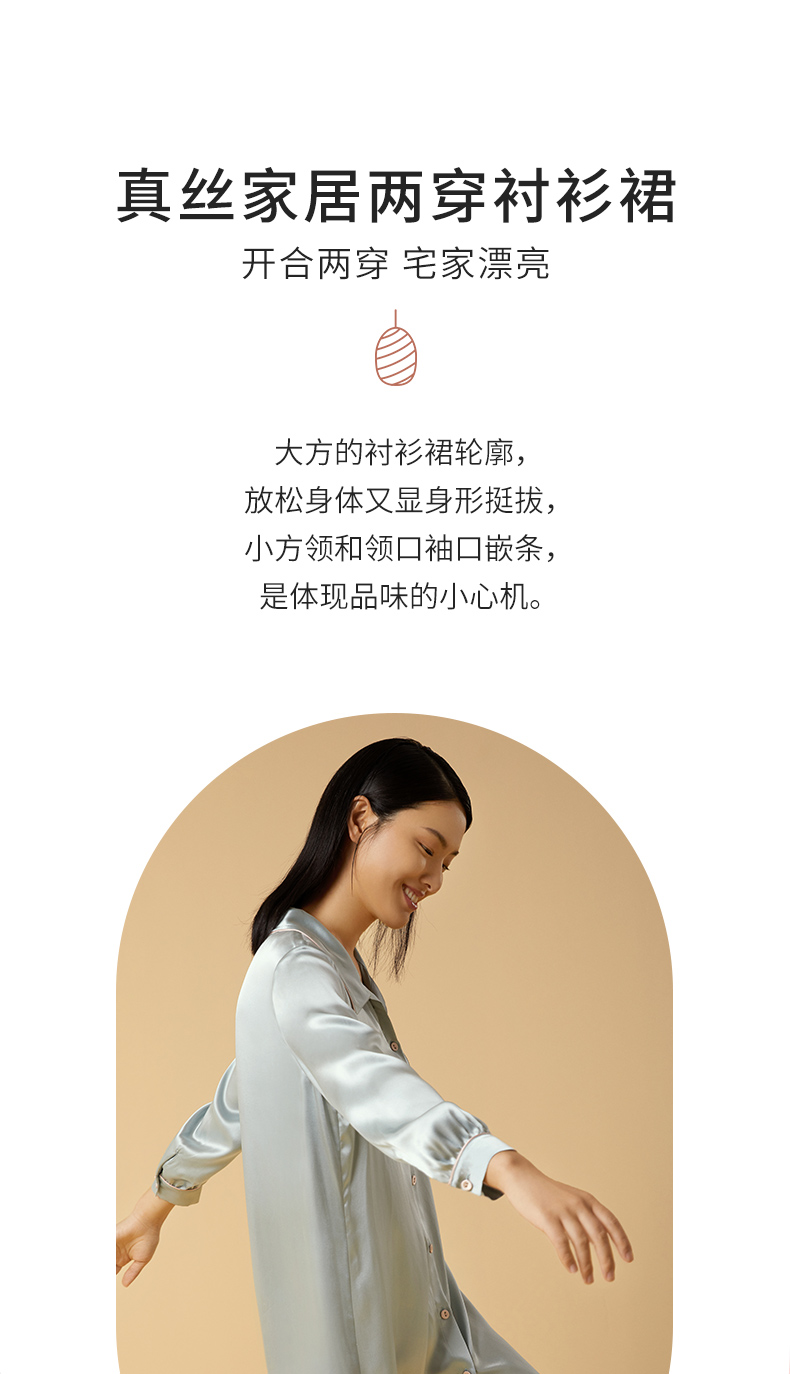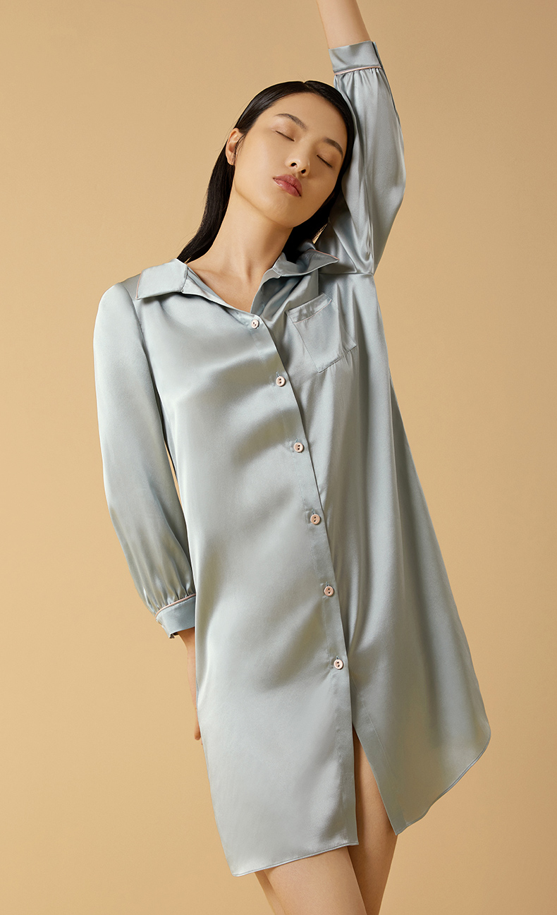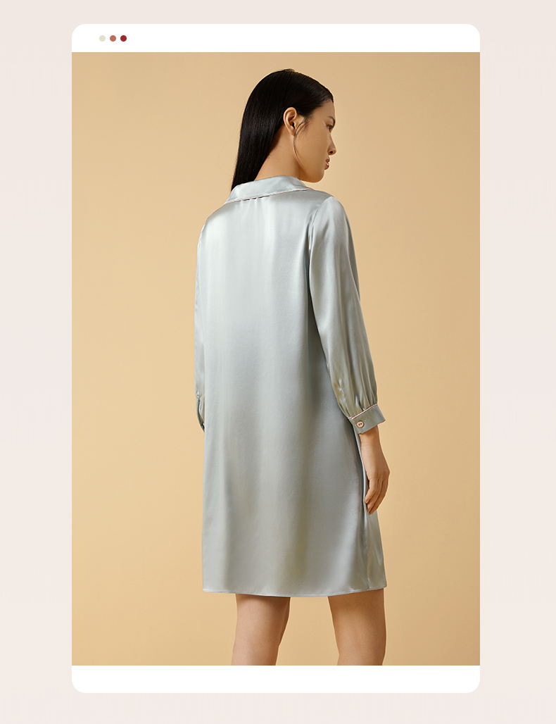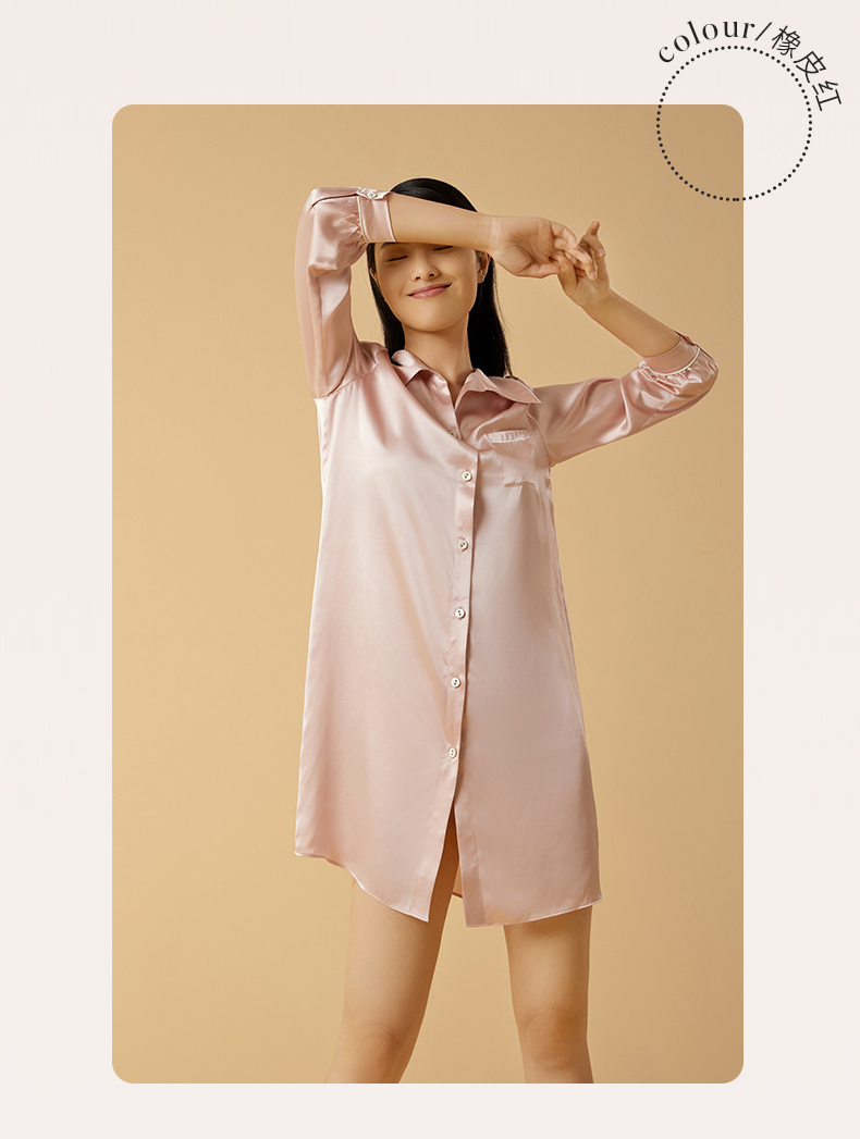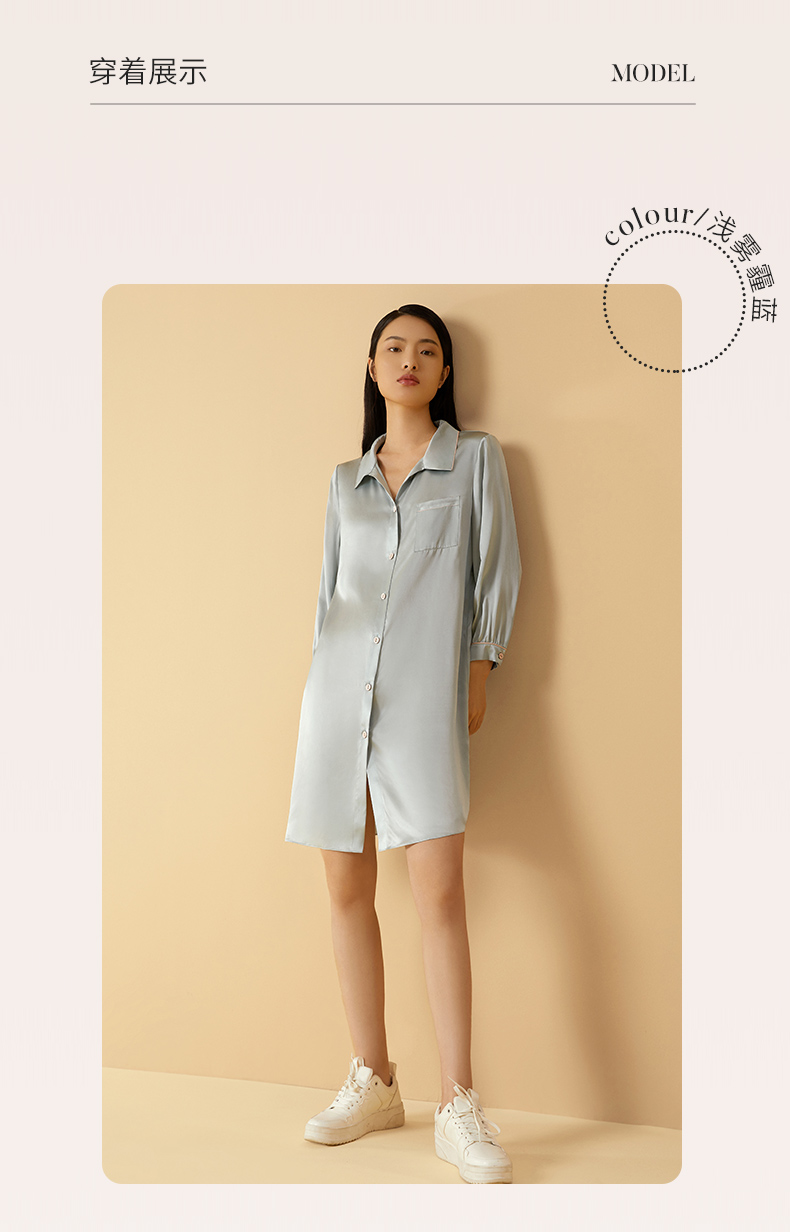 金三塔2022春夏新品100%桑蚕丝女士纯色真丝睡衣可外穿衬衫式睡裙 YSFCA327