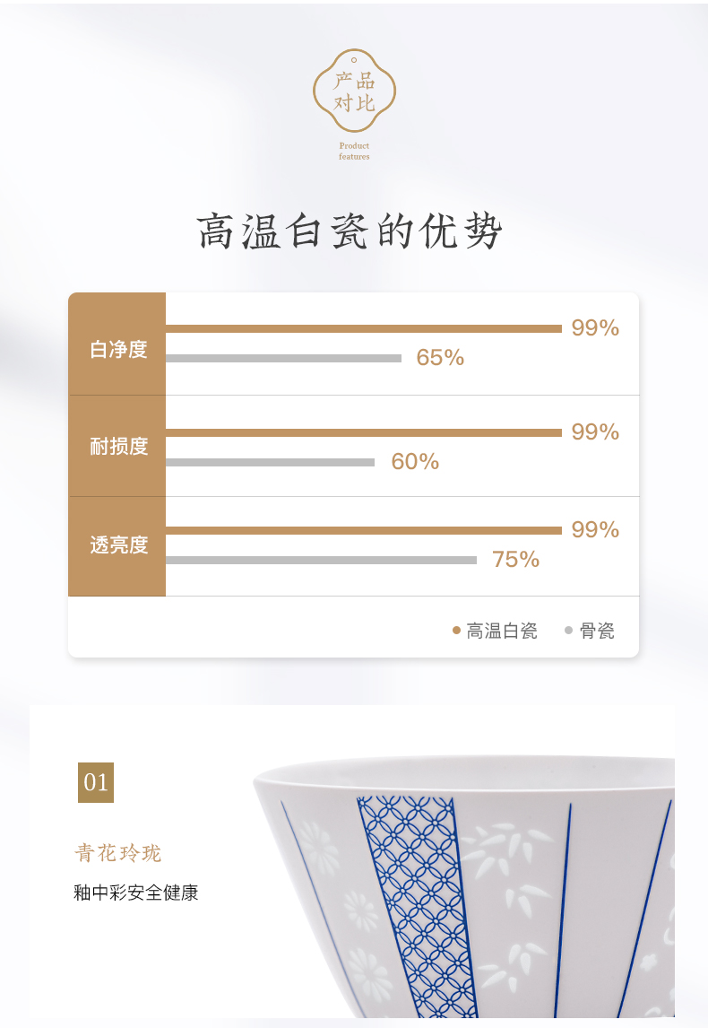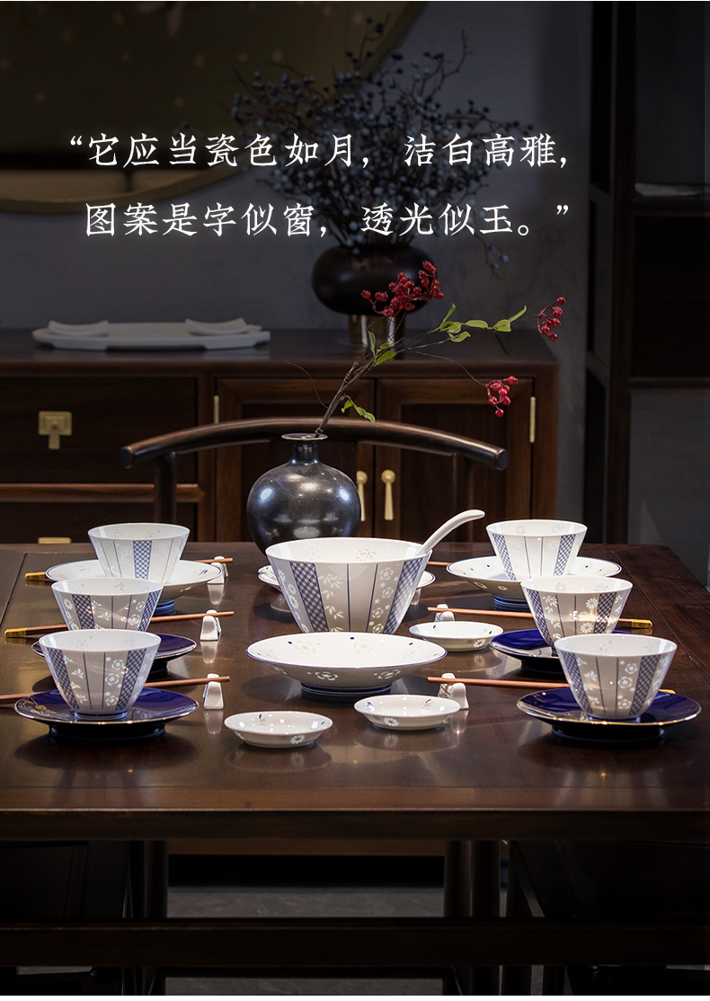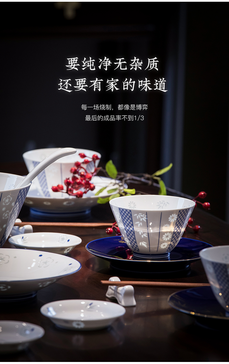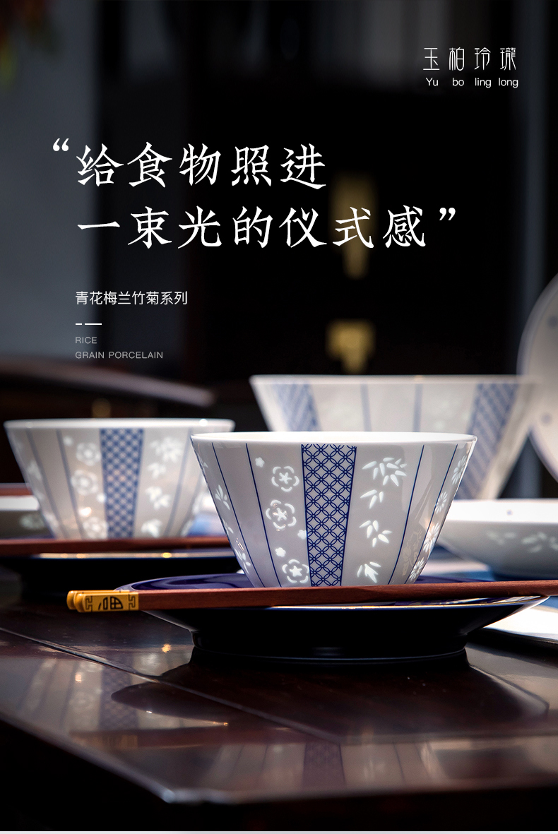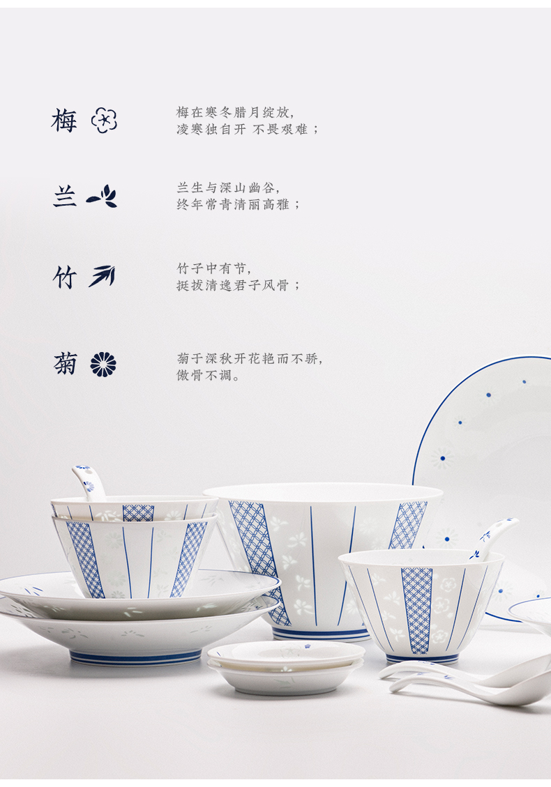 玉柏青花梅兰竹菊15头餐具套组4人食
