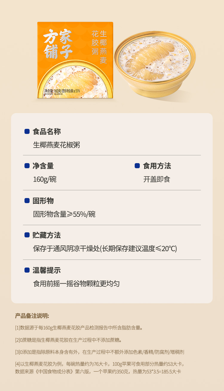 方家铺子即食花胶160g 生椰燕麦花胶粥鱼胶