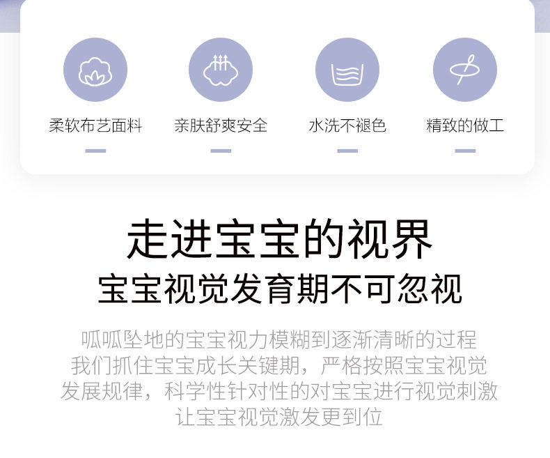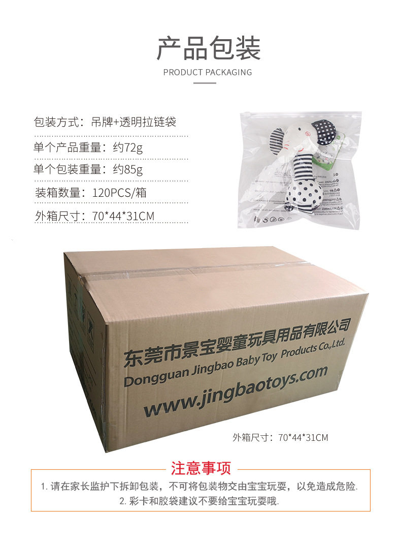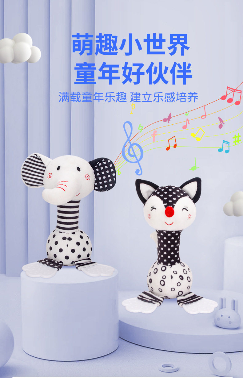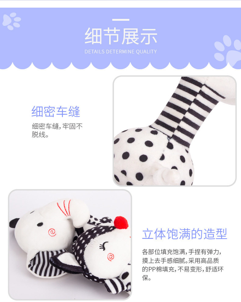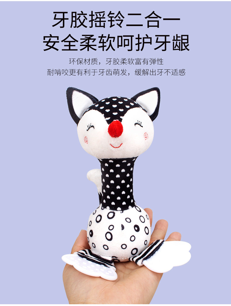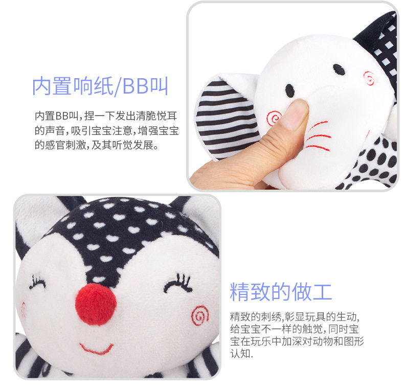 Happy monkey婴幼儿黑白手抓摇铃宝宝视觉训练早教玩具牙胶可入口