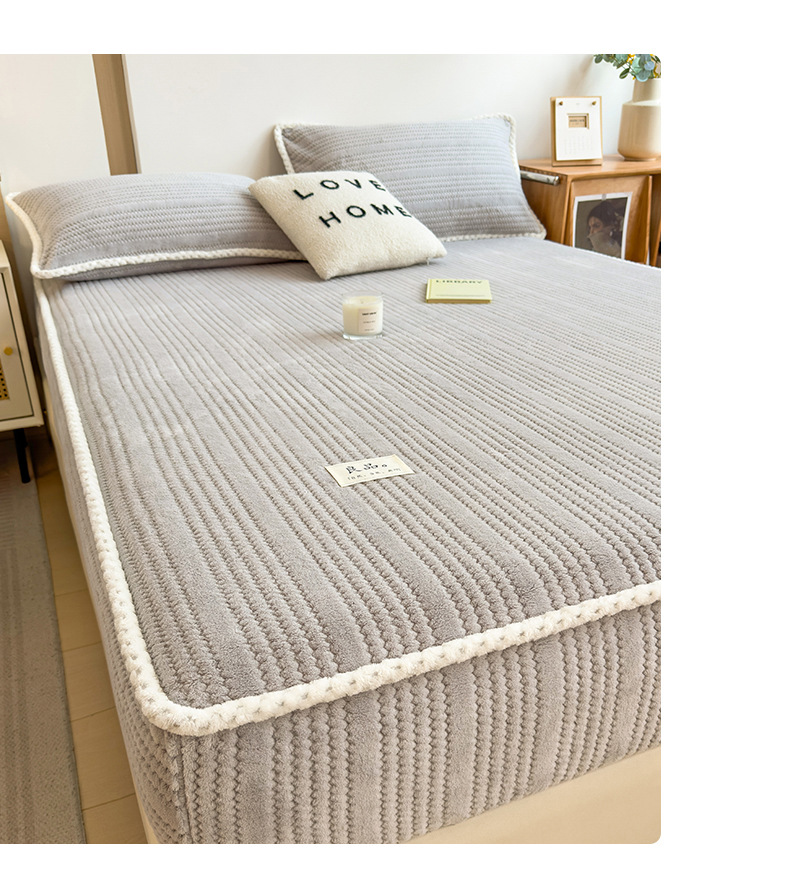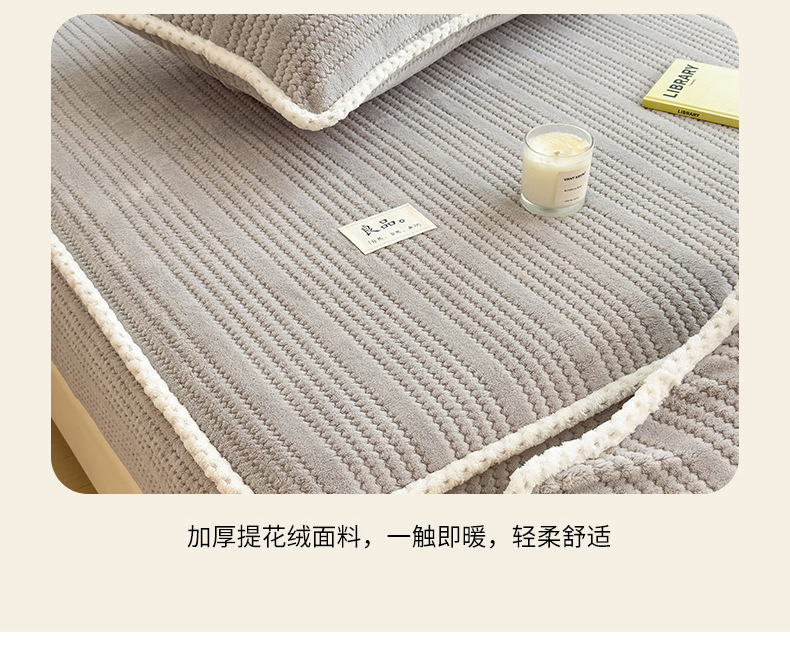 【柔软亲肤可裸睡❗️珊瑚绒床罩套】A类加厚提花绒面料,用身体感受我的柔软,提花绒面料纤维细腻,保暖透气不易掉毛,冬季牛奶绒加厚床笠单件,床单防滑床垫保护套L