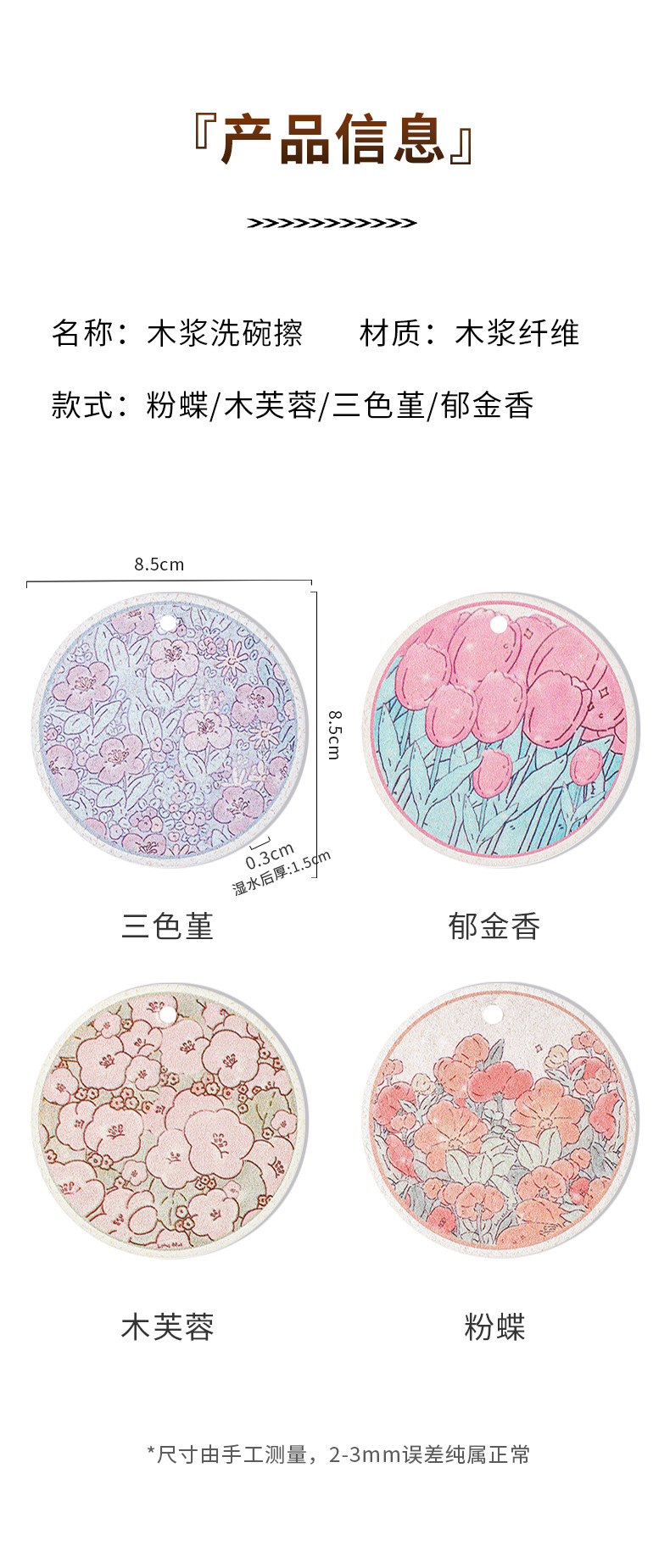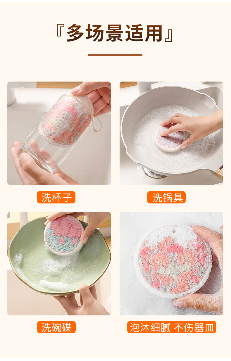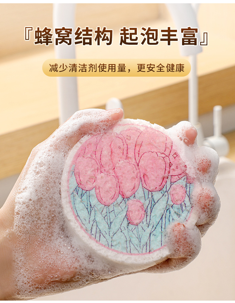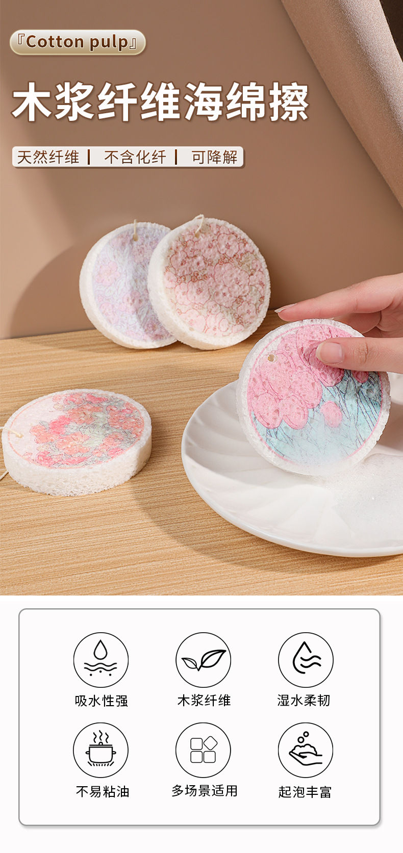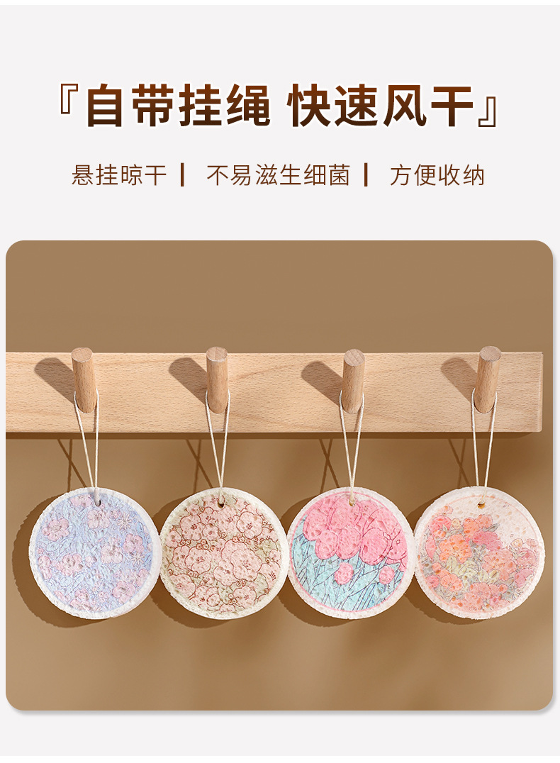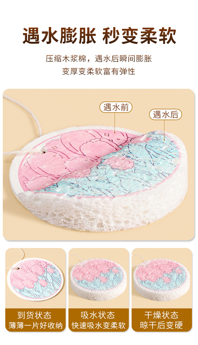 【遇水膨胀 秒变柔软!木棉纤维海绵擦抹布洗碗器】吸水性强湿水柔韧,不易粘油起泡丰富,木浆棉海绵擦压缩木桨海棉刷锅圆形花朵厨房粉丝专属特价清仓