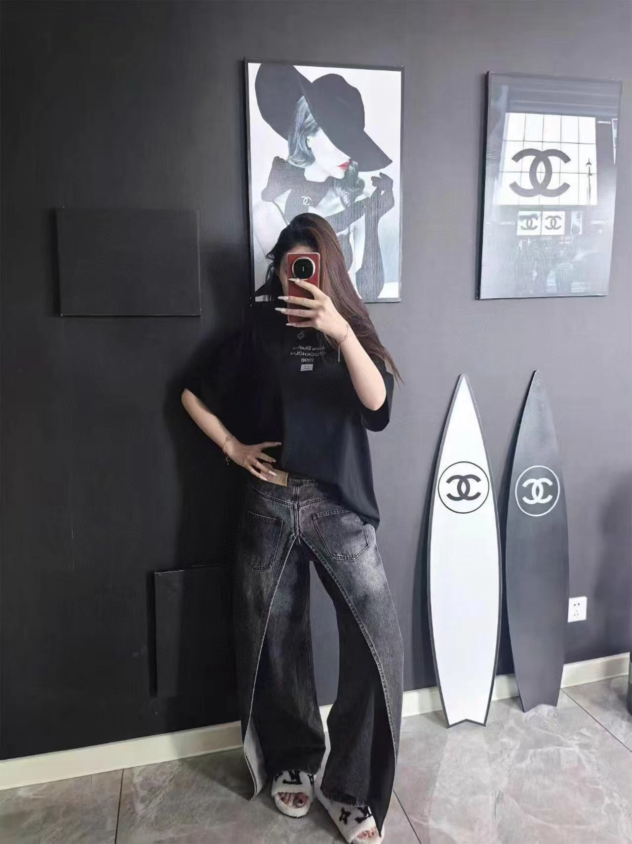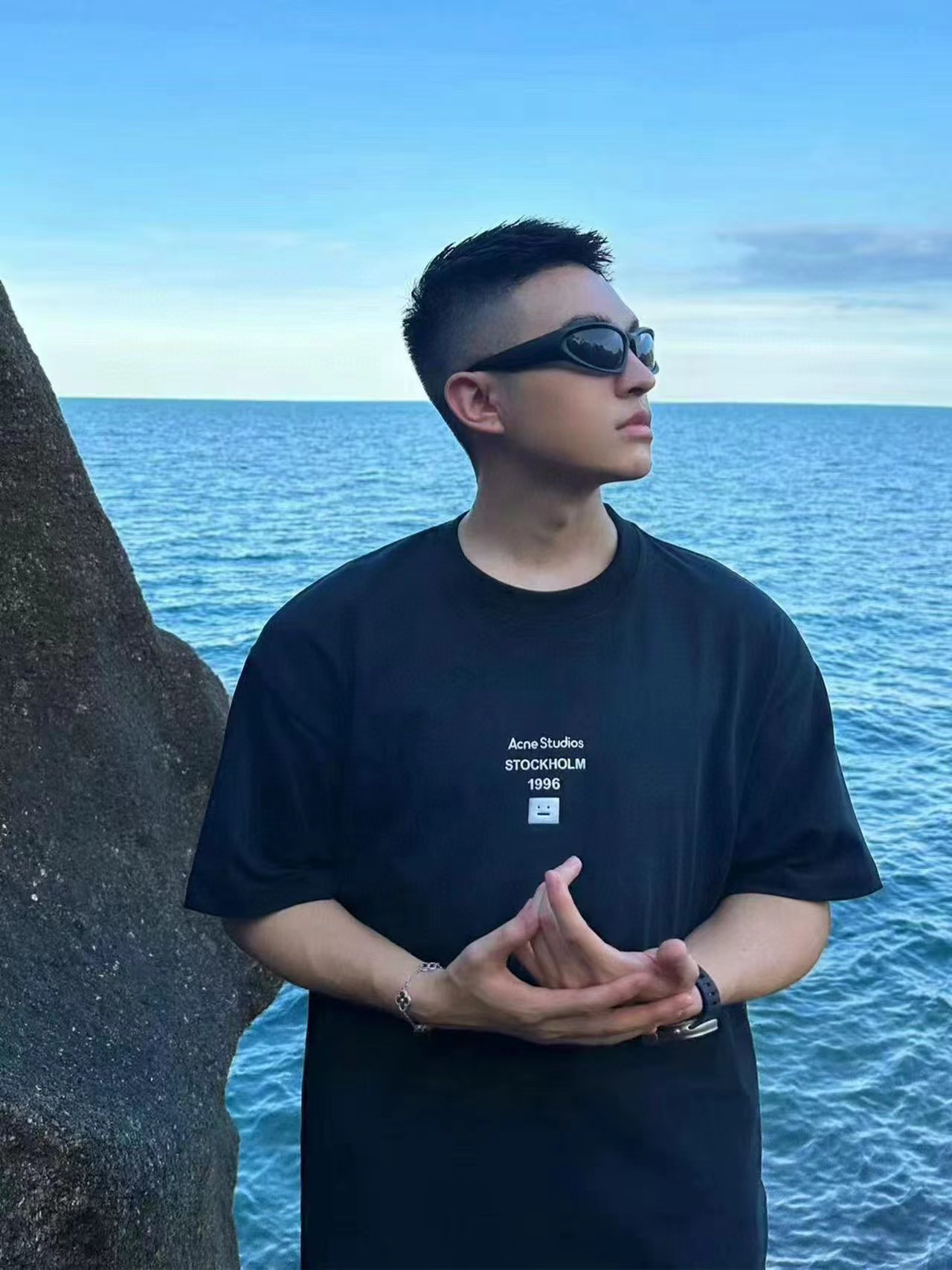 胸口小标tee,后颈字母刺绣。小黑标主题纯棉宽松复古半袖C122958