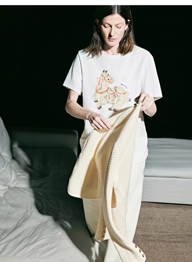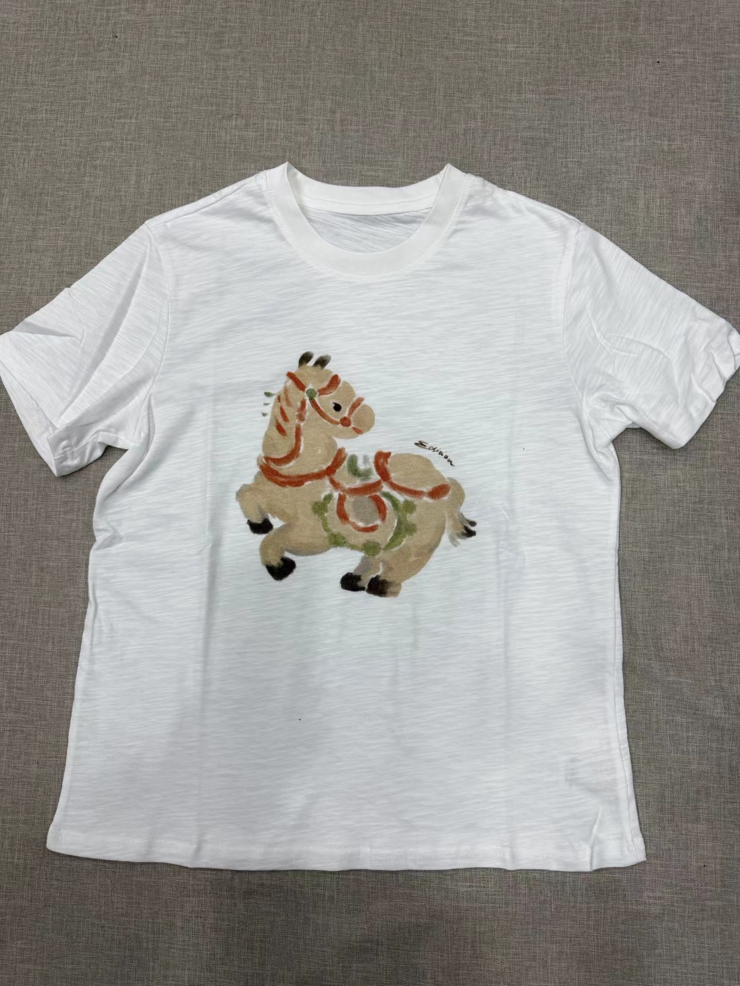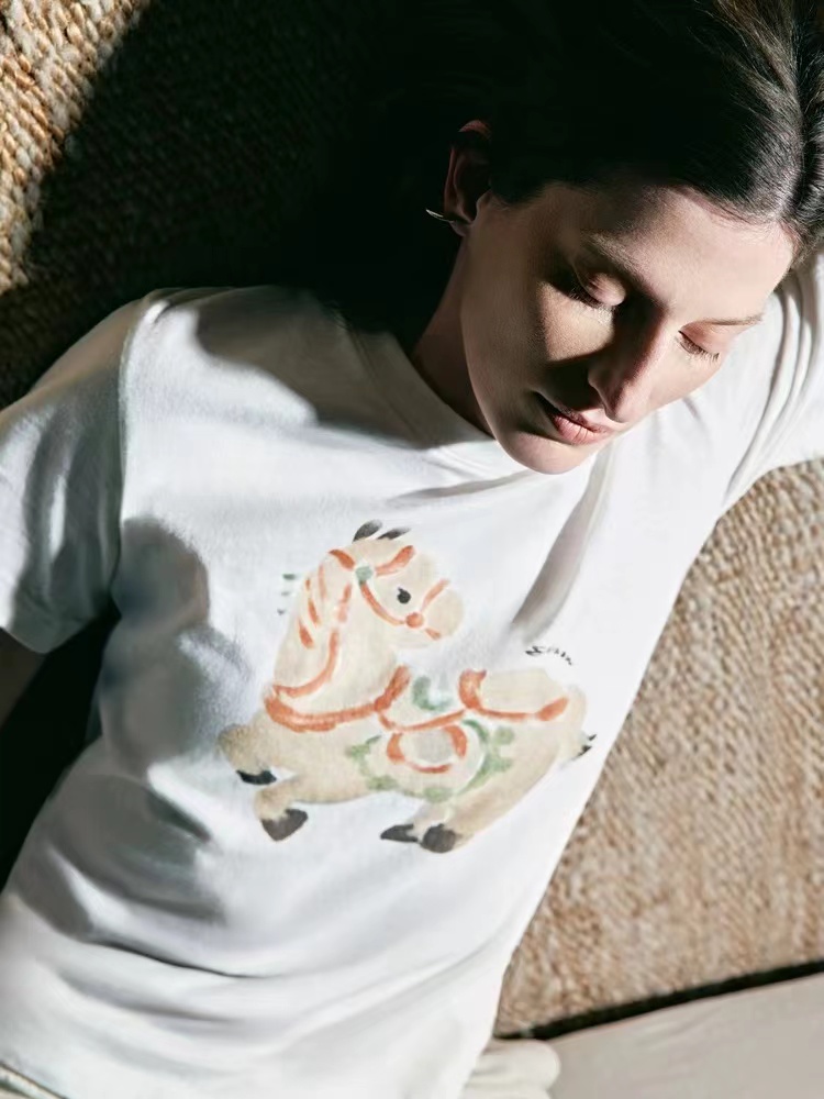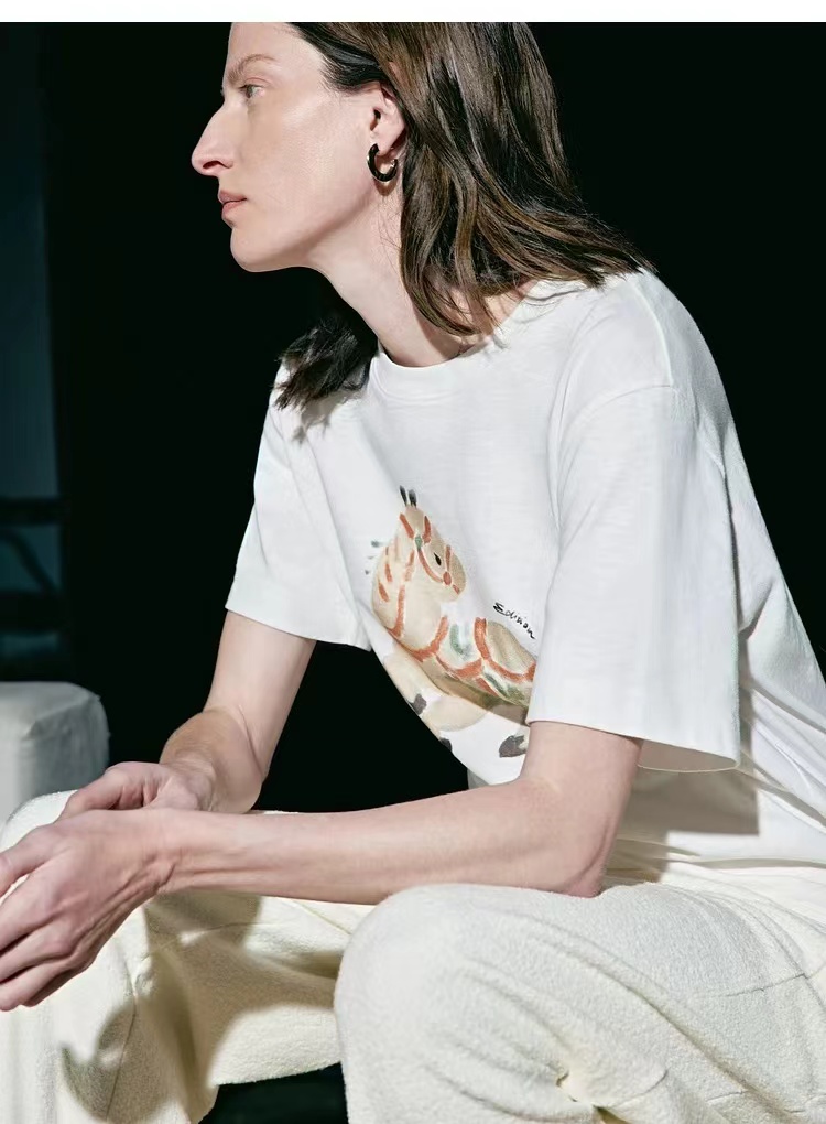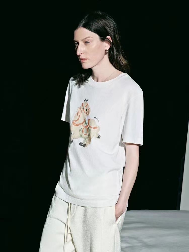 2026春季新款马年限定五花马图腾印花T恤 一个色白色T