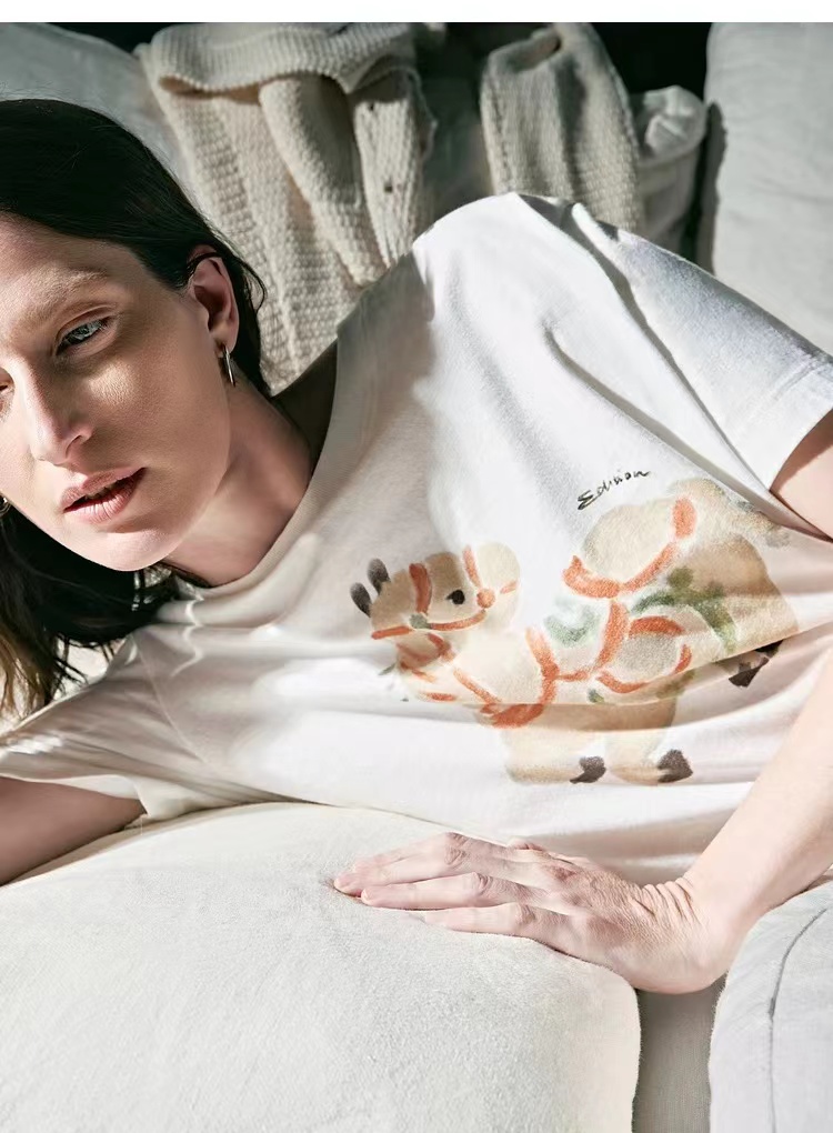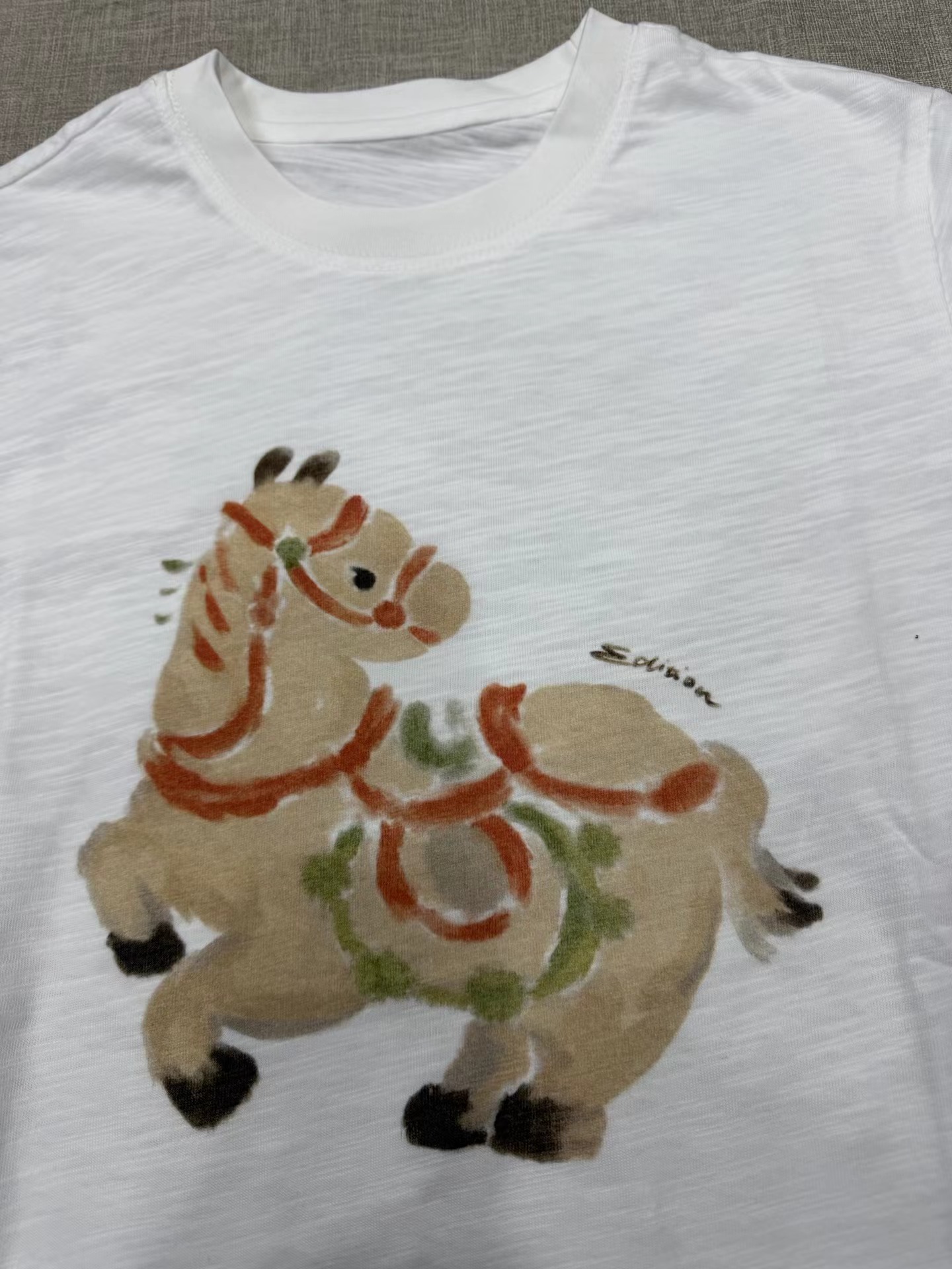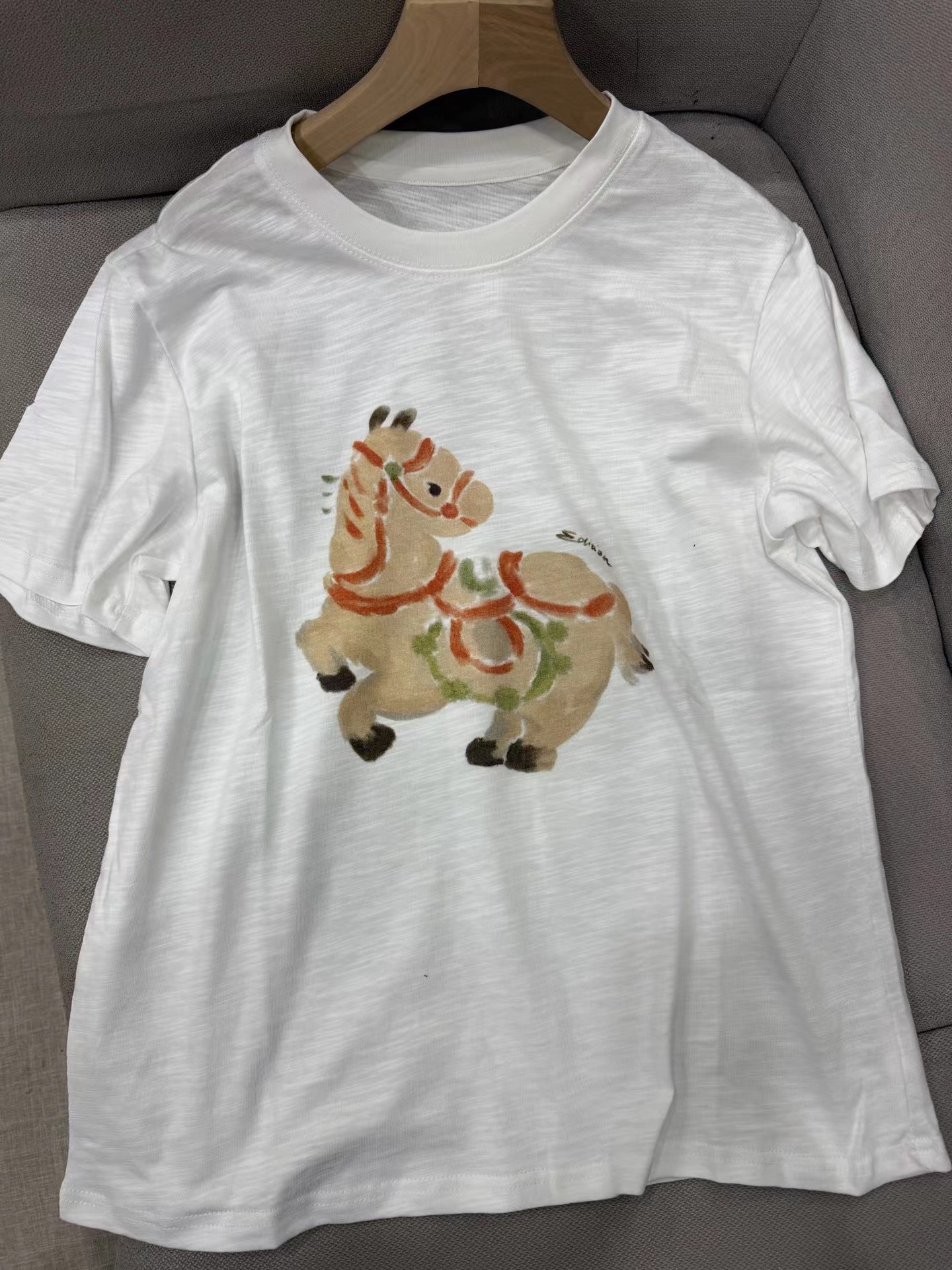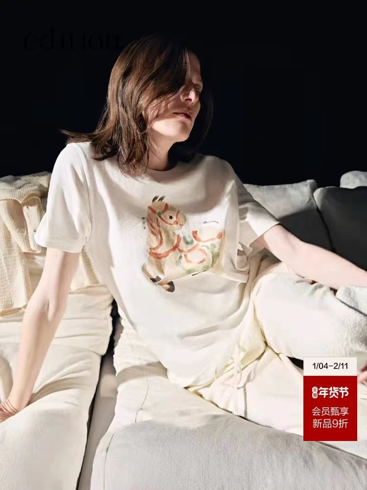 2026春季新款马年限定五花马图腾印花T恤 一个色白色T