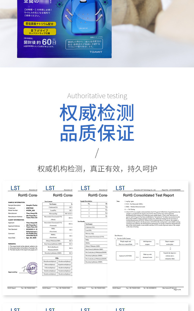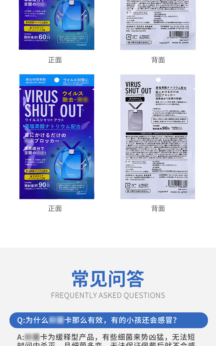 【母婴用品】空气消毒卡Toamit空气净化防护卡