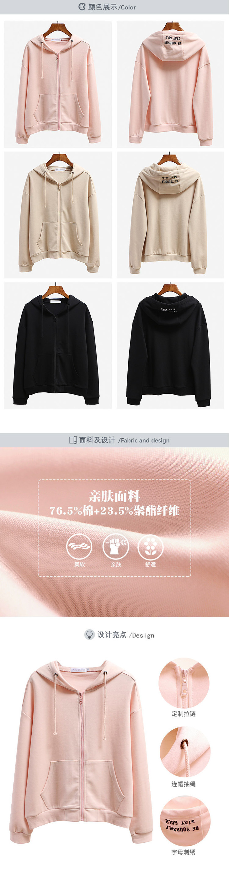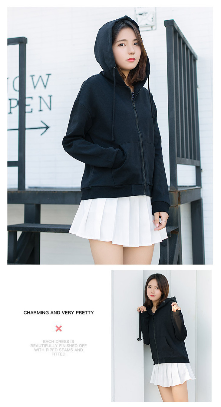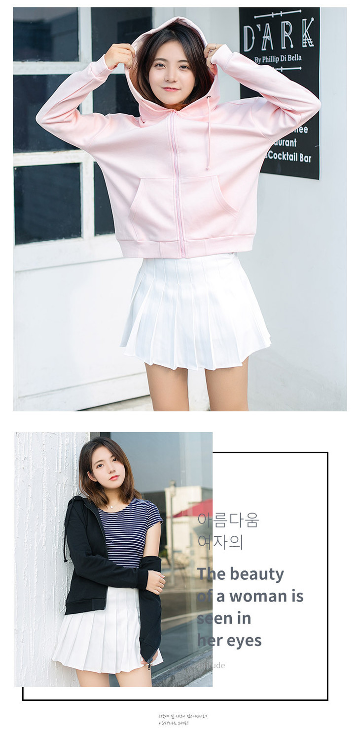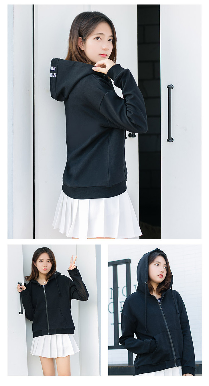 【女装】春秋季连帽开衫女卫衣韩版宽松刺绣口袋短款女拉链