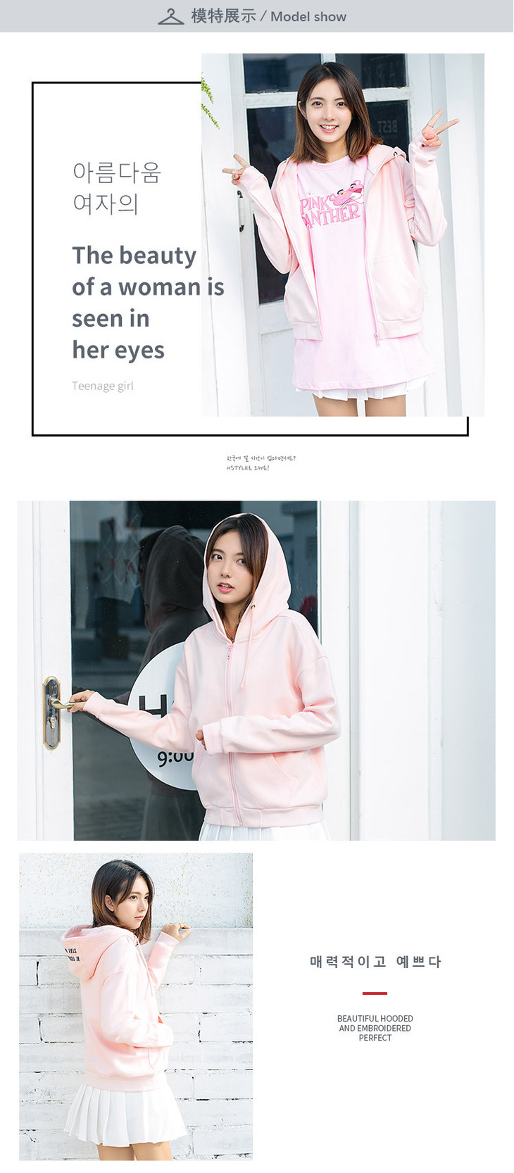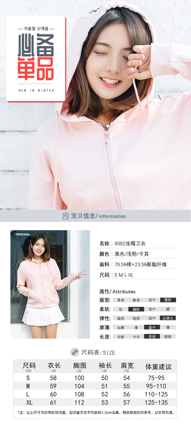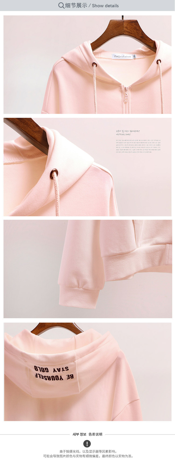 【女装】春秋季连帽开衫女卫衣韩版宽松刺绣口袋短款女拉链