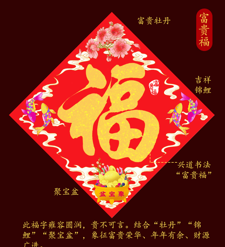 兴道原创五福临门小福字贴