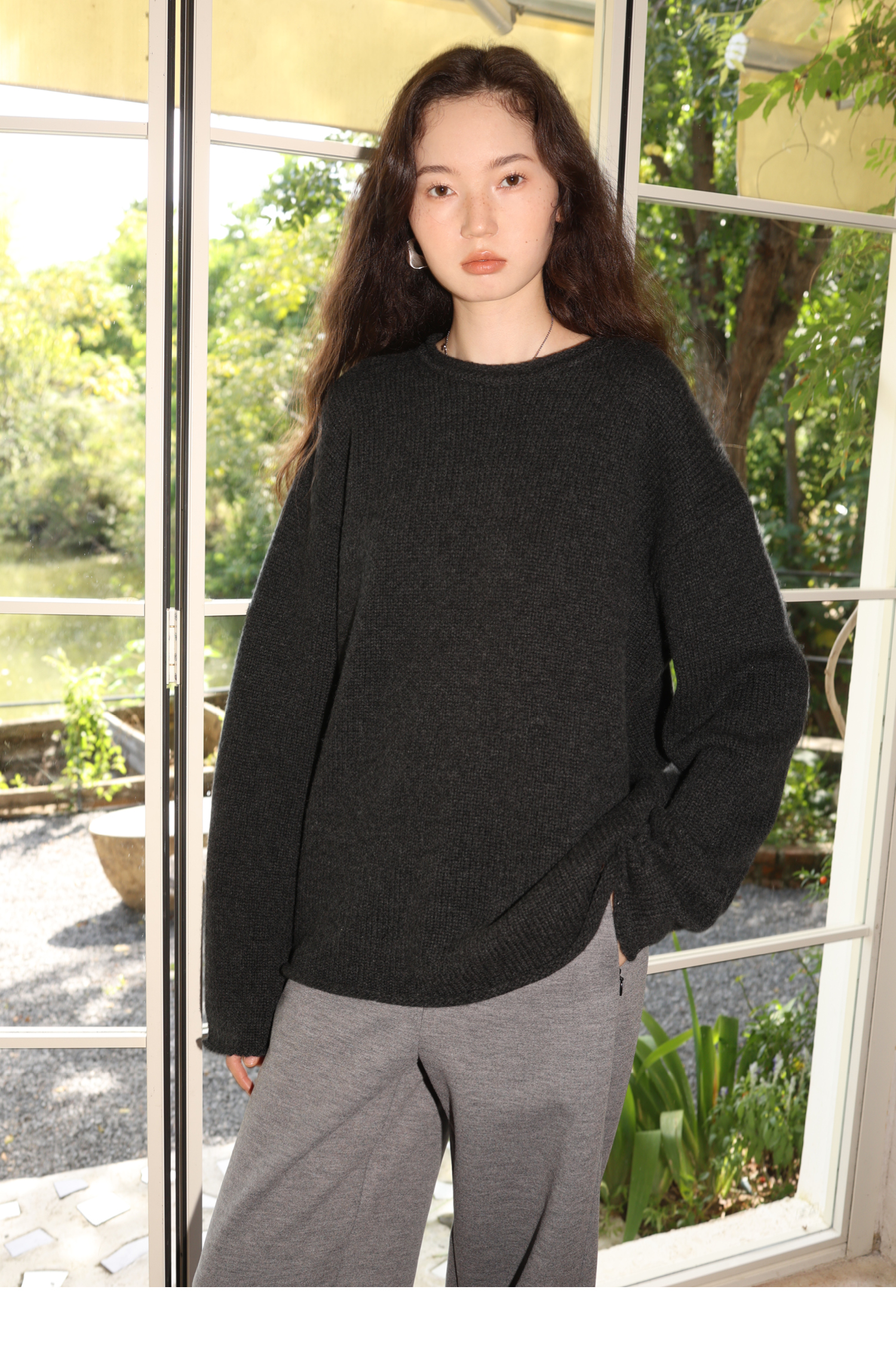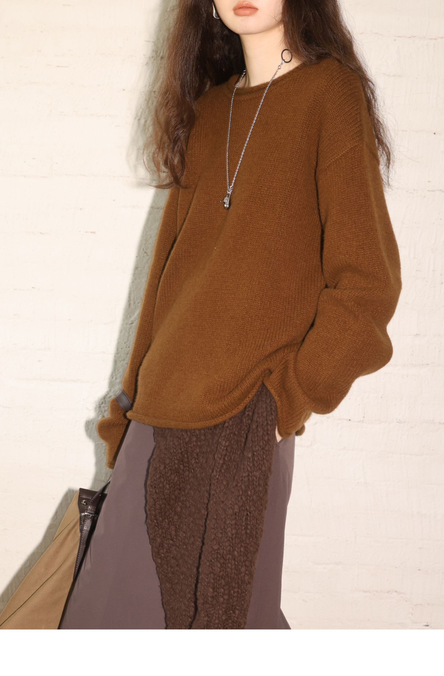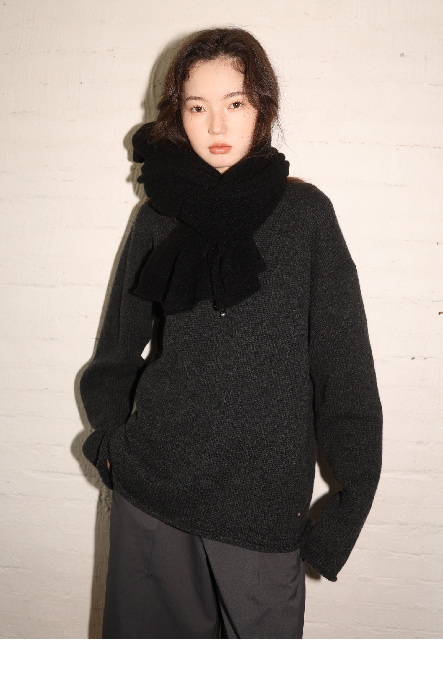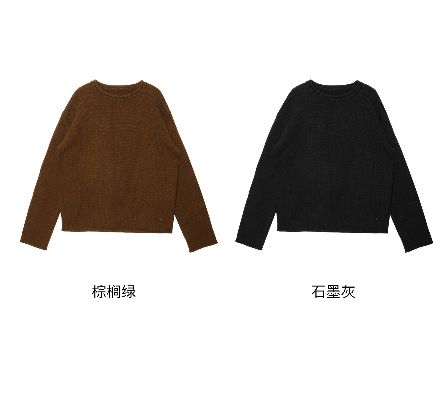 素舶 超厚美丽奴羊毛粗针编织感卷边圆领针织套衫毛衣
