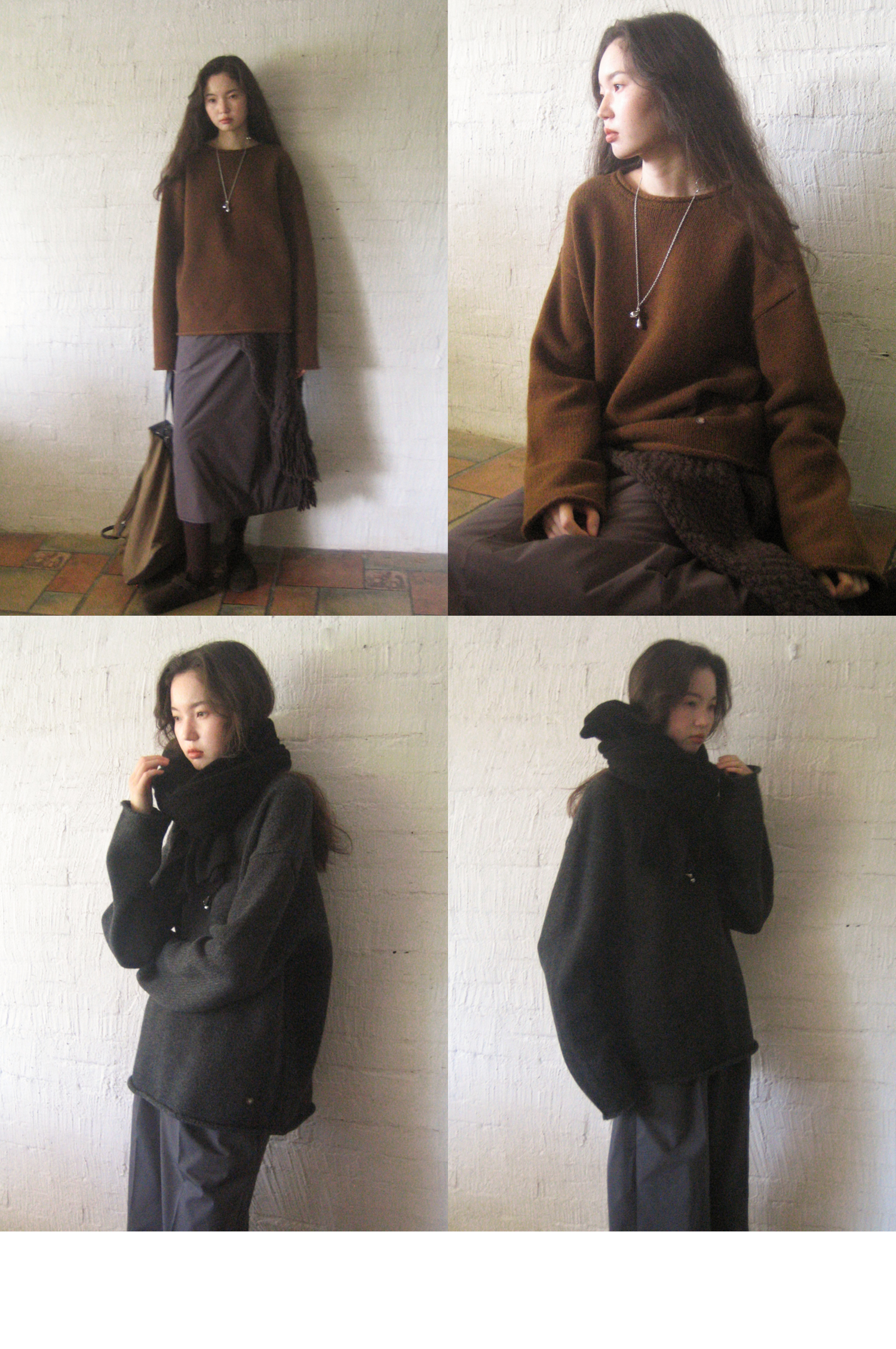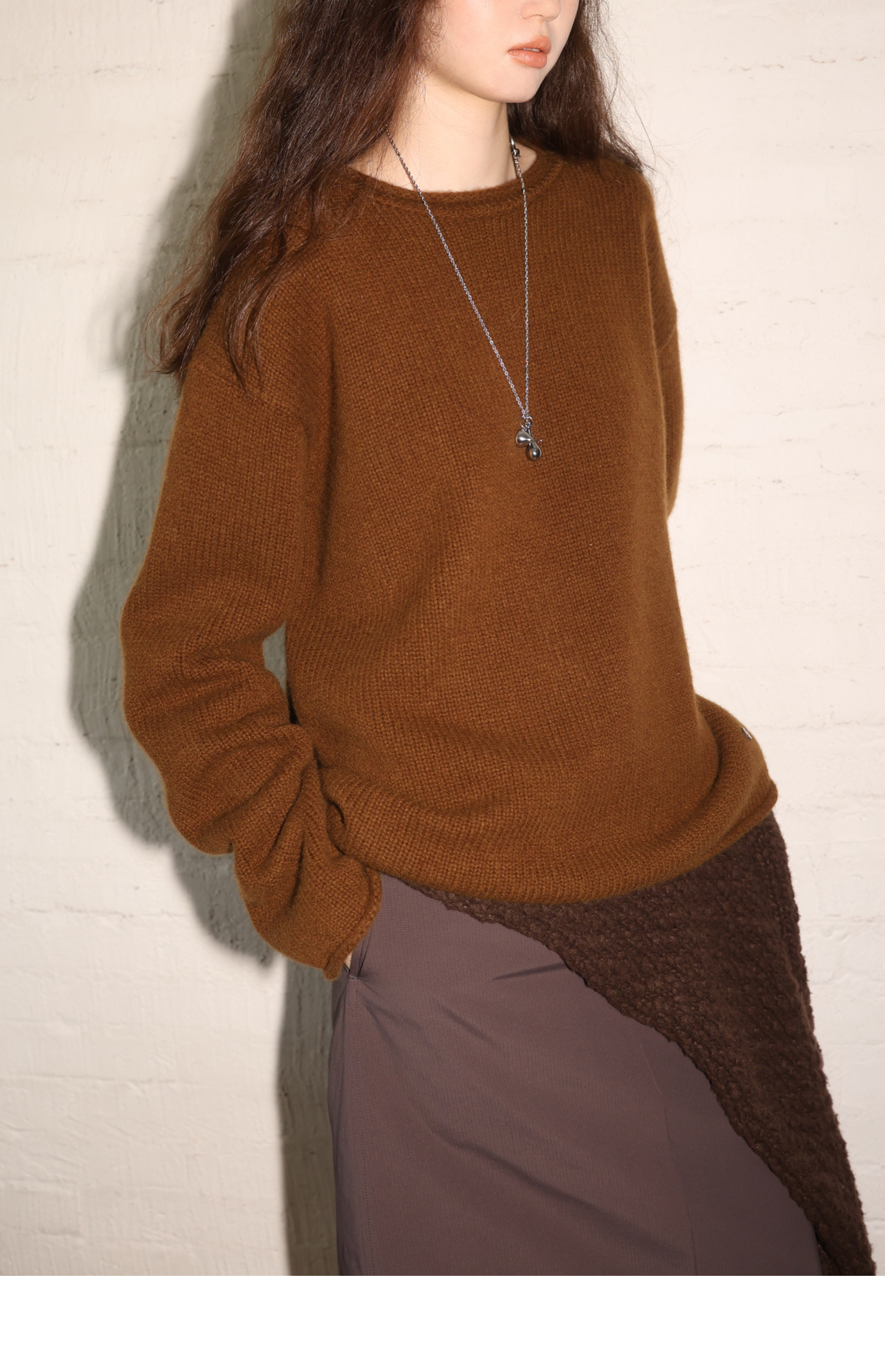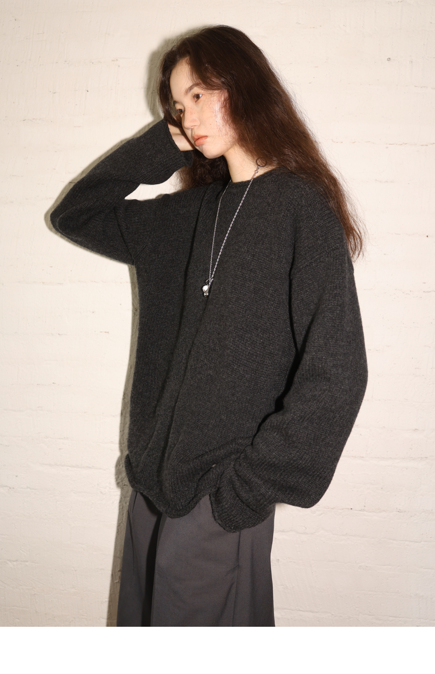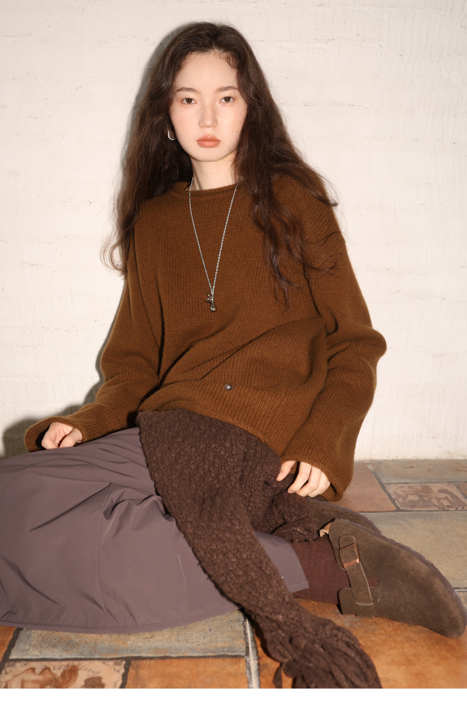 素舶 超厚美丽奴羊毛粗针编织感卷边圆领针织套衫毛衣