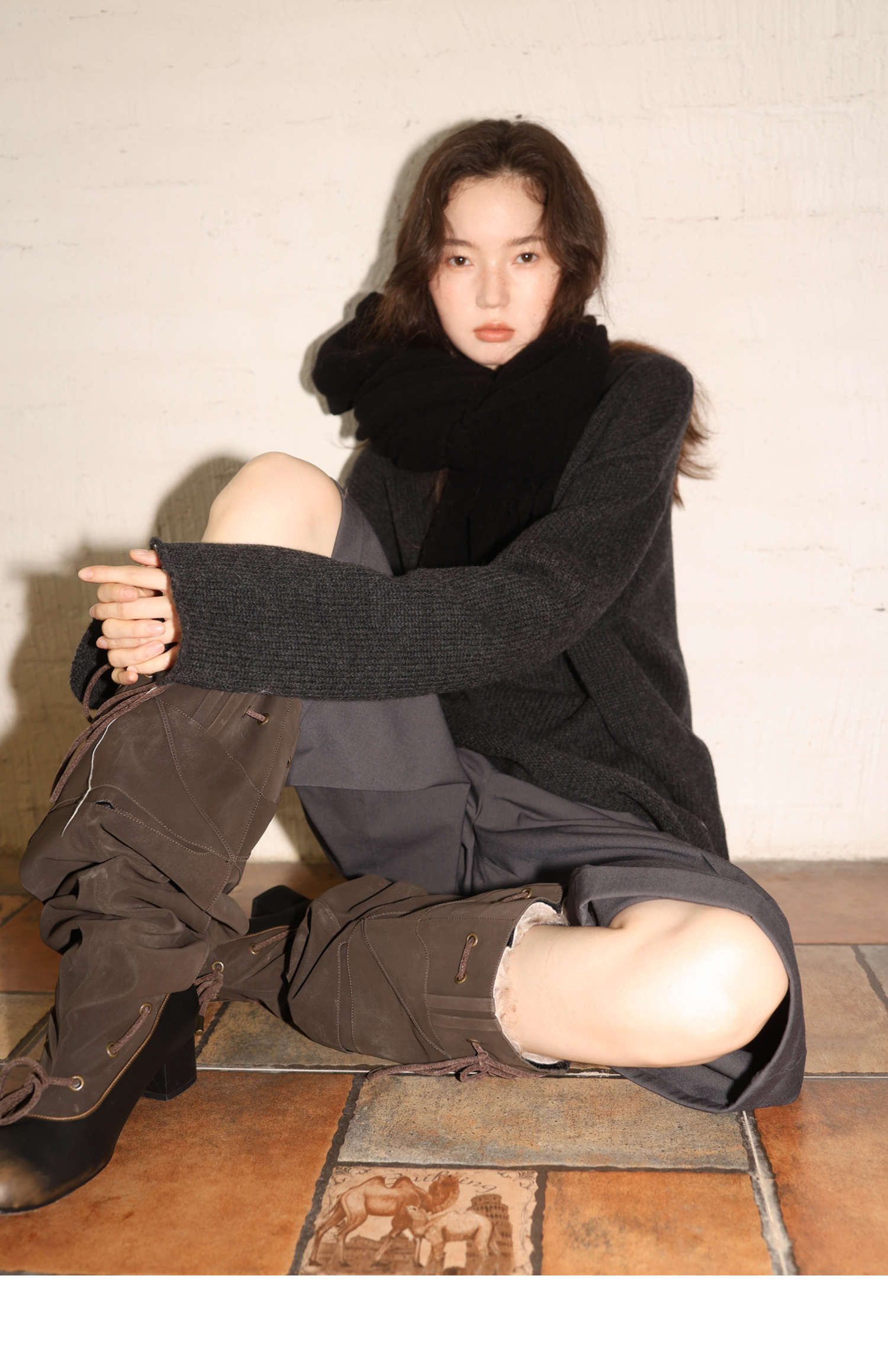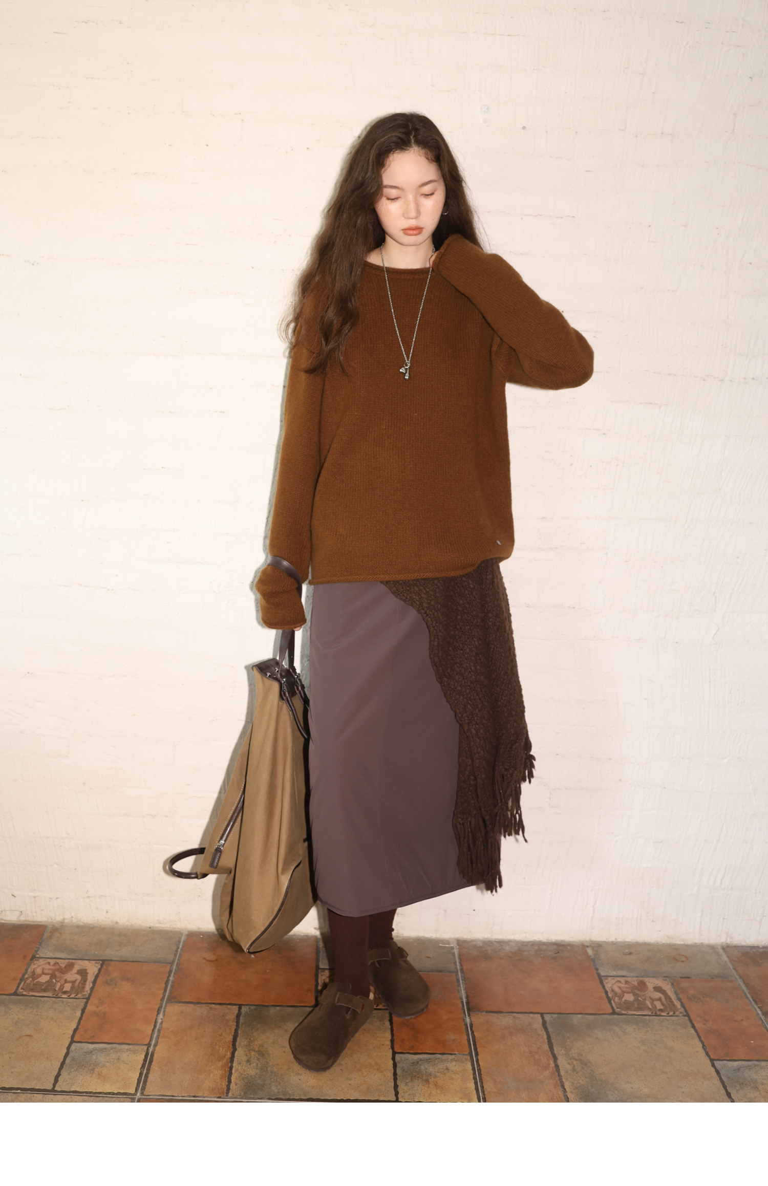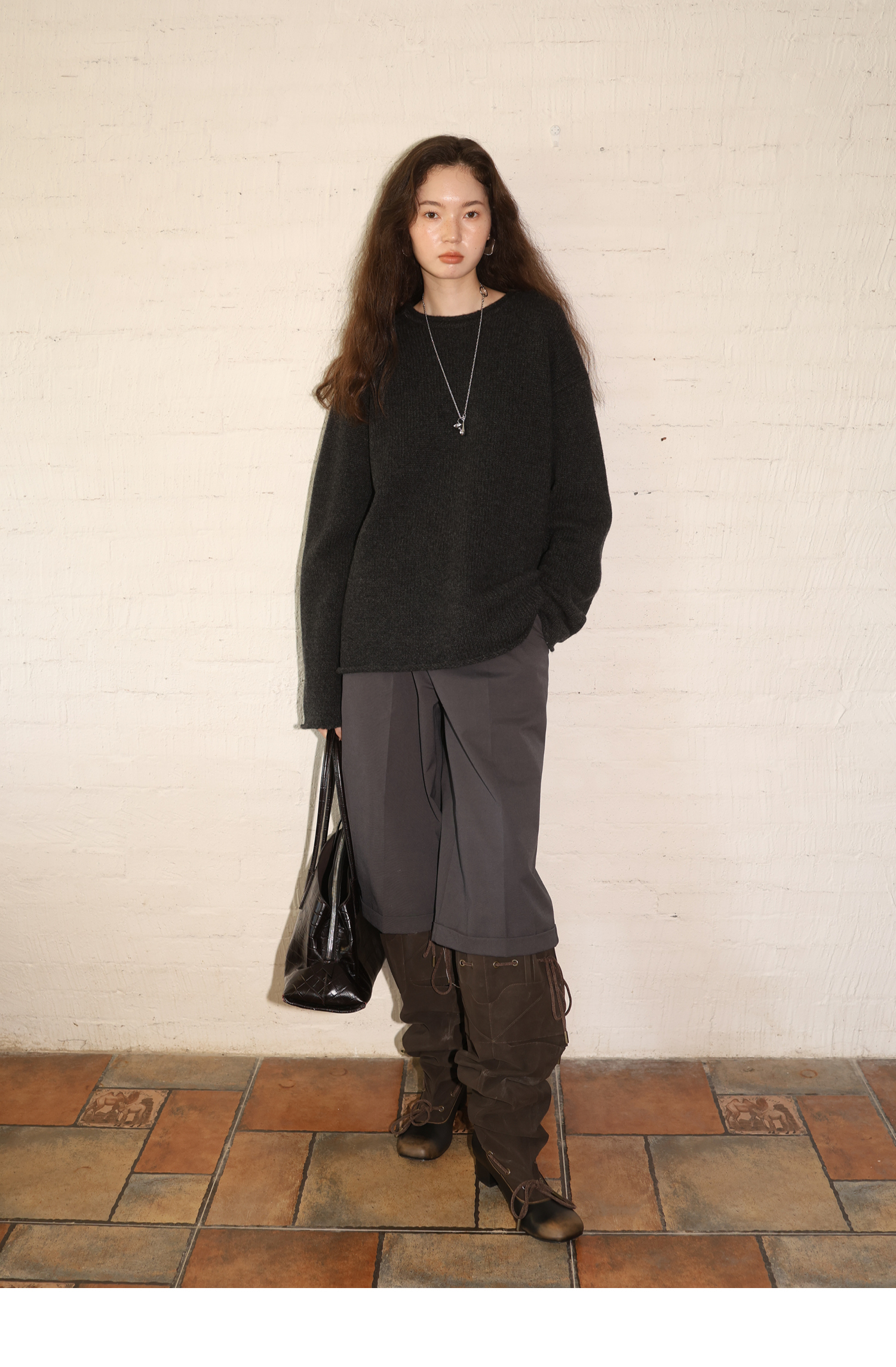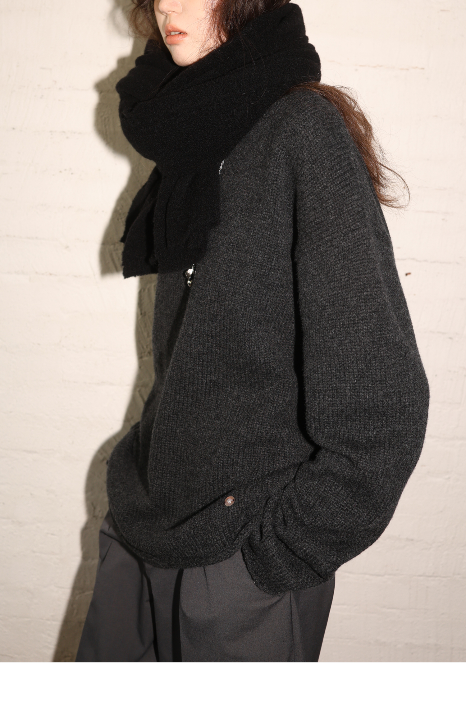 素舶 超厚美丽奴羊毛粗针编织感卷边圆领针织套衫毛衣