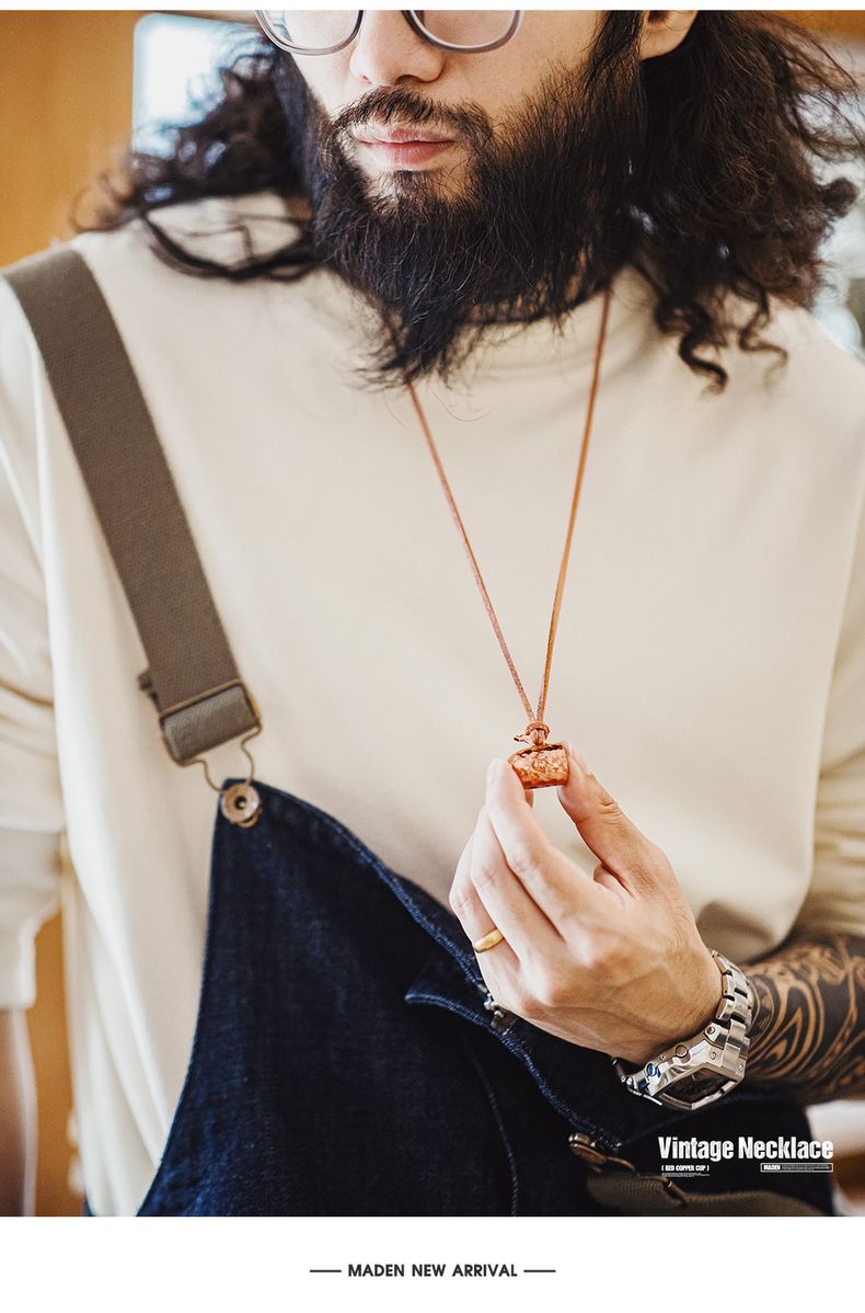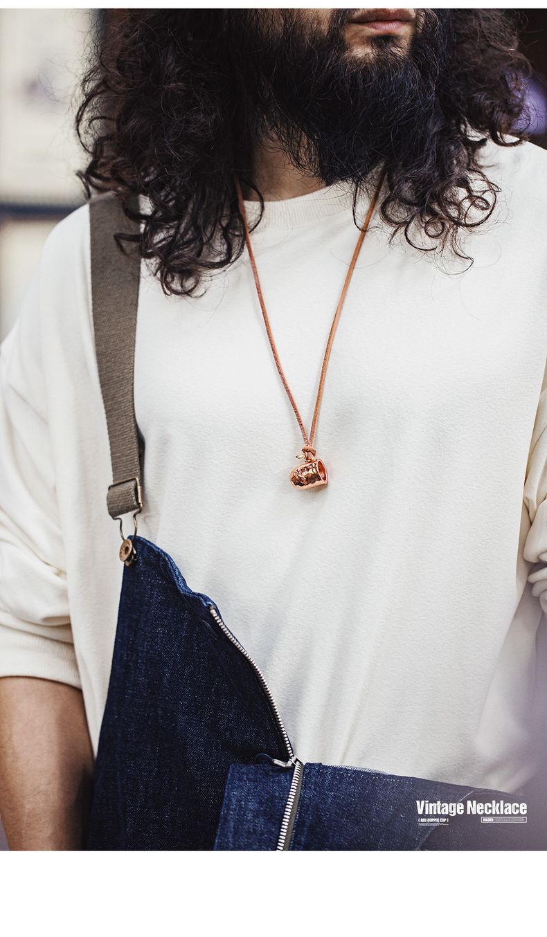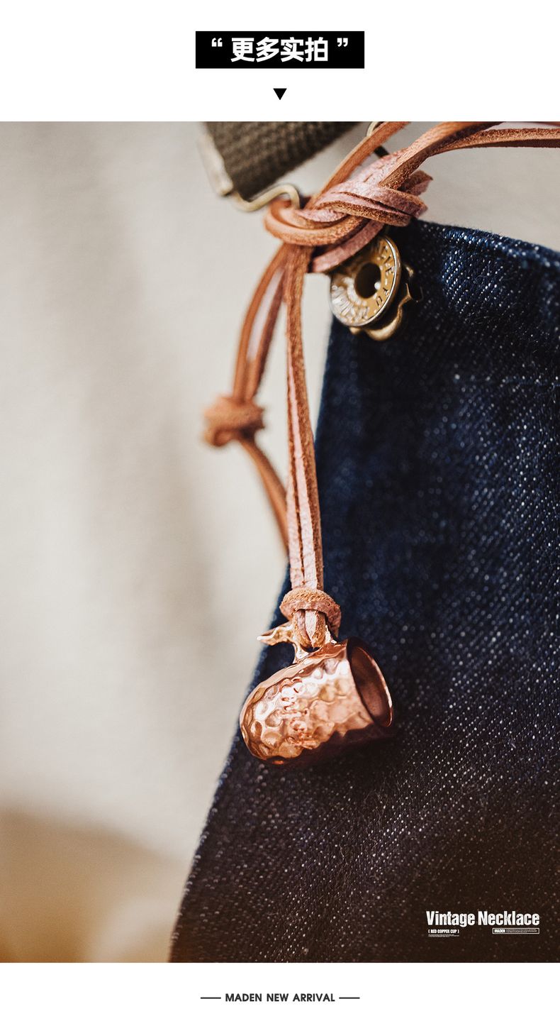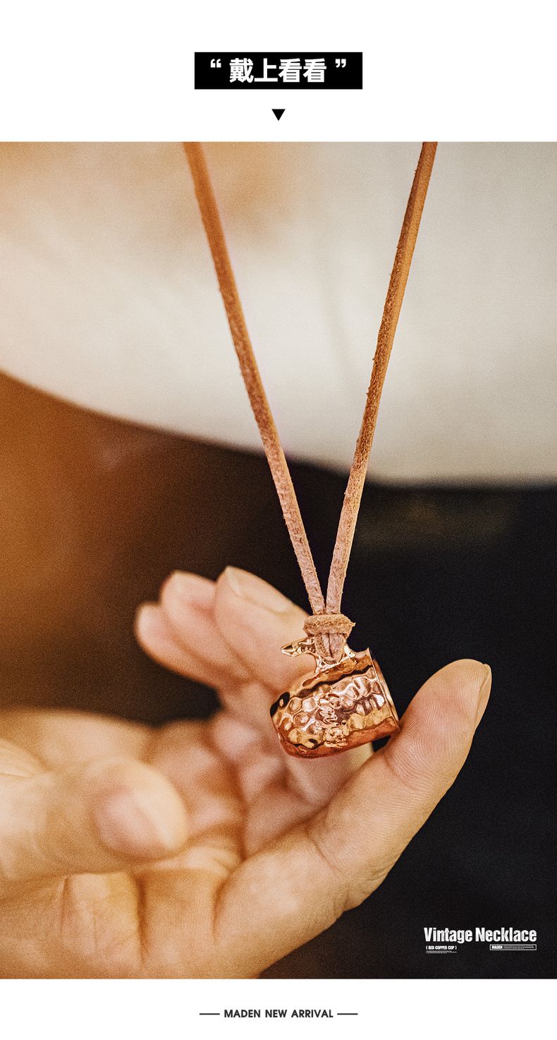 马登工装美式复古锤纹红铜刻印杯吊坠项链配饰小众装饰品挂件男女