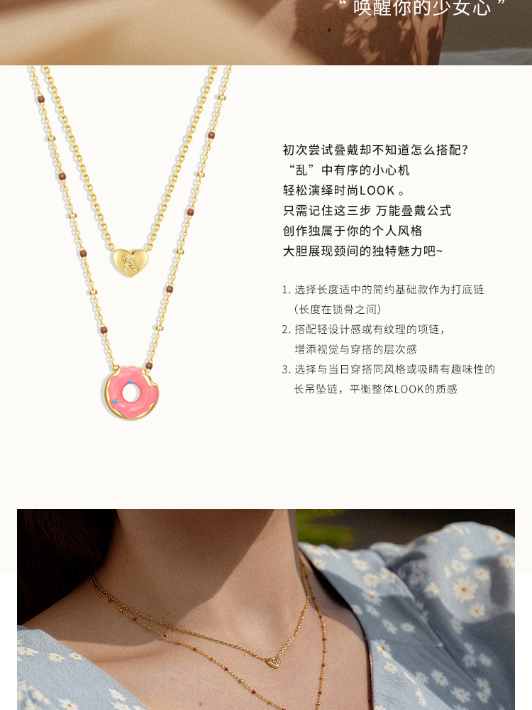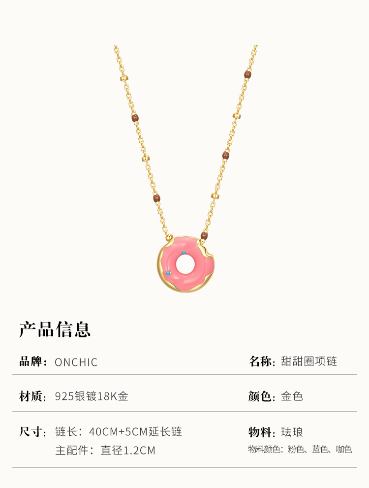 onchic谭松韵同款爱心甜甜圈项链甜美少女心设计锁骨链生日礼物