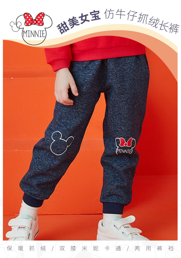 迪士尼童装 女童打底裤秋冬款外穿儿童裤子加绒加厚保暖女童裤子213K1176