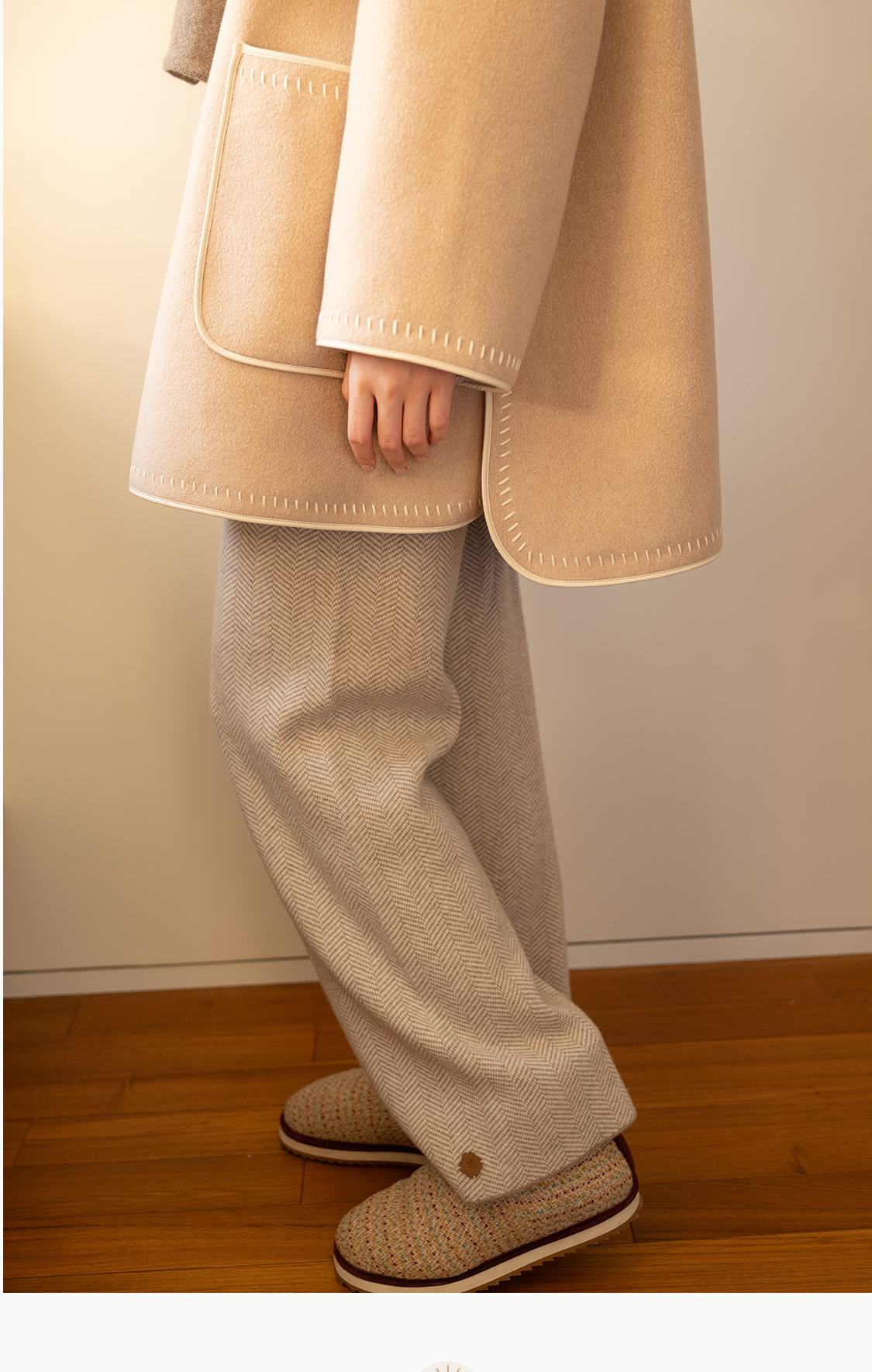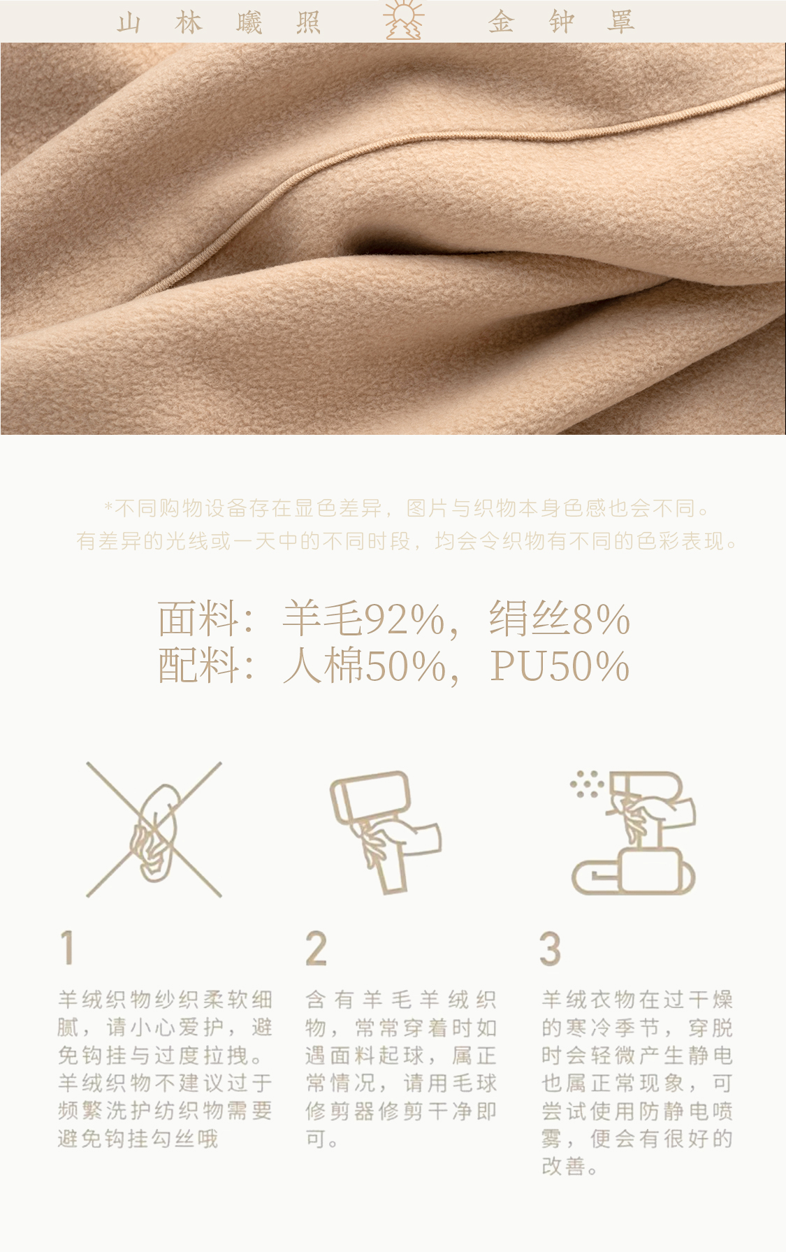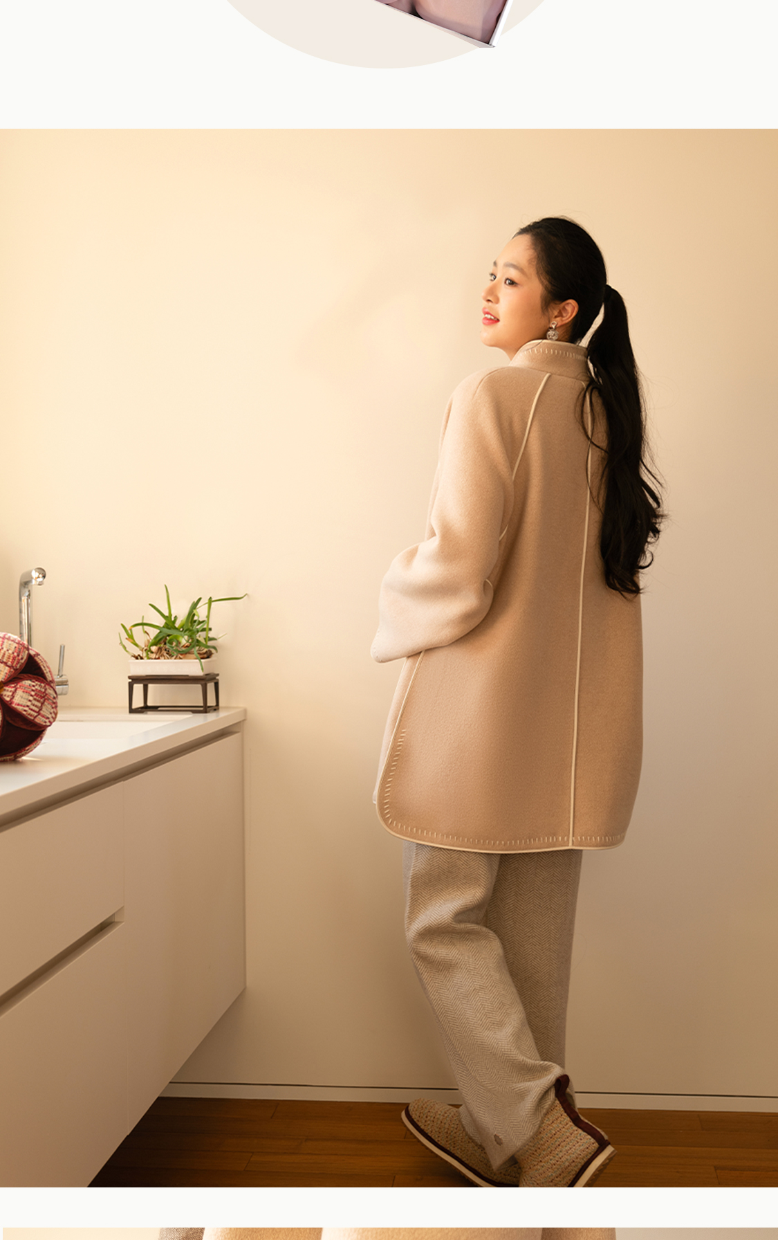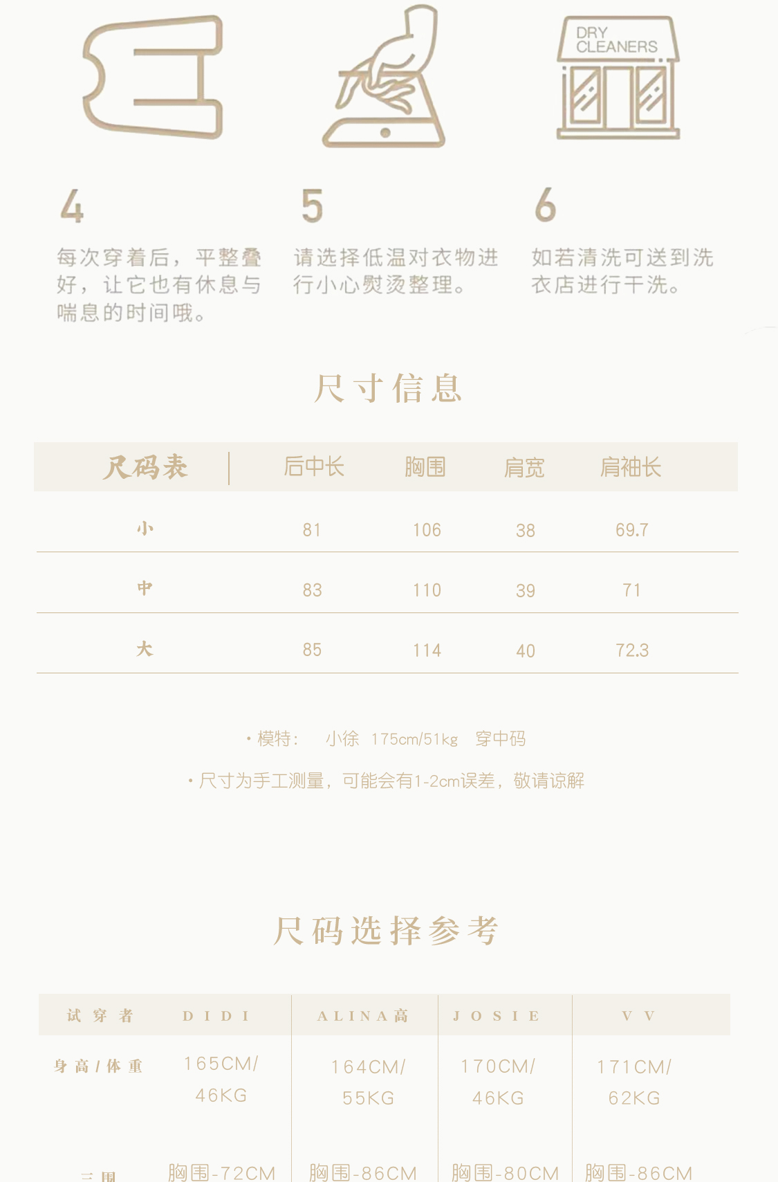 卧云 羊毛绢丝混纺 拱针饰线 镶皮边外套 山林曦照