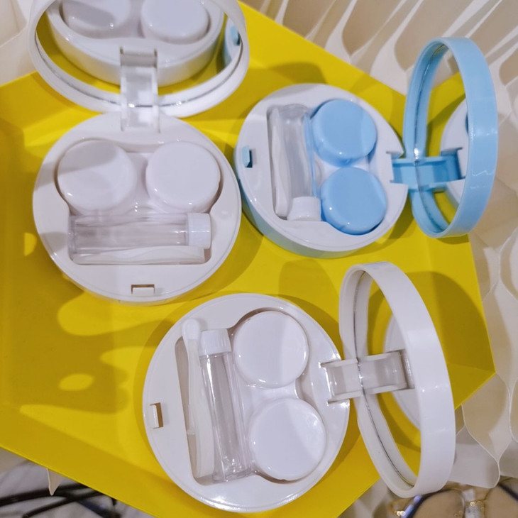 2、双联盒注入7成护理液后,装入镜片(注意镜片放入联内,请勿放在双联盒边缘)拧紧联盖。