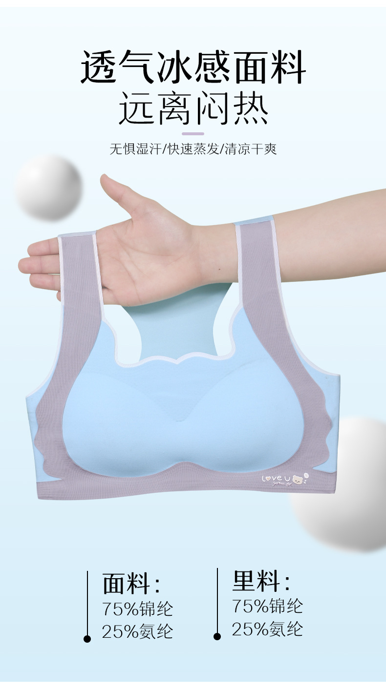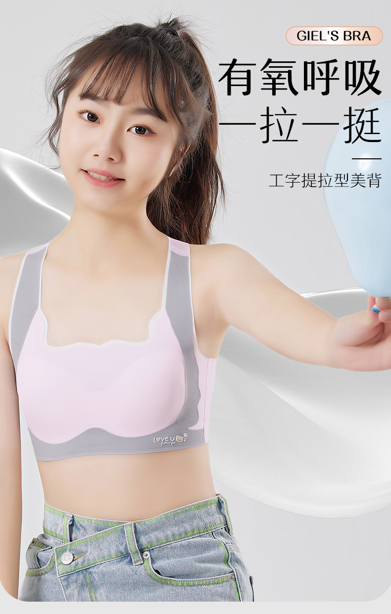 【有氧身呼吸!无钢圈柔软发育内衣】初中高中少女文胸发育期学生运动防震背心女生工字型美背矫正内衣