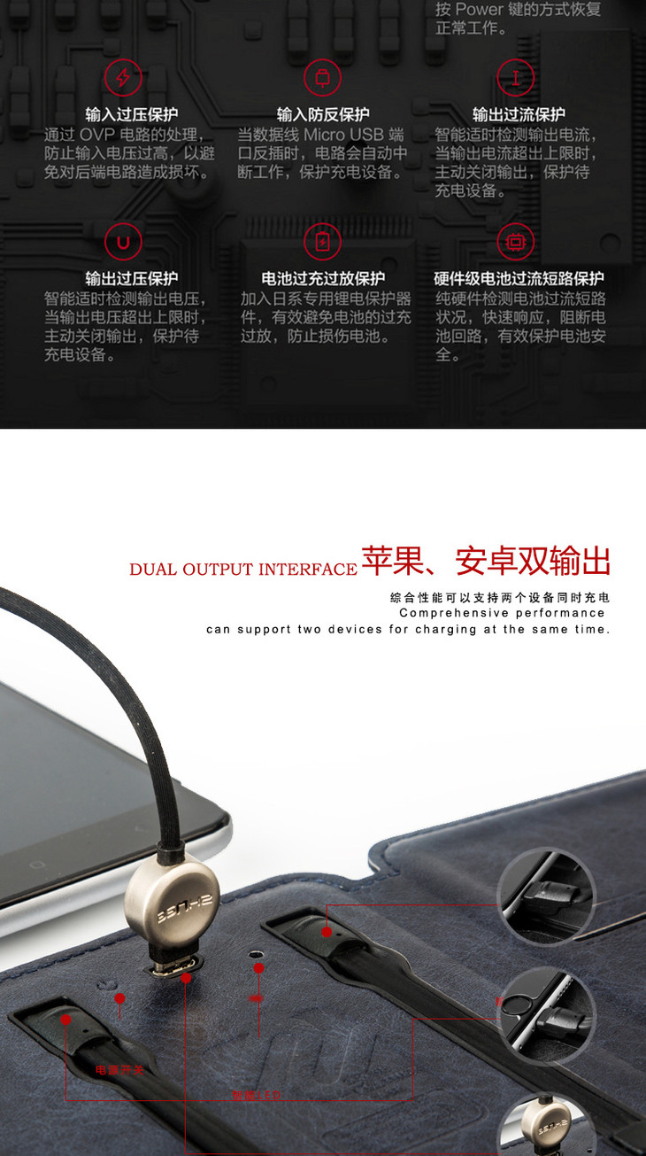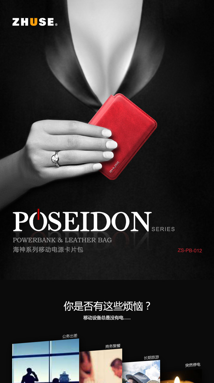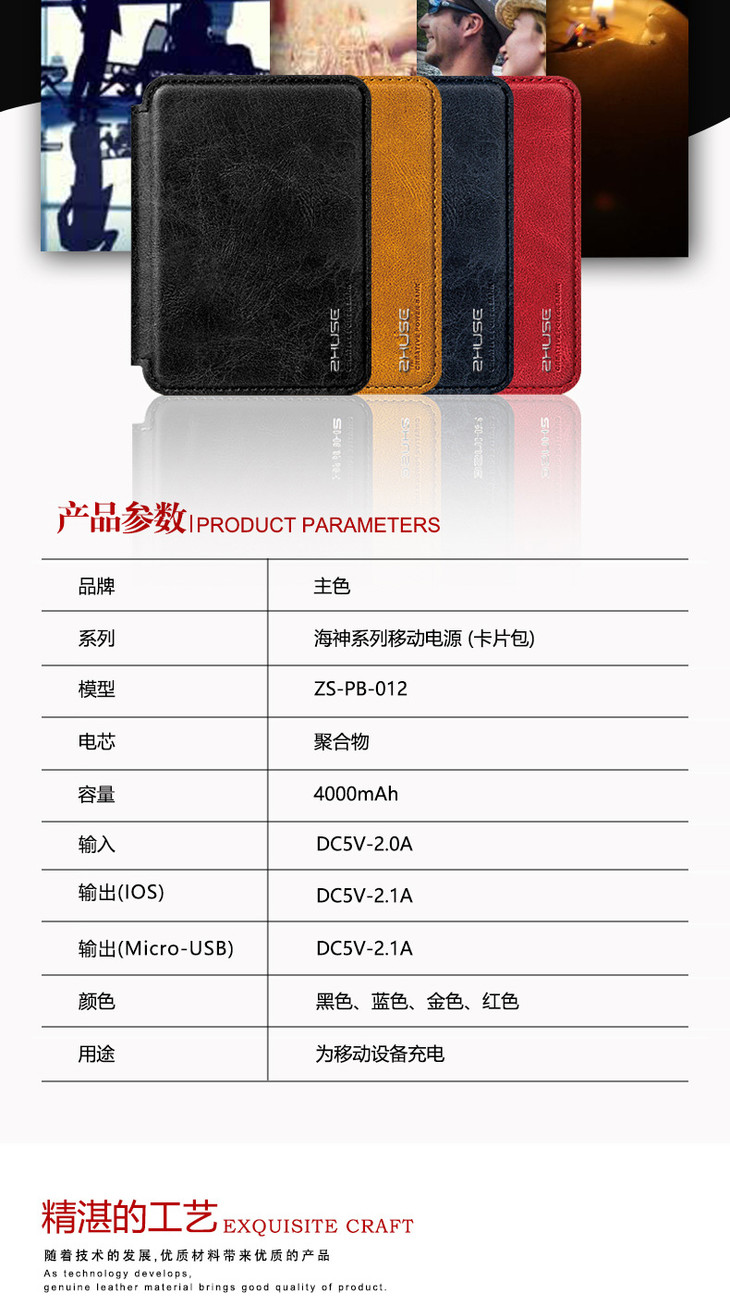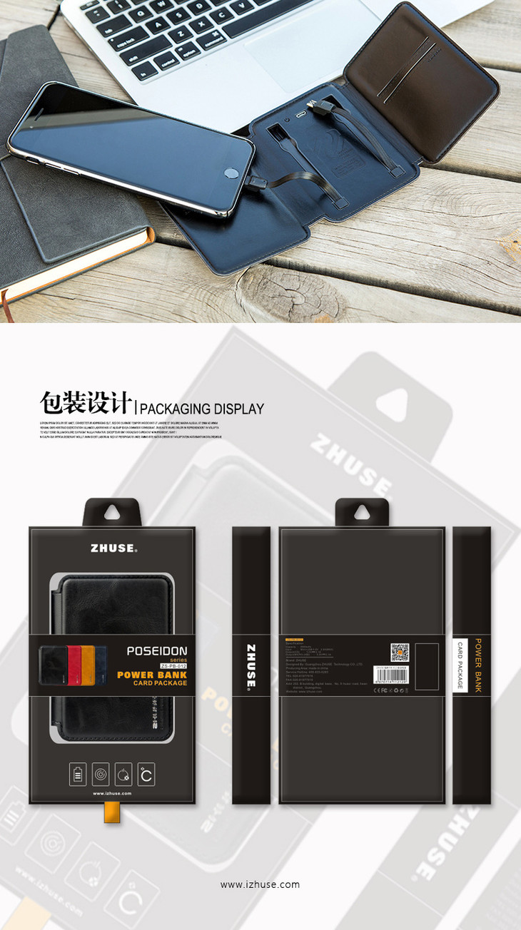 【充电宝】ZHUSE礼品移动电源便携卡片包4000M自带线新款充电宝定制LOGO