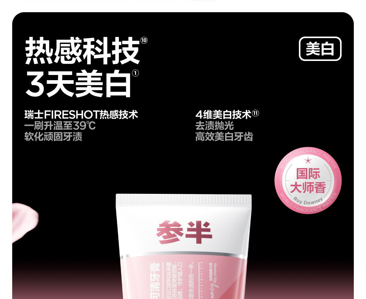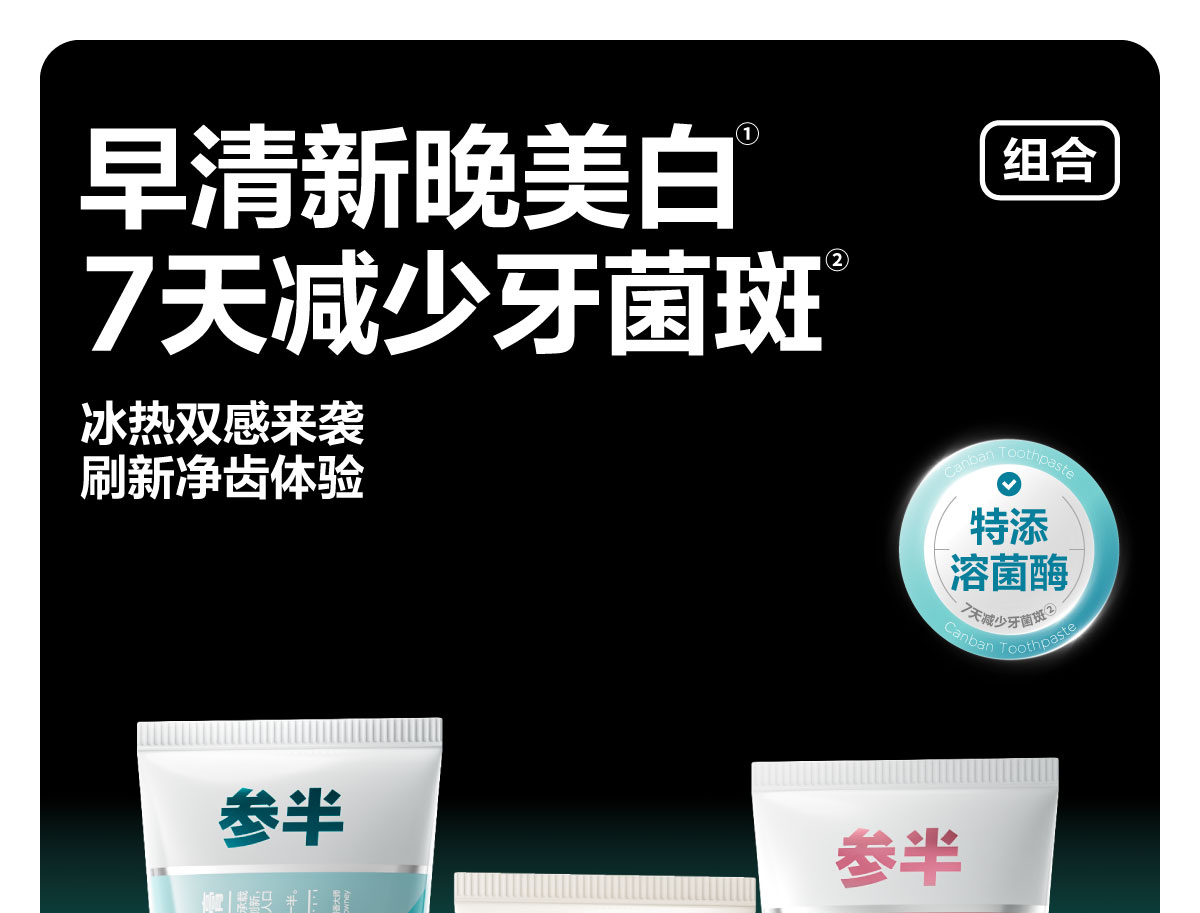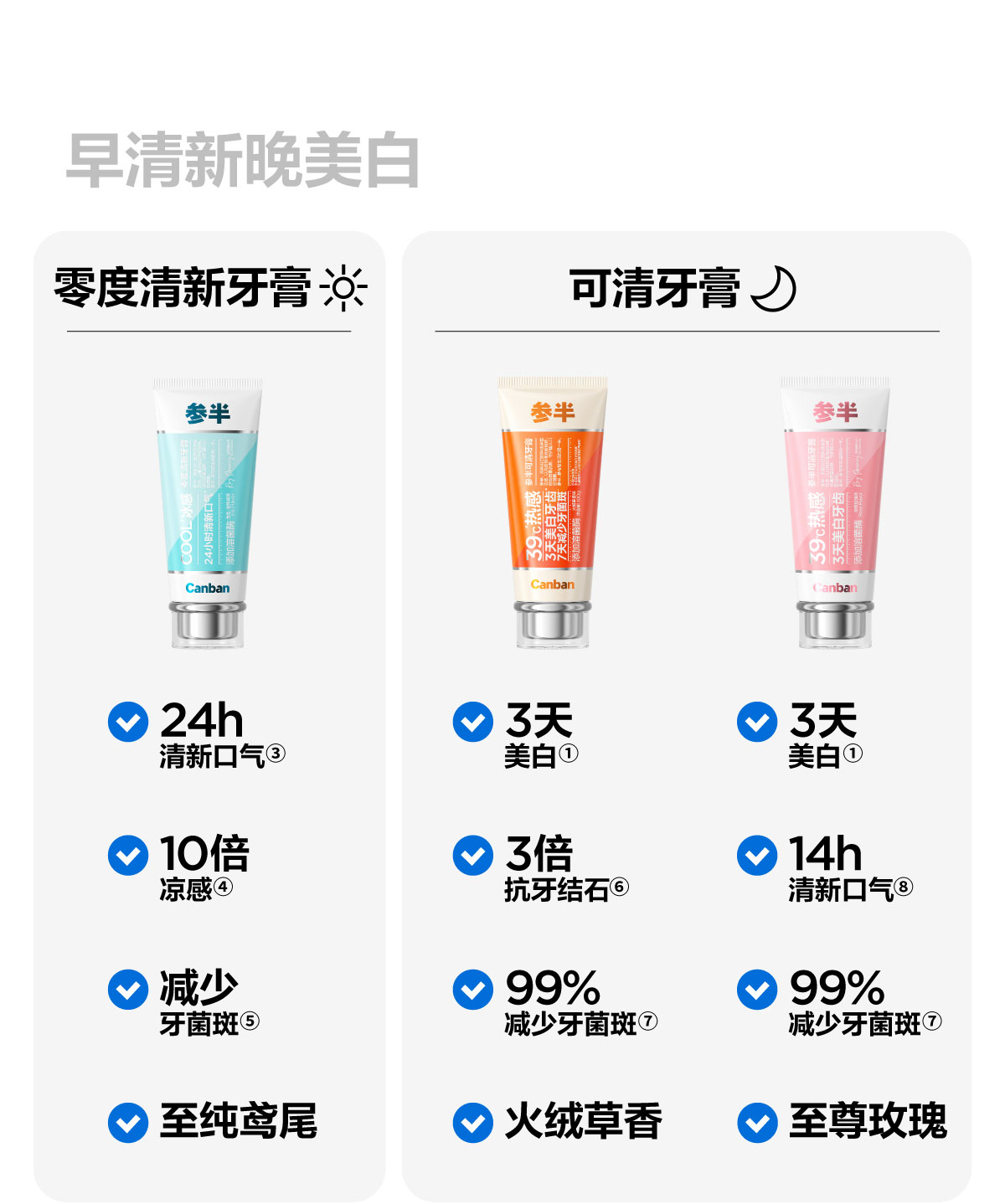 - 参半旗下产品已覆盖牙膏、漱口水、口腔爆珠、口腔喷雾等多个类目,为用户提供了精细化的口腔护理解决方案。