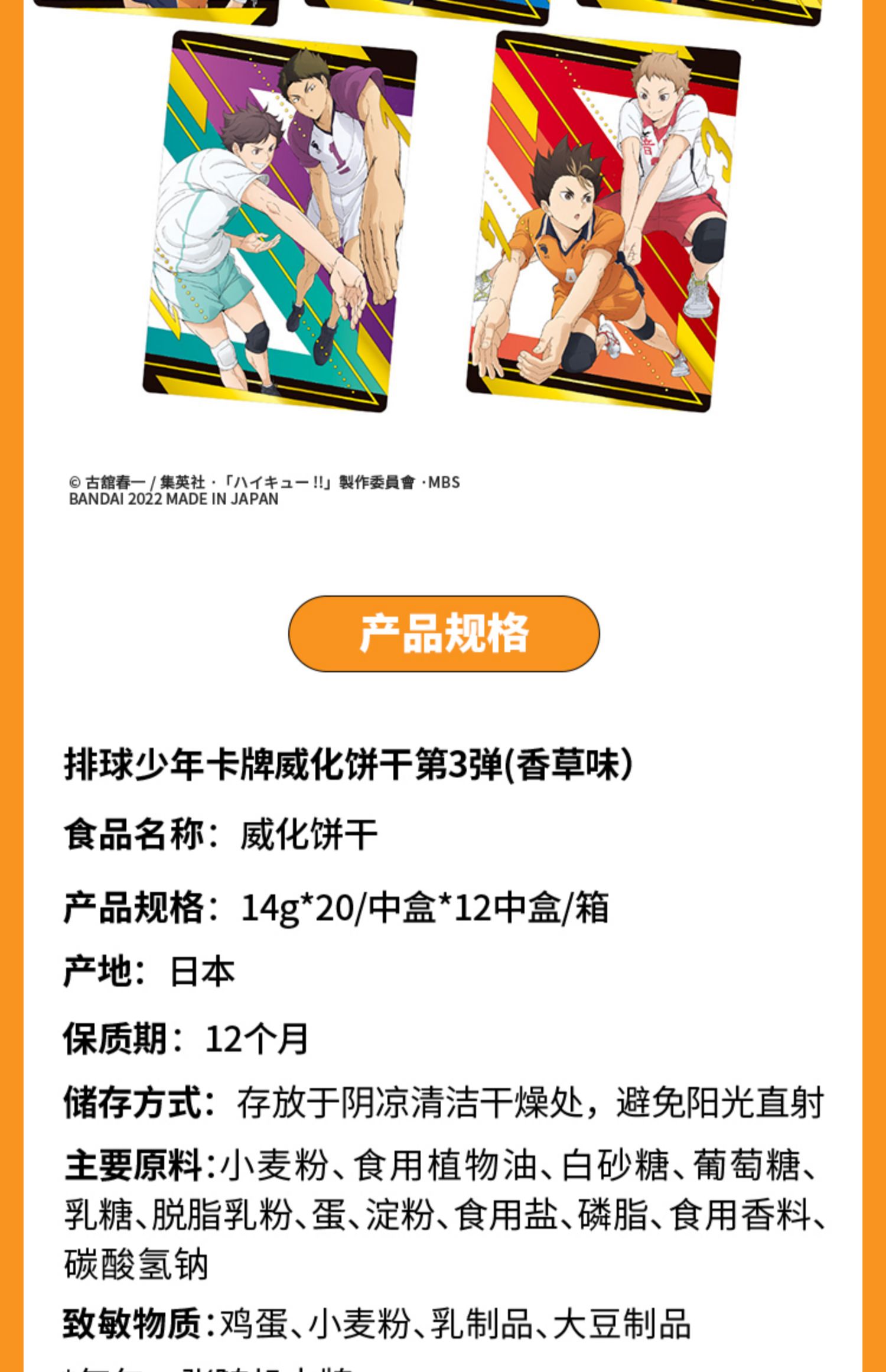 万代威卡脆 排球少年 第三弹 卡牌威化饼干 20包/盒 食玩卡