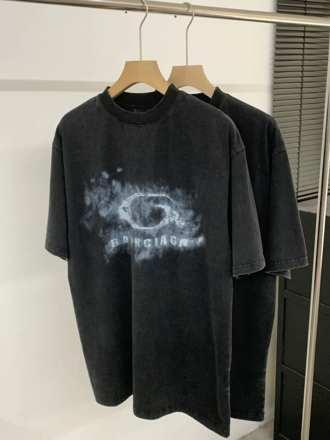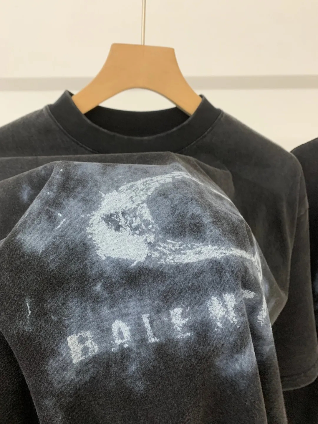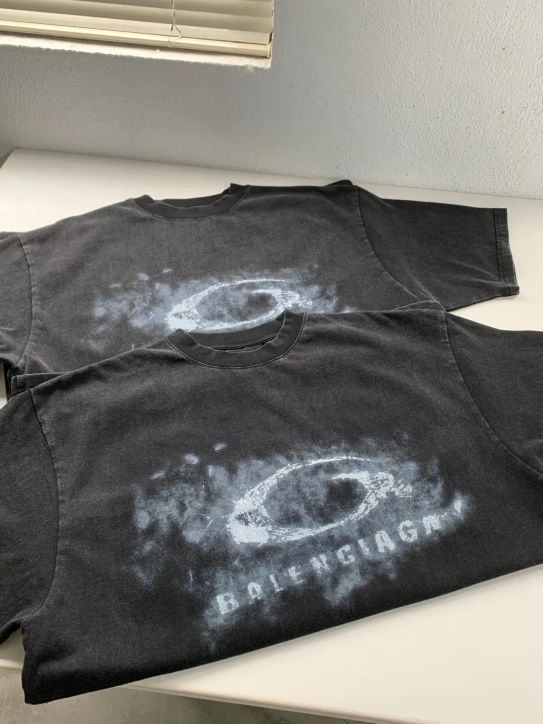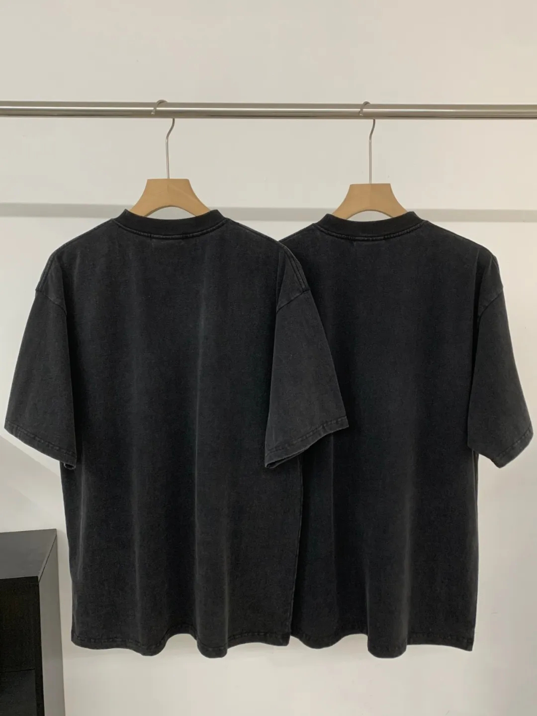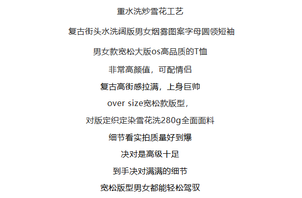 【xjwm1】春夏情侣重水洗炒雪花工艺复古圆领短袖T恤!!