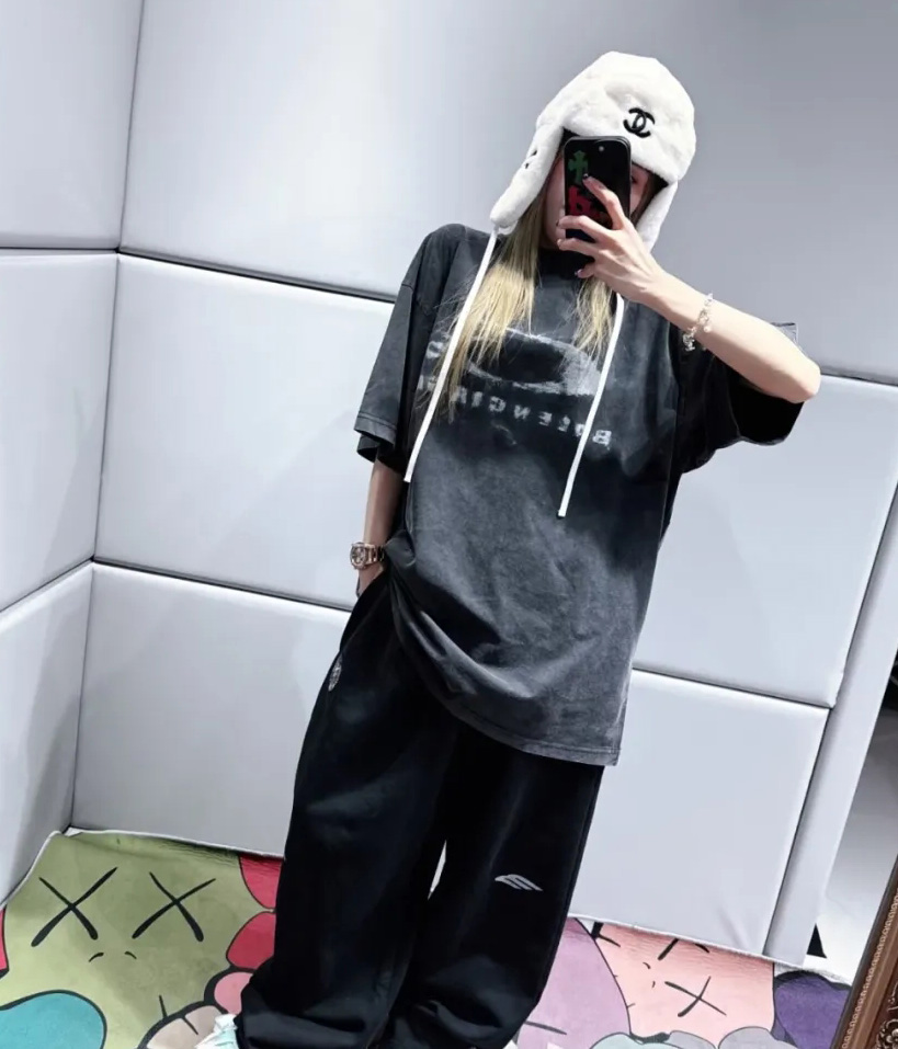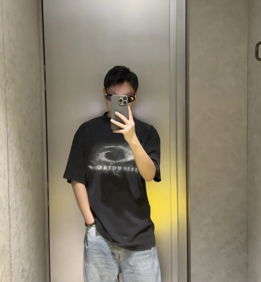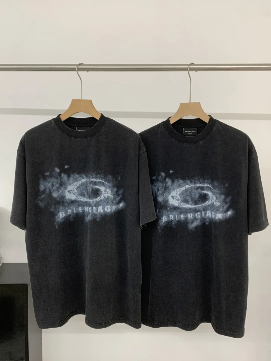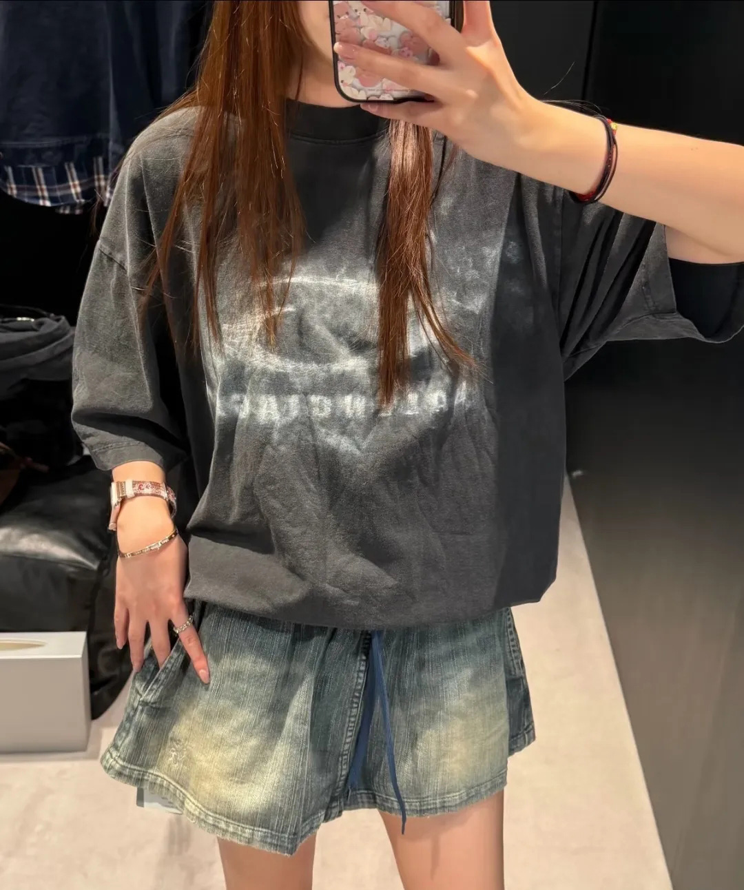 【xjwm1】春夏情侣重水洗炒雪花工艺复古圆领短袖T恤!!