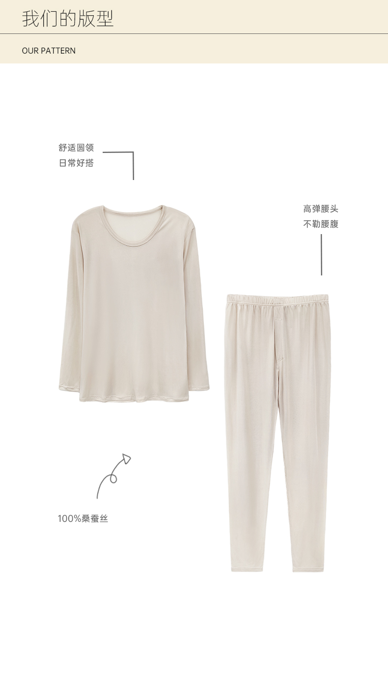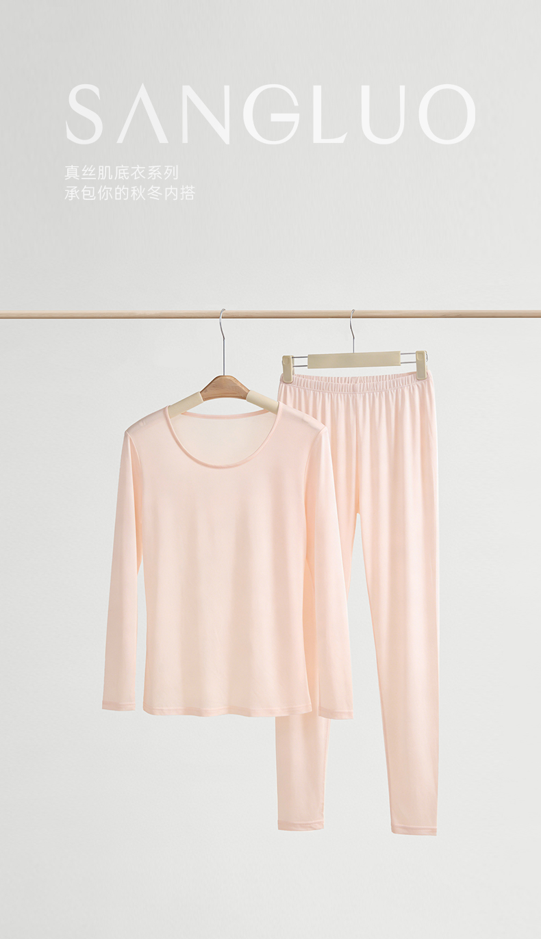 桑罗睡衣套装100%桑蚕丝打底保暖纯色简约女款秋衣秋裤