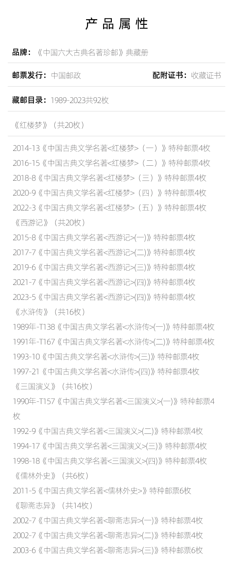 《中国六大古典名著珍邮》典藏册 | 藏界标杆!荟萃1989年至2023年中国六大名著珍贵邮票,书邮合一,一次收齐!