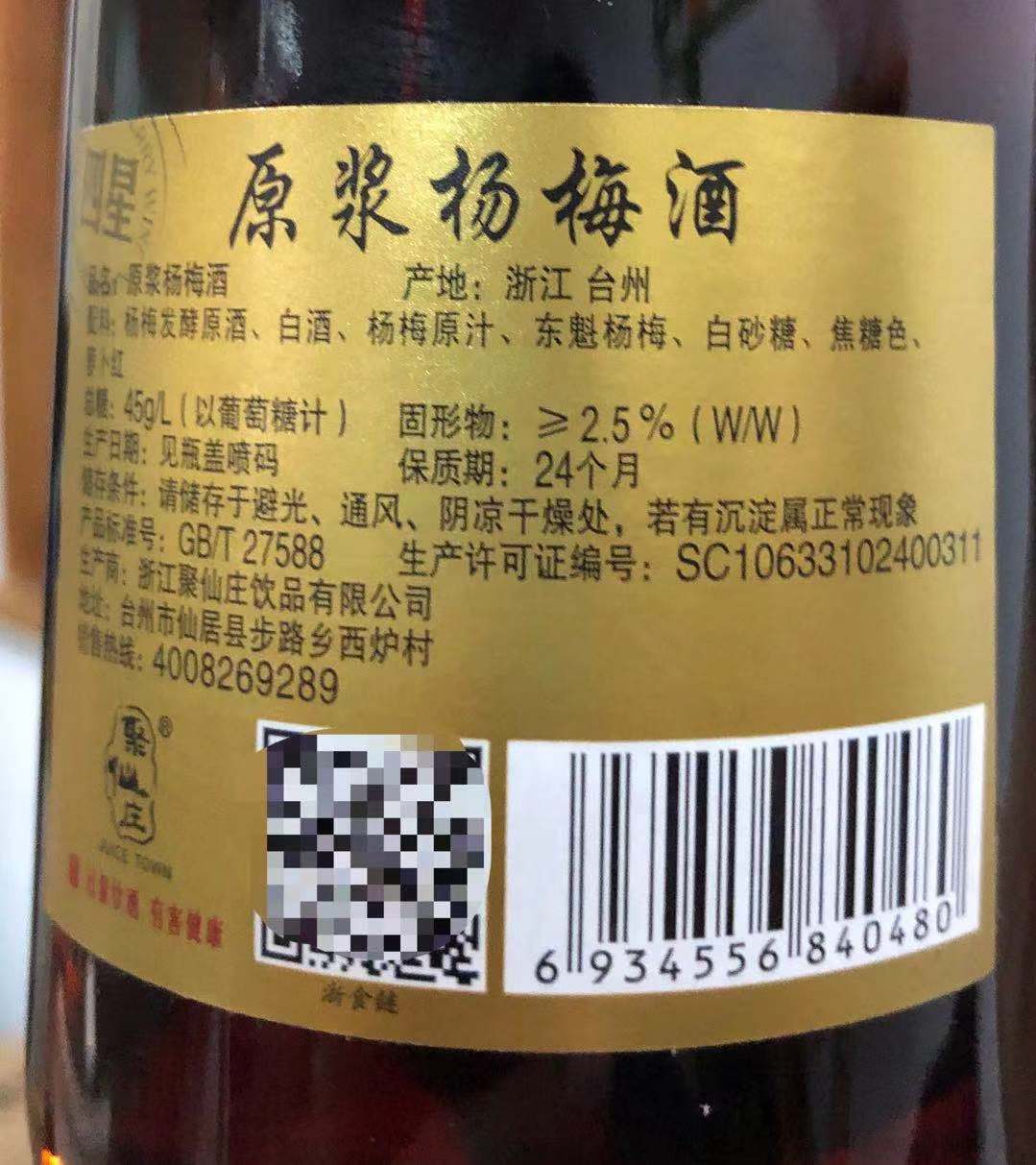 聚仙庄四星原浆杨浙江仙居杨梅酒