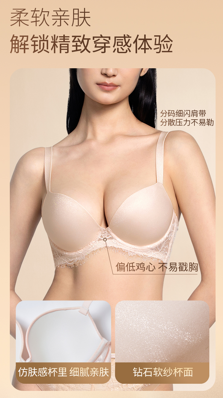 奶糖派高光杯内衣挺拔显大有型圆润聚拢透气不闷热蕾丝性感文胸女