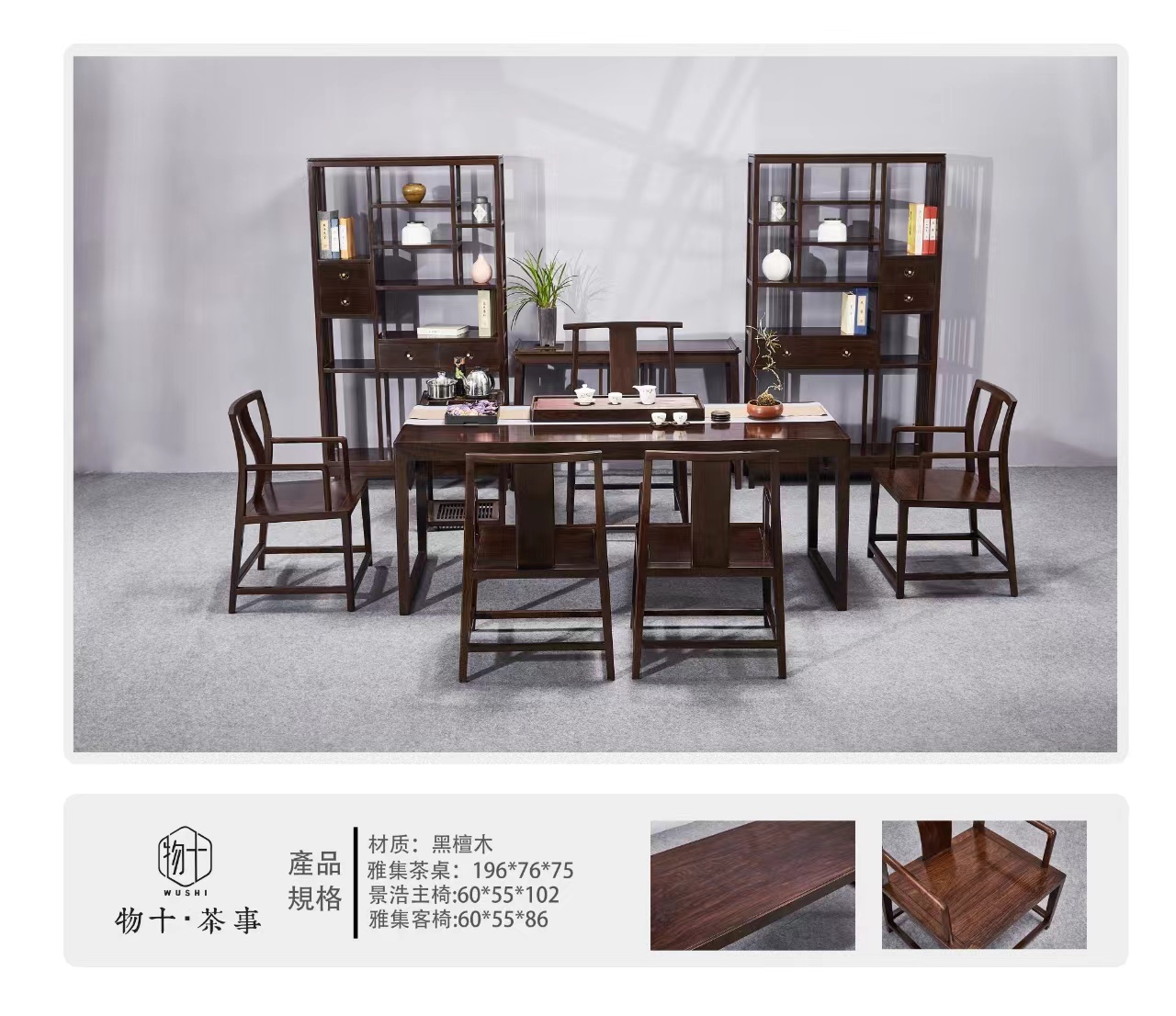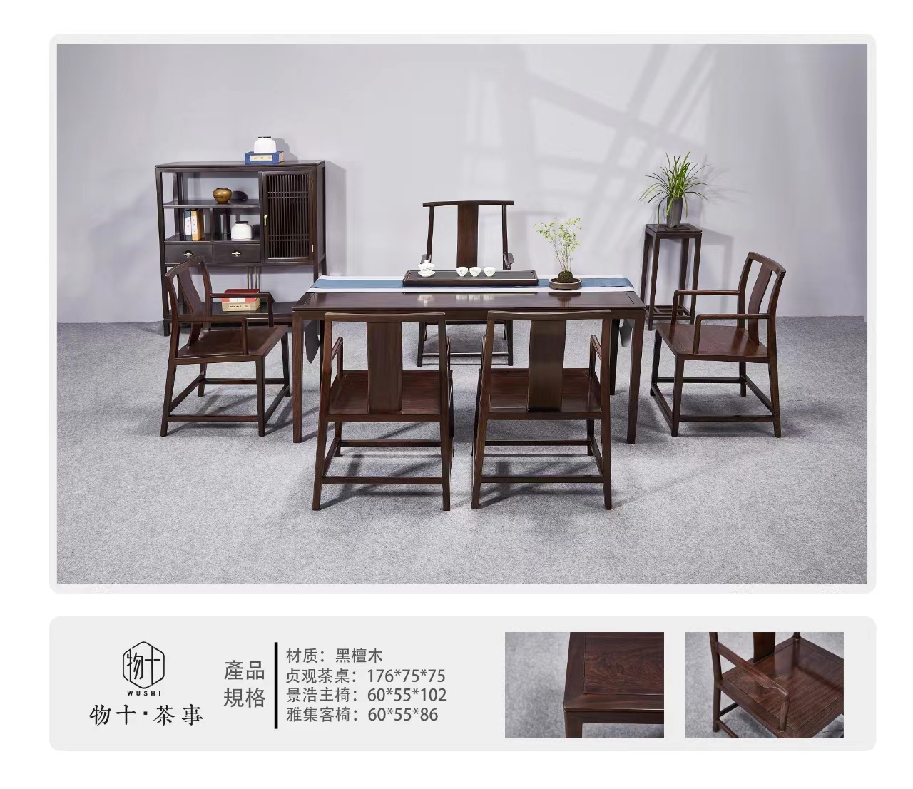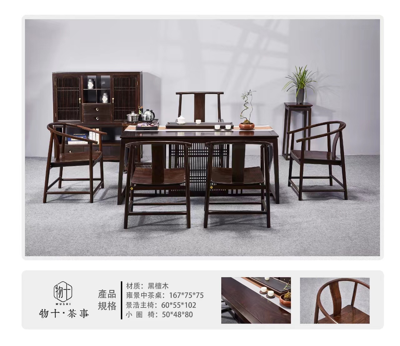 黑檀实木系列六件套茶桌(一桌一主人椅四副椅)