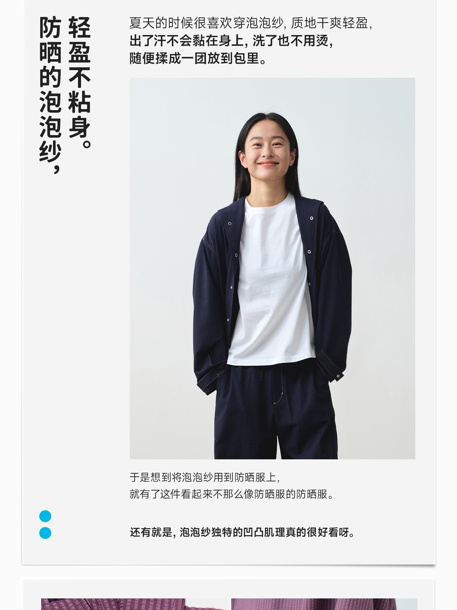 【春Vol.3】allblu"出汗不会黏身"25春夏【女士泡泡纱防晒服】|UPF50+抗皱外套ZY